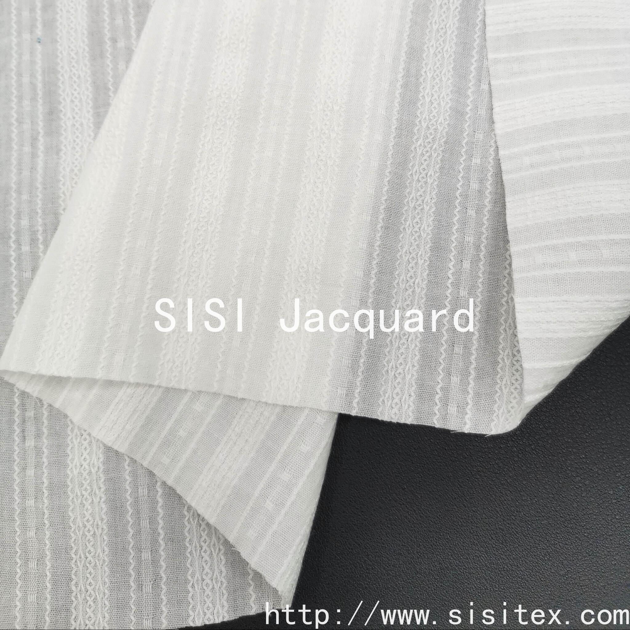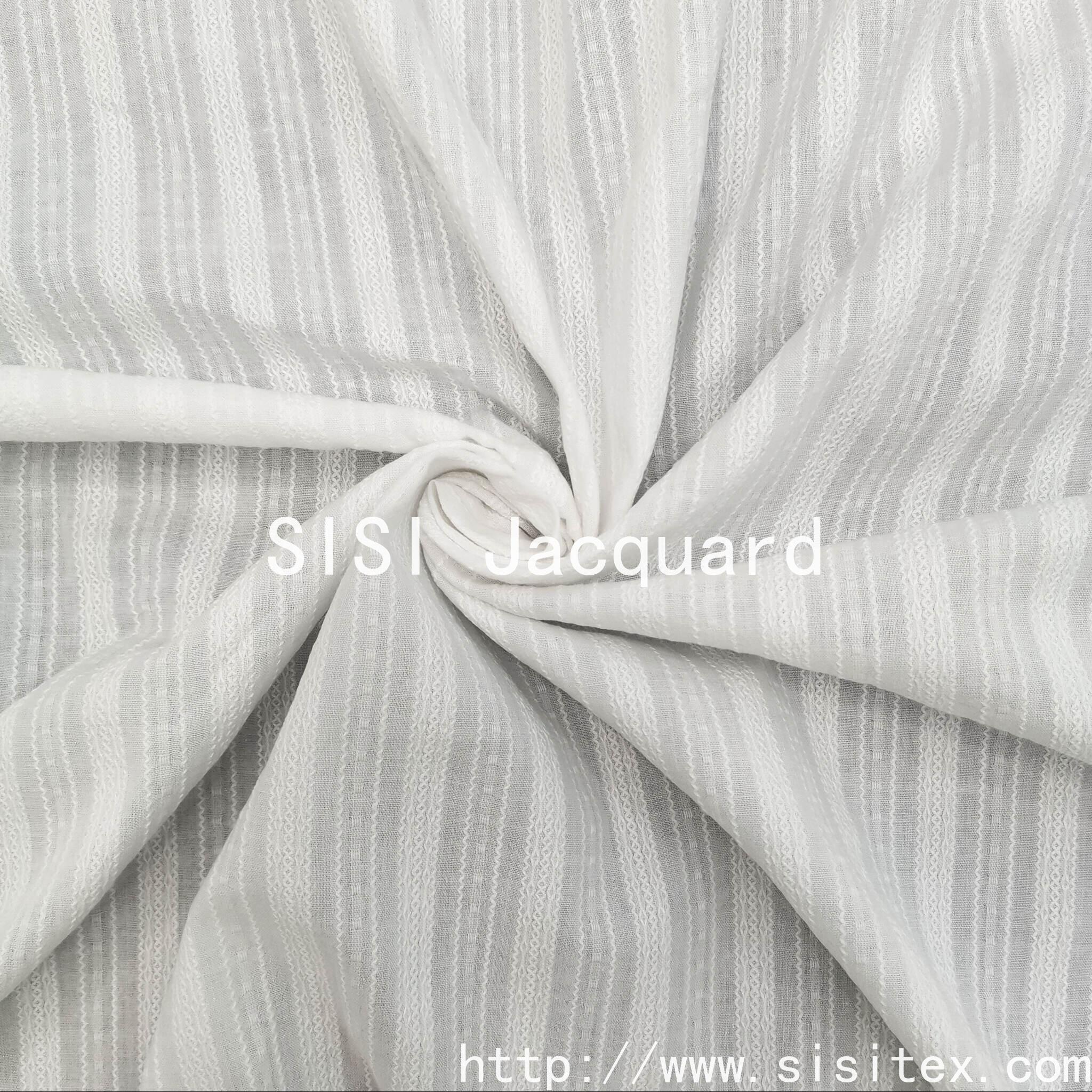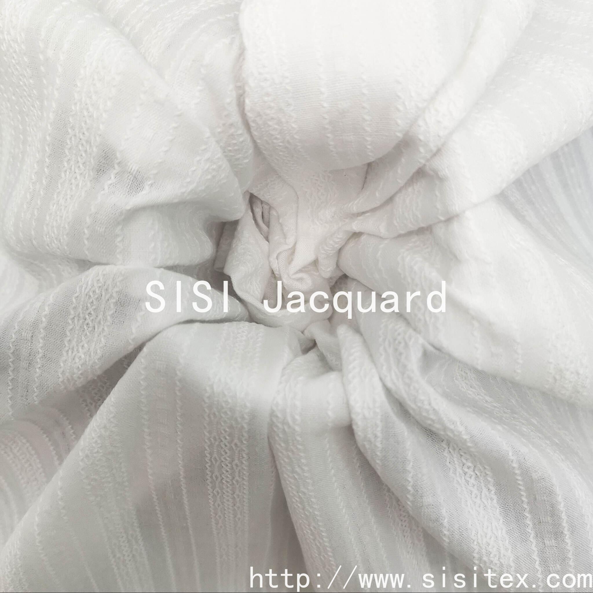 This spring and summer all-cotton gauze jacquard fabric is meticulously presented by Shaoxing Sisi Textile Products Co., LTD. (Sisi Jacquard). It is made from 100% high-quality combed cotton and woven by combining traditional gauze techniques with modern jacquard technology. The fabric features a unique perforated texture and three-dimensional jacquard pattern, with a light and fluffy texture. It has excellent breathability and moisture absorption and sweat-wicking properties, perfectly meeting the demand for freshness and comfort in spring and summer.
