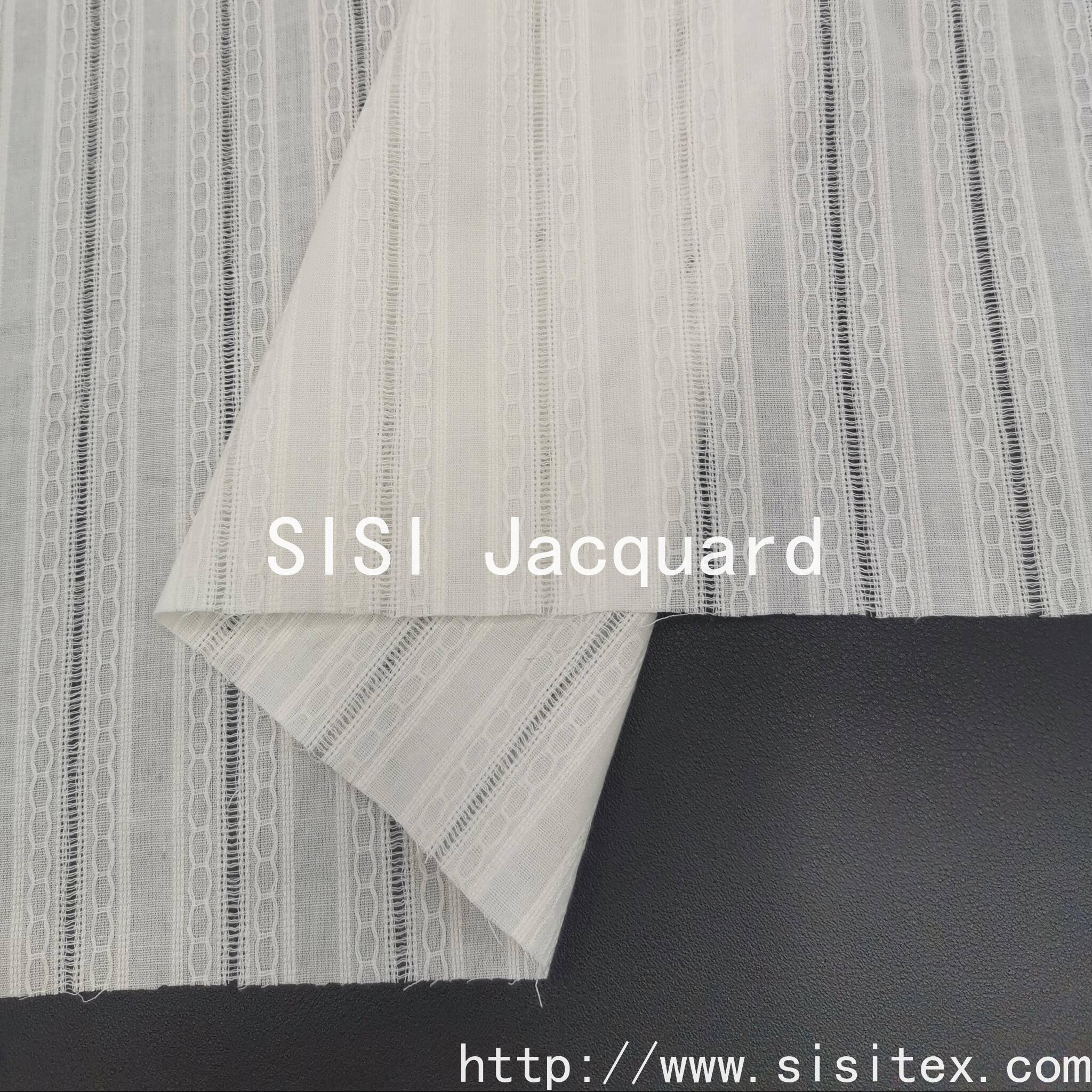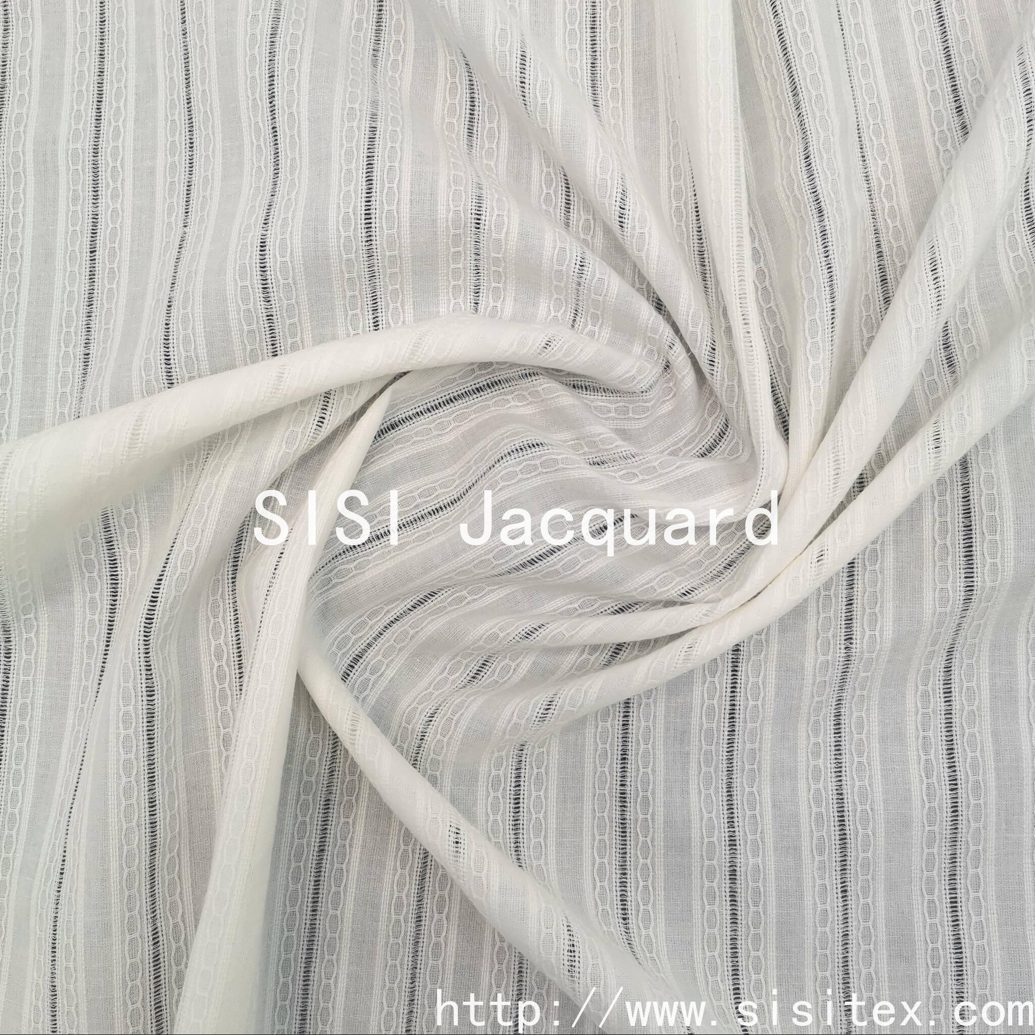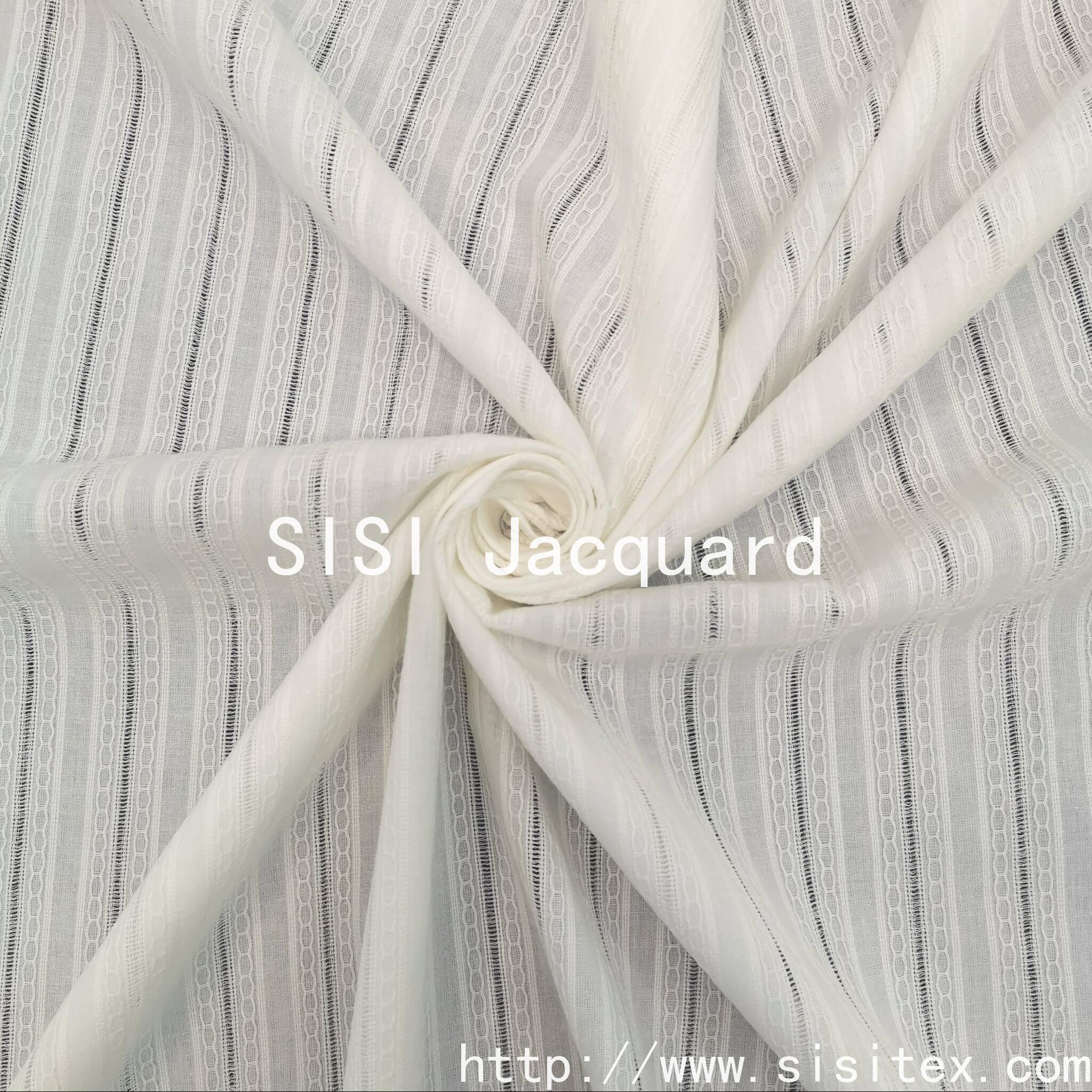 This product is made of 100% cotton jacquard fabric with vertical stripe mesh pattern, SS18197. The vertical stripes have a clear and three-dimensional texture. The jacquard technique is used to display the vertical stripe pattern, preserving the natural properties of cotton while achieving exquisite patterns through modern techniques. It meets the diverse needs of urban commuting, vacation leisure, etc., and has become the preferred material for designers to create "light outdoor" and "new Chinese style" styles. The retro texture of the cotton jacquard combines with the traditional clothing shape, conveying the aesthetic charm of Eastern culture; the soft texture of cotton and the natural texture of the vertical stripes resonate, creating a soothing atmosphere.