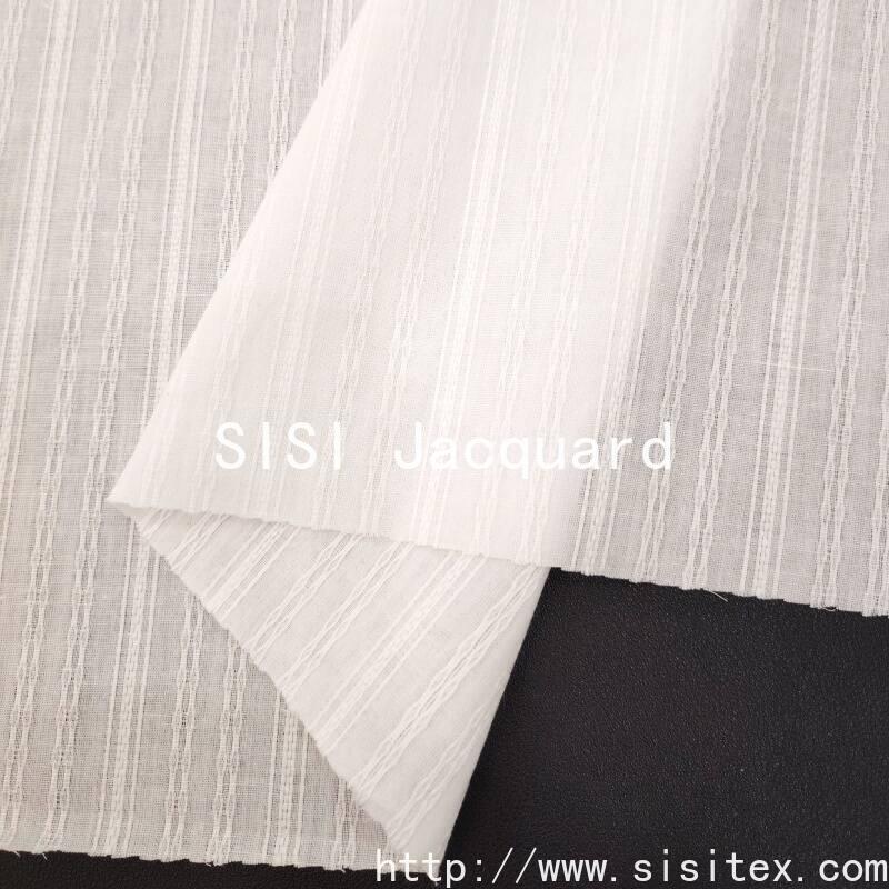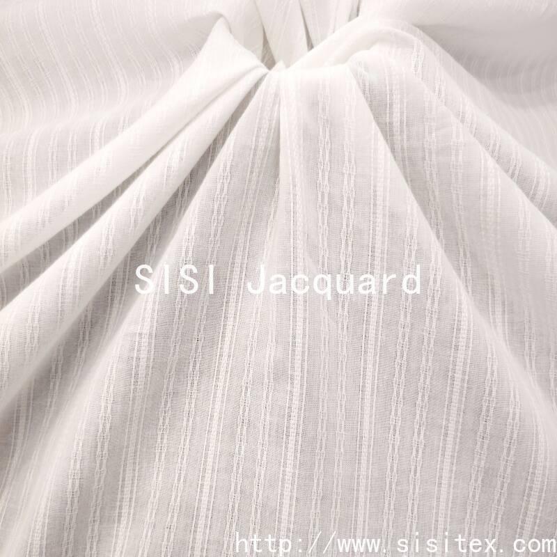 Process: Gauze structure is lightweight and transparent, vertical stripe marbled jacquard technique is three-dimensional and exquisite, with rich patterns;