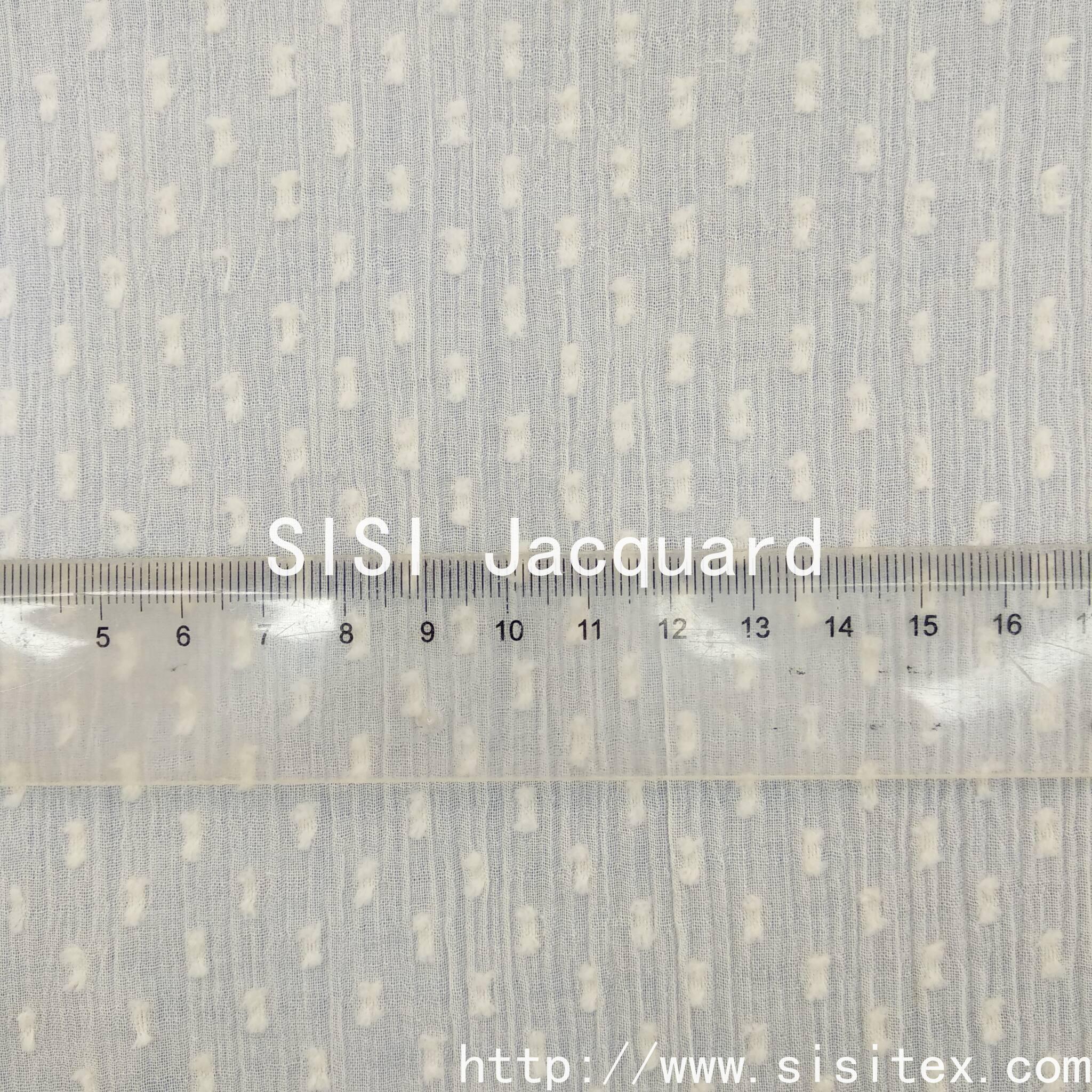 This product is made with high-quality cotton crepe fabric as the base. Through exquisite jacquard and embroidery techniques, it creates a luxurious fabric with rich layers and立体 textures. It has a soft and comfortable feel, good breathability and skin-friendliness. The patterns are exquisite and detailed, combining beauty with practicality. It is suitable for various high-end clothing and home uses.