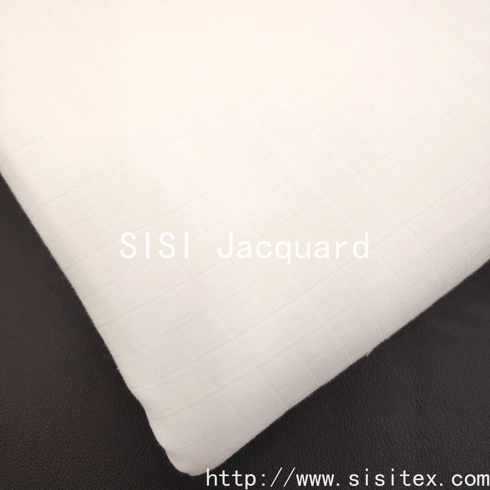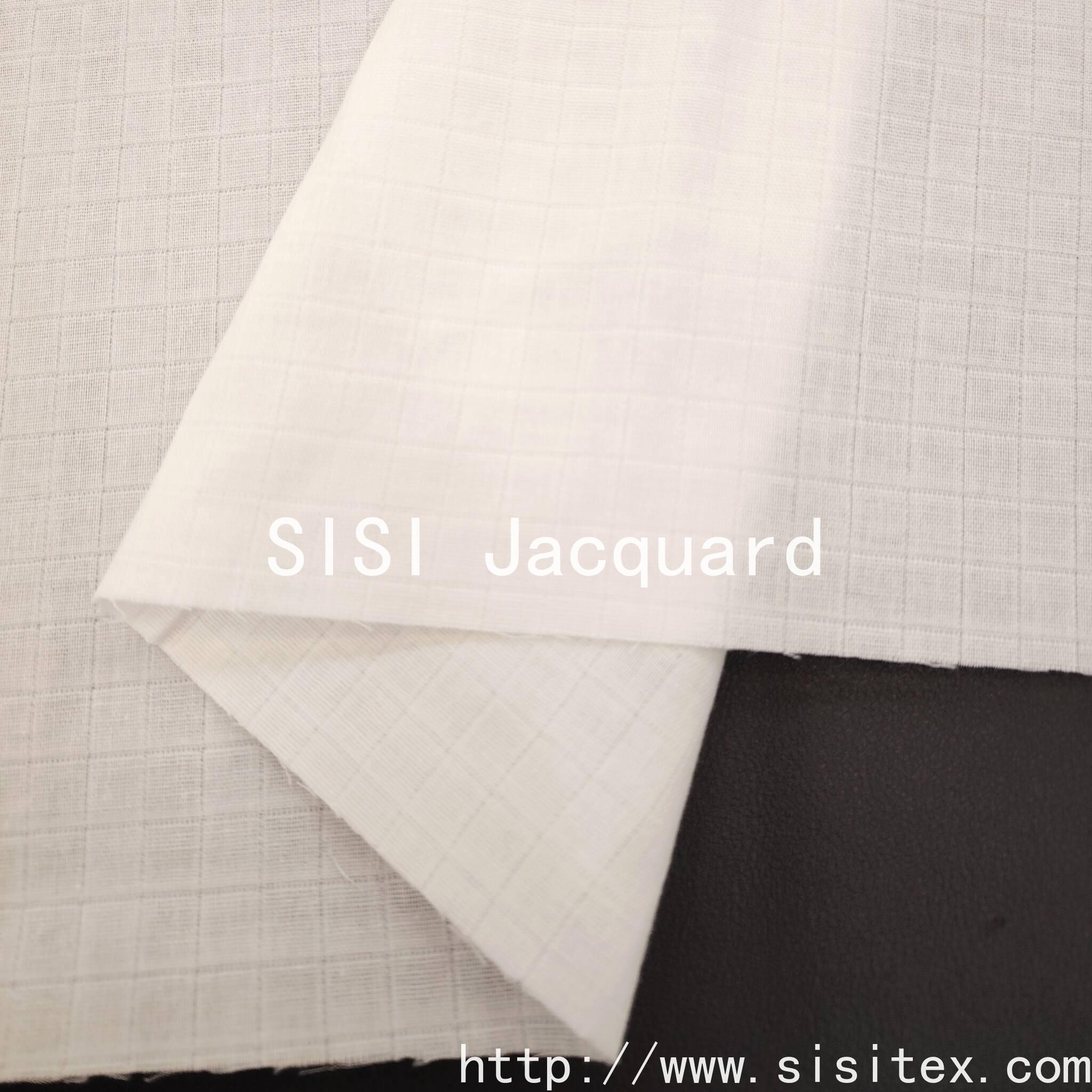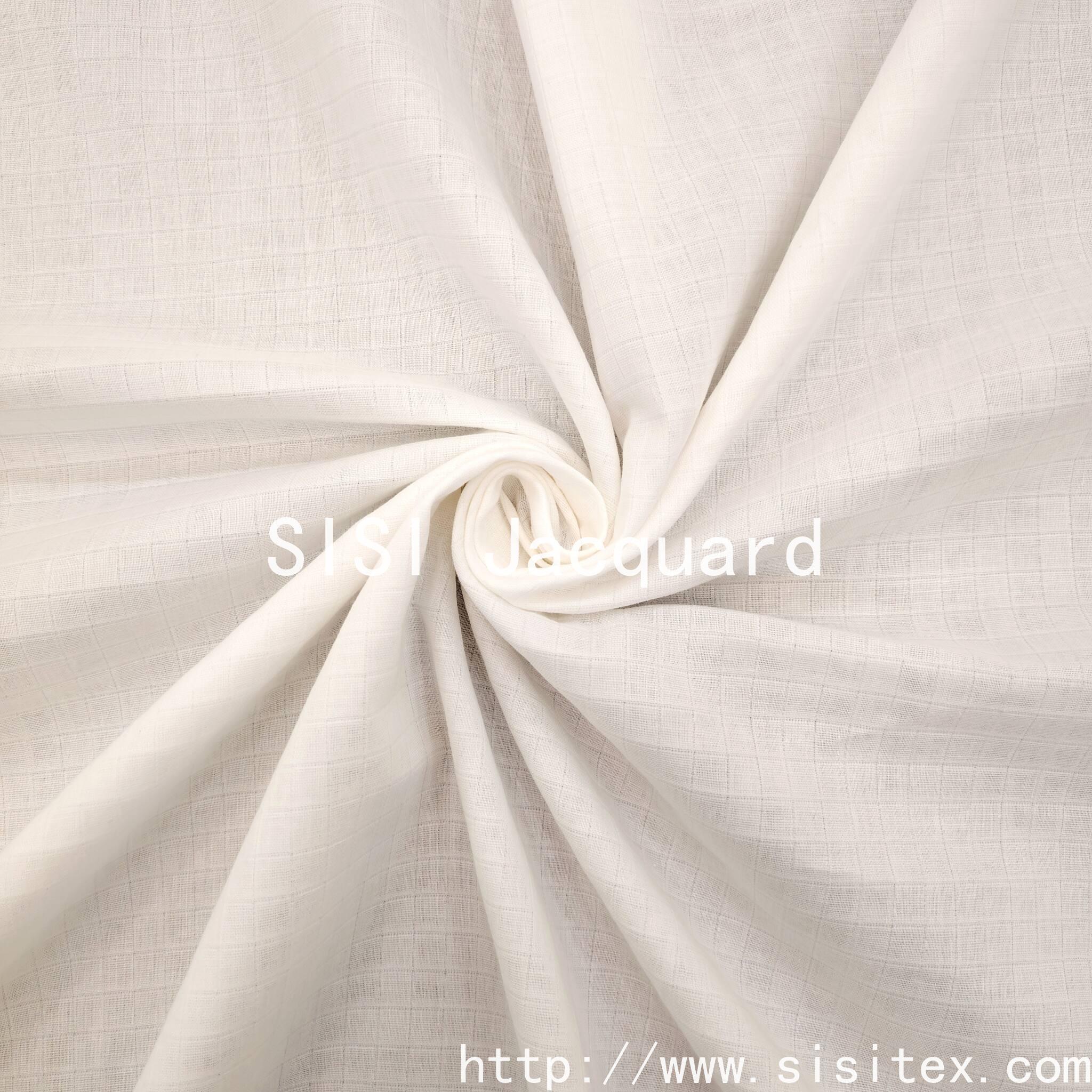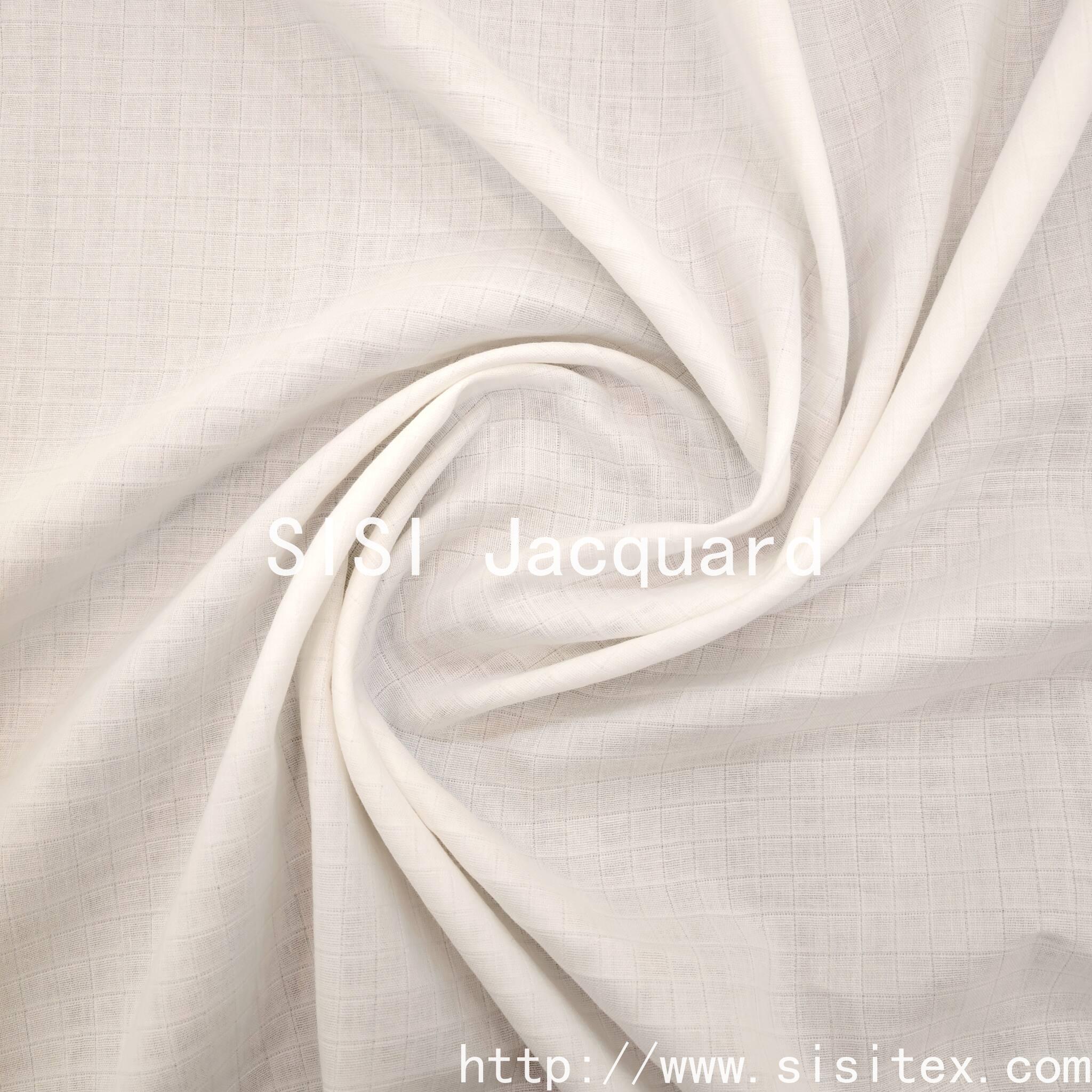 This product is a woven cotton double-layered fabric with a checked jacquard pattern. It is based on 100% pure cotton and is crafted using the jacquard weaving technique to create a three-dimensional grid texture. The double-layered structure ensures lightness and breathability.