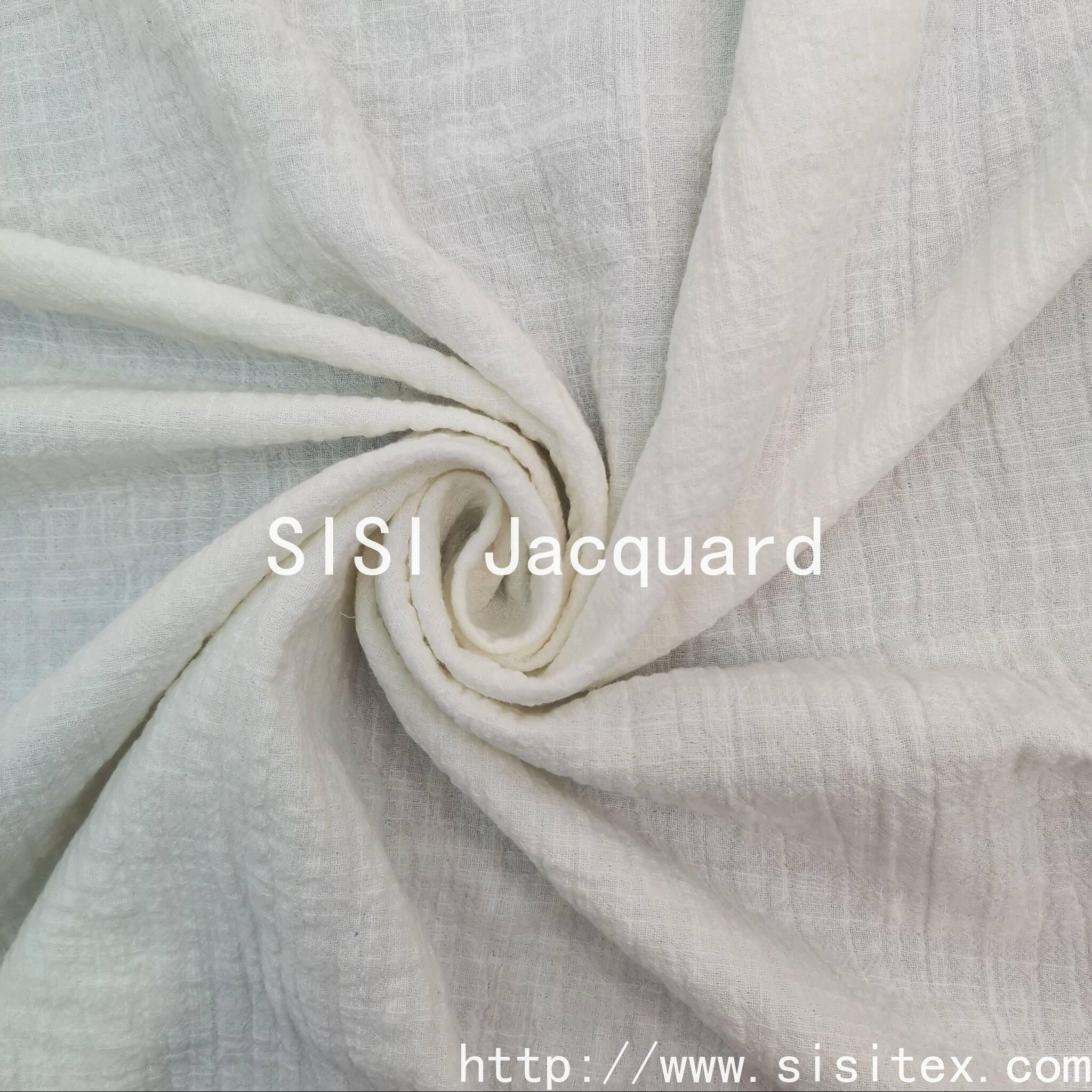 This product is made of 100% cotton double-layer weft and warp bamboo crepe fabric SS18213-1. It aligns with the "recycled cotton, natural fibers" environmental trend, meeting consumers' demands for sustainable fashion. The double-layer weft and warp structure gives the fabric its stiffness, the bamboo crepe texture is naturally rough, and the water washing process optimizes the softness, providing a smooth and non-irritating touch. It is the soulful choice for retro relaxed style, suitable for various scenarios such as daily leisure and light business commutes; the pure cotton material is renewable, adhering to the concept of sustainable fashion, and balancing quality and social responsibility.