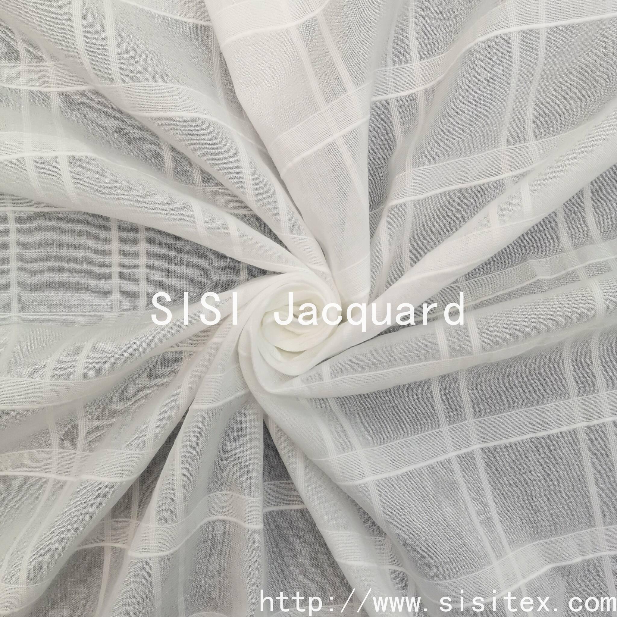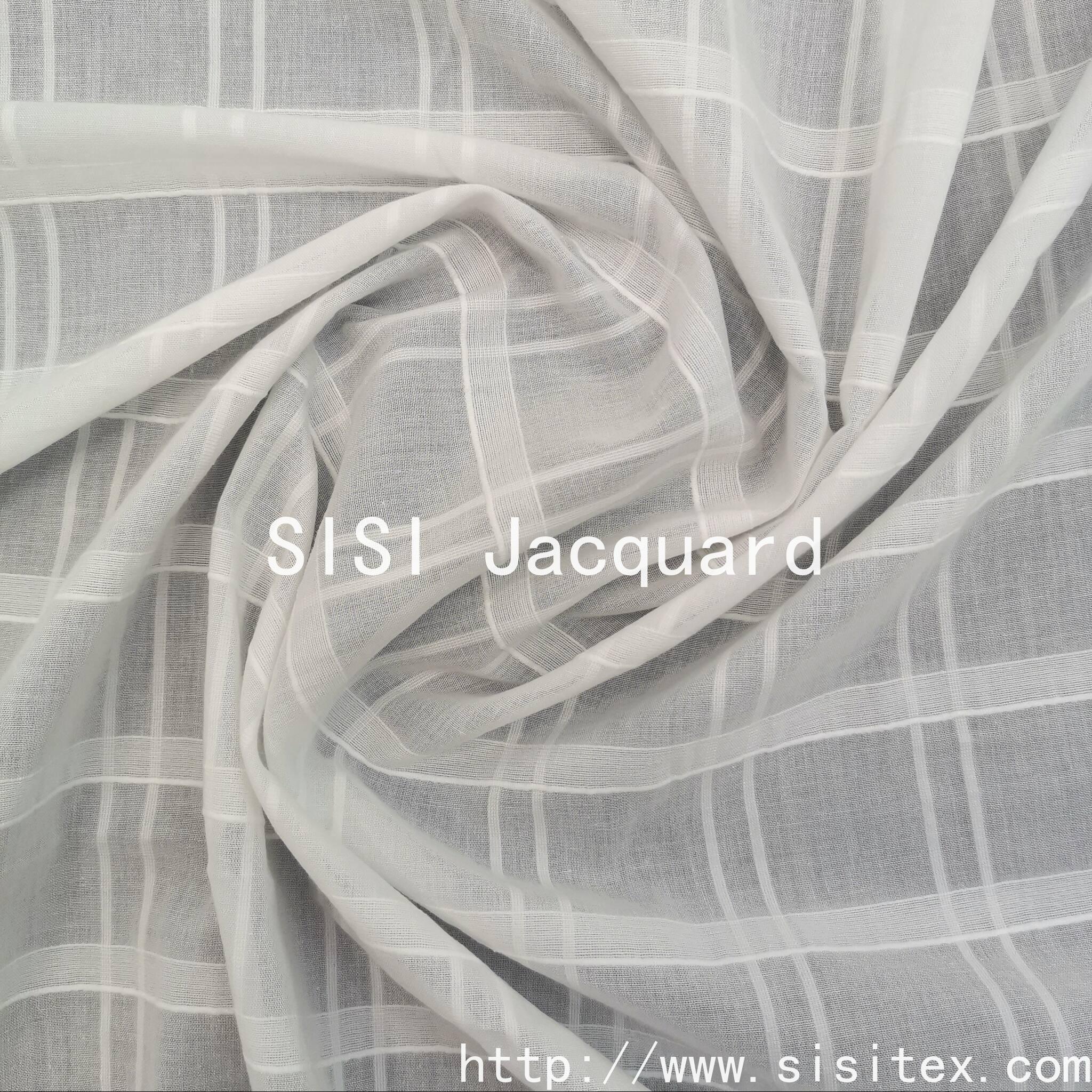 This product is made of 100% cotton gauze with a jacquard pattern. Model SS18777. It features a three-dimensional checkered design created through jacquard weaving, which is naturally eco-friendly and comfortable to wear and breathable. The gauze fabric itself has a transparent and lightweight texture. When combined with the jacquard technique, the check pattern becomes more three-dimensional, meeting the demands of "light and breathable" seasons. It is suitable for shirts, dresses and other daily wear items. The jacquard technique enhances the design, while the gauze material ensures breathability, making it suitable for daily wear in spring and summer.