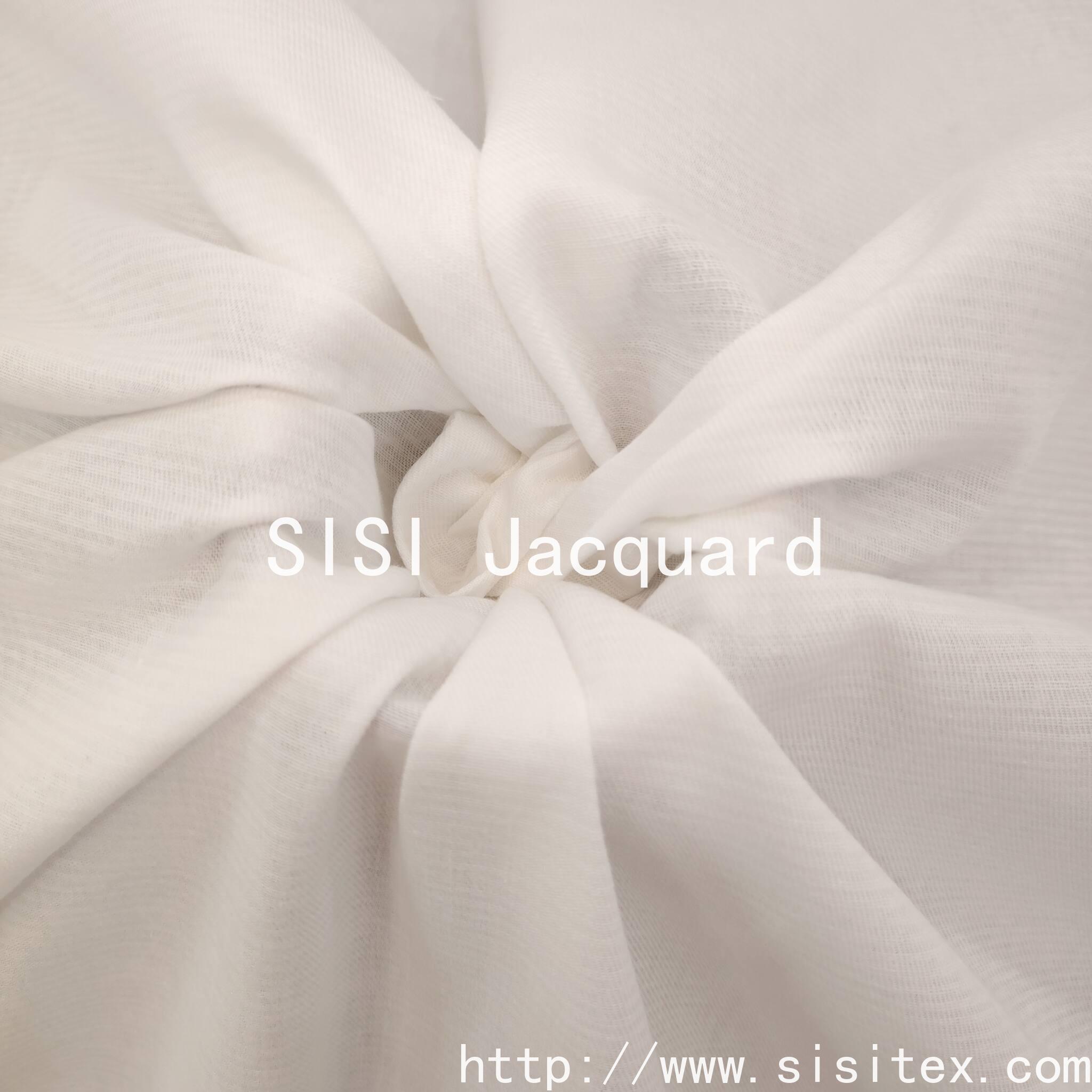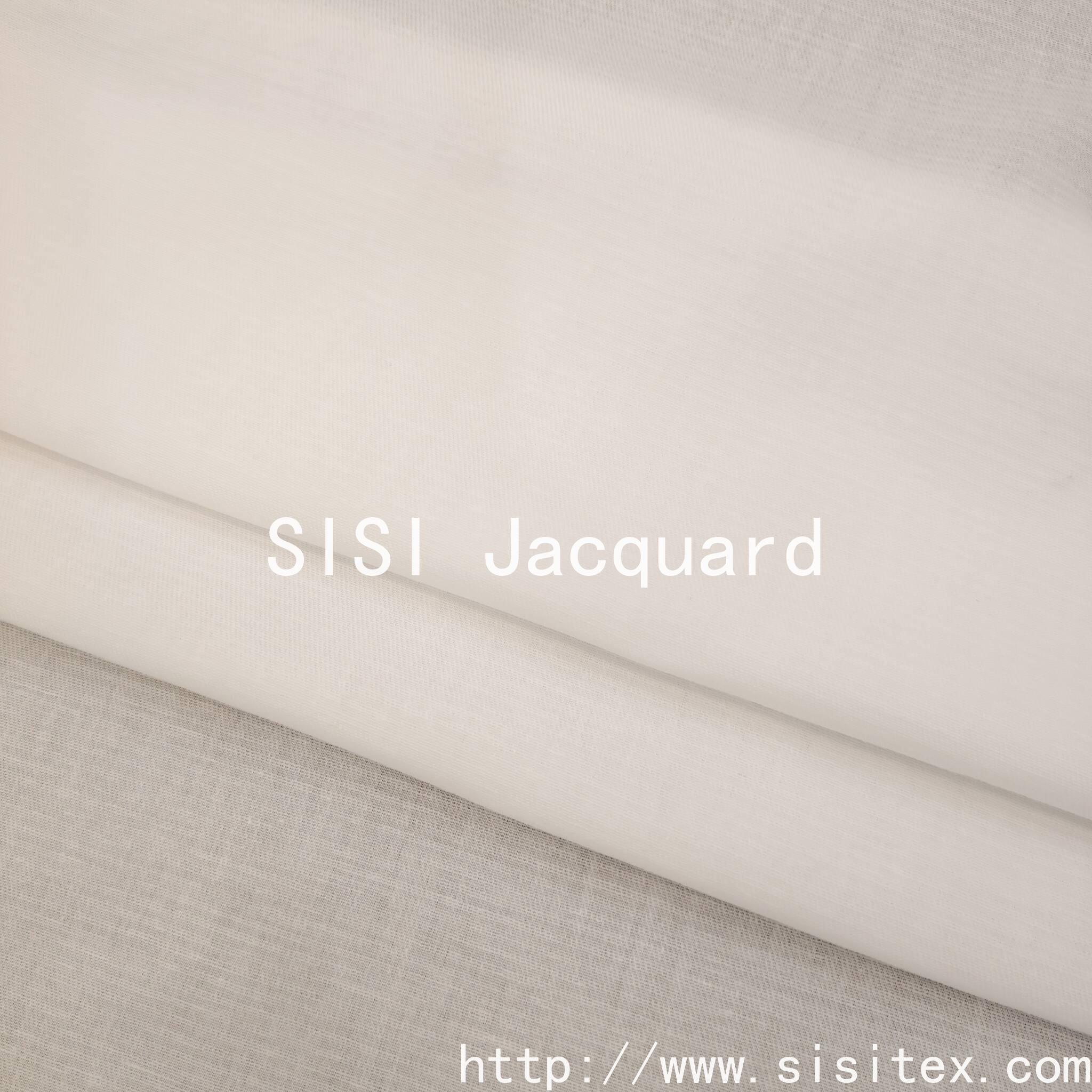 This woven cotton-linen horizontal jacquard fabric is meticulously crafted by Shaoxing Sisi Textile Products Co., LTD. It is made of high-quality cotton-linen blended materials and combines traditional jacquard techniques with modern design, presenting a unique horizontal texture. The fabric is soft and comfortable in texture, with excellent breathability. It combines the skin-friendliness of cotton with the natural texture of linen, making it an ideal choice for creating high-quality household items and fashionable items.