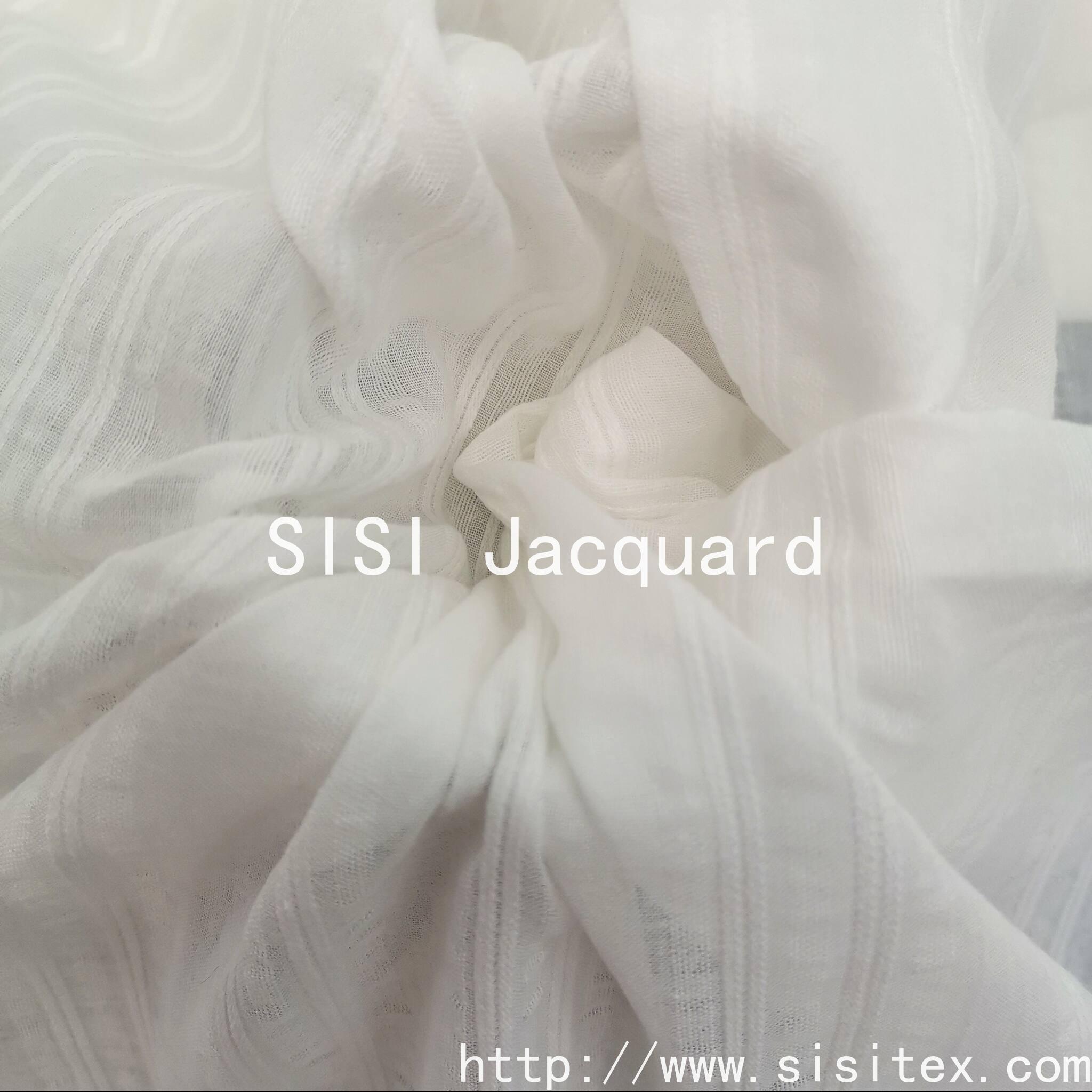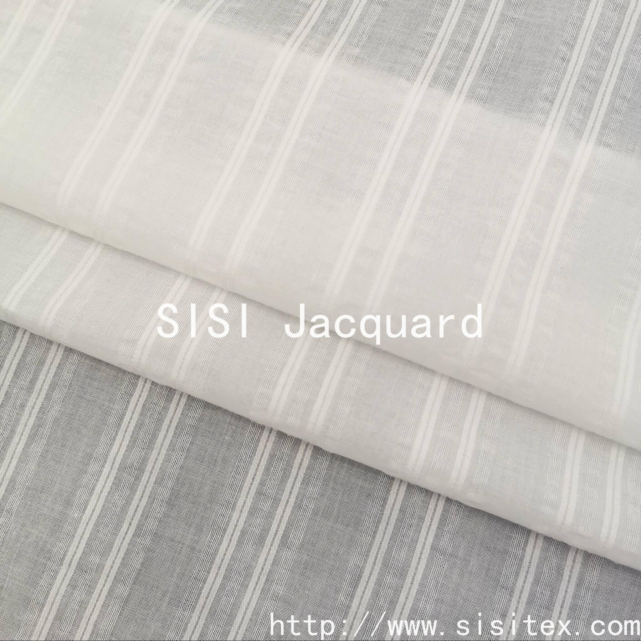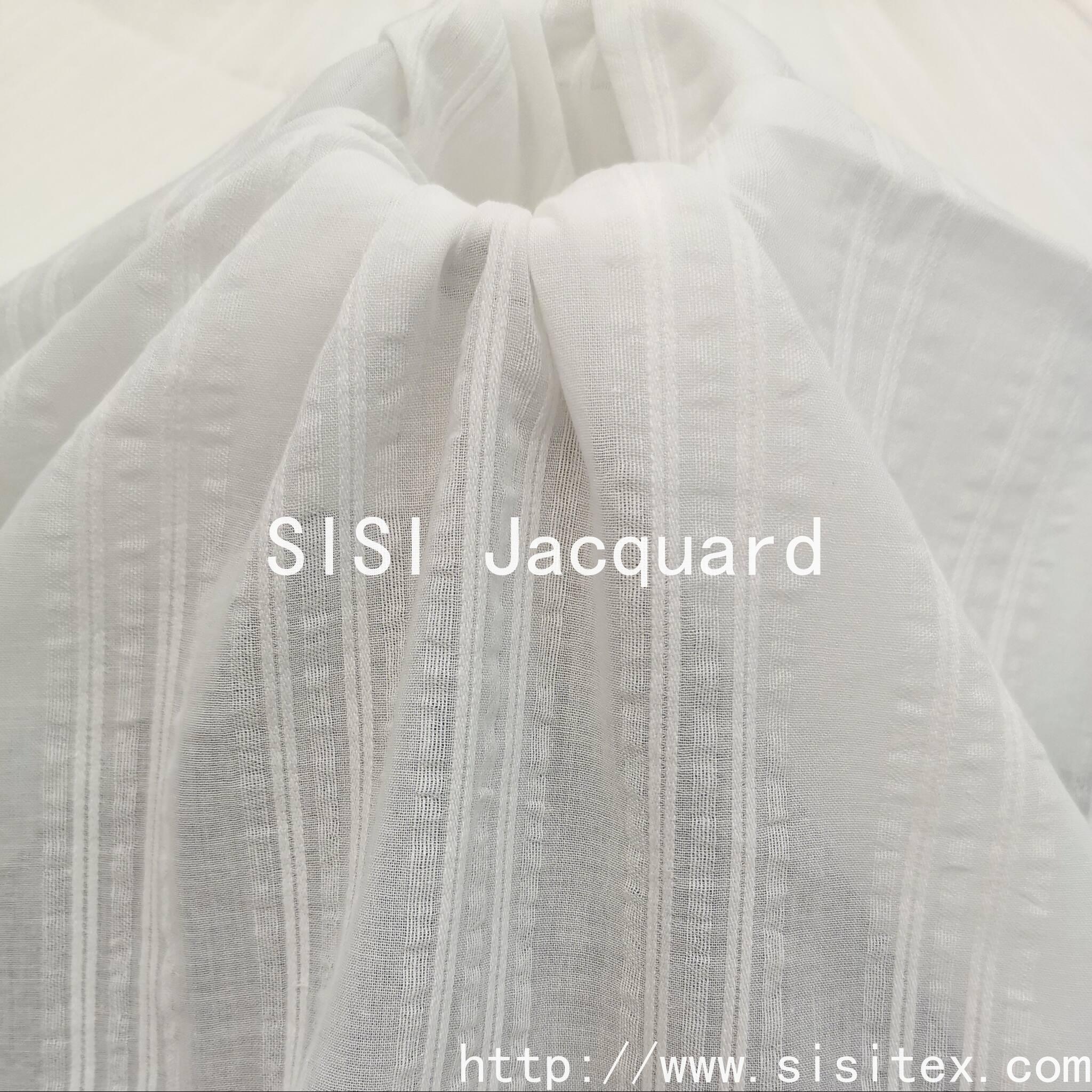 This product is made of 100% cotton plain weave vertical jacquard fabric SS18780. It is made from traditional plain weave techniques combined with modern jacquard technology. The fabric has the dual advantages of "light and breathable" and "three-dimensional jacquard design". The vertical jacquard details break the monotony of solid colors, while the plain weave retains the retro texture, making the fabric have both "modern design sense" and "traditional elegance". The display showcases the vertical jacquard pattern, the light and thin texture of the plain weave, and the natural drape of the fabric, presenting the visual effect of "the integration of retro craftsmanship and modern design" in a straightforward manner.