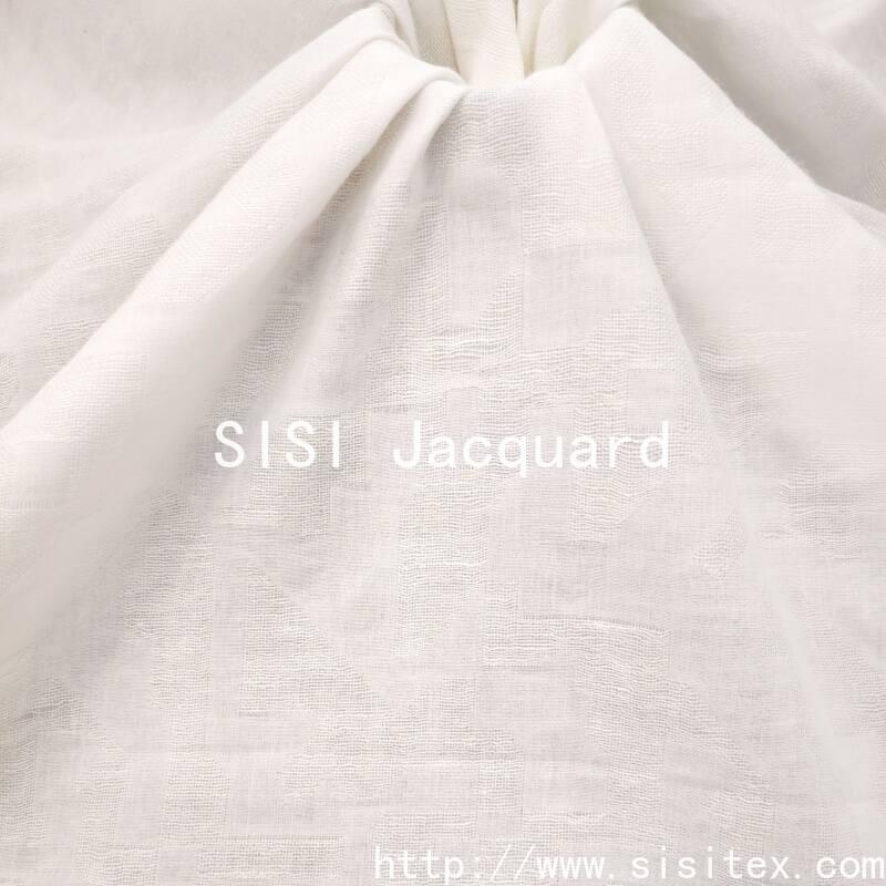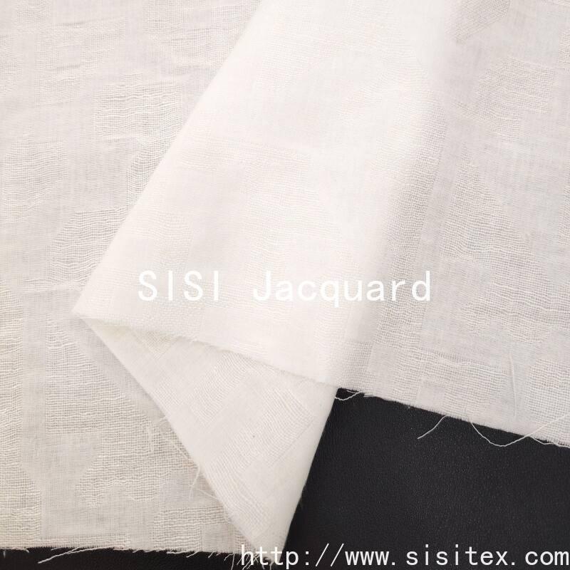 SS18216 is a double-layer jacquard fabric made of a carefully balanced blend of cotton, rayon and linen. This fabric combines the softness and skin-friendliness of cotton, the smoothness and draping of rayon, and the natural texture of linen. Through the double-layer jacquard technique, it creates a rich layering effect. The surface features delicate jacquard patterns and the natural texture of the linen fibers, with a refreshing yet soft touch. This fabric combines the breathability of natural materials with the artistry of exquisite craftsmanship. Whether used to create clothing that showcases Eastern aesthetics or to design home furnishings with a natural atmosphere, it can infuse the works with unique cultural depth and high-end texture. Its good drape and moderate grain give the finished product a natural and elegant form.