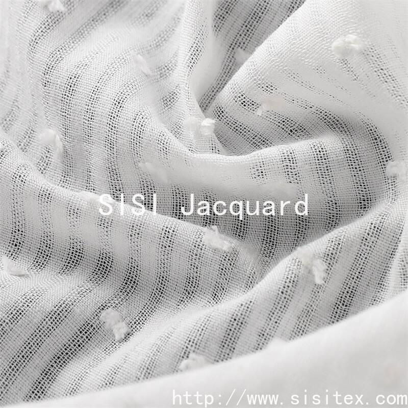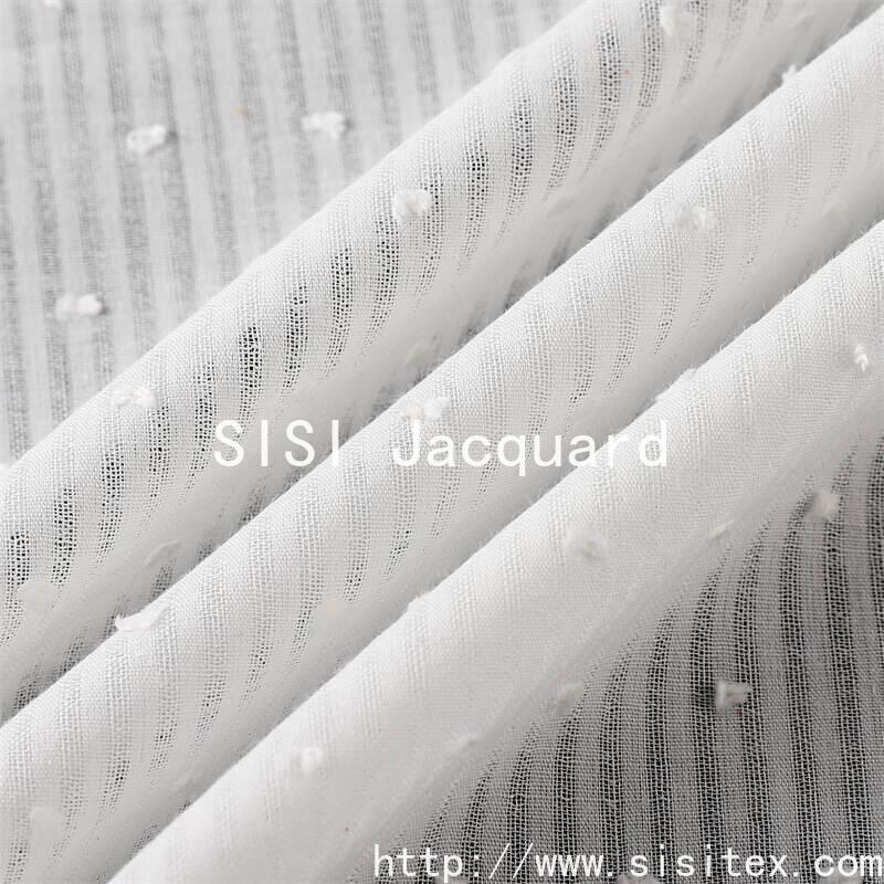 This fabric is made of 100% high-quality cotton fibers. Through the combination of the ** hollow buckle weaving process ** and the ** gauze structure **, it forms a unique breathable and hollow texture. The surface is decorated with three-dimensional hairball cut flowers, paired with exquisite jacquard patterns, combining visual layering and tactile fun. The fabric is soft and skin-friendly, moisture-absorbent and breathable, perfectly balancing decoration and practicality.