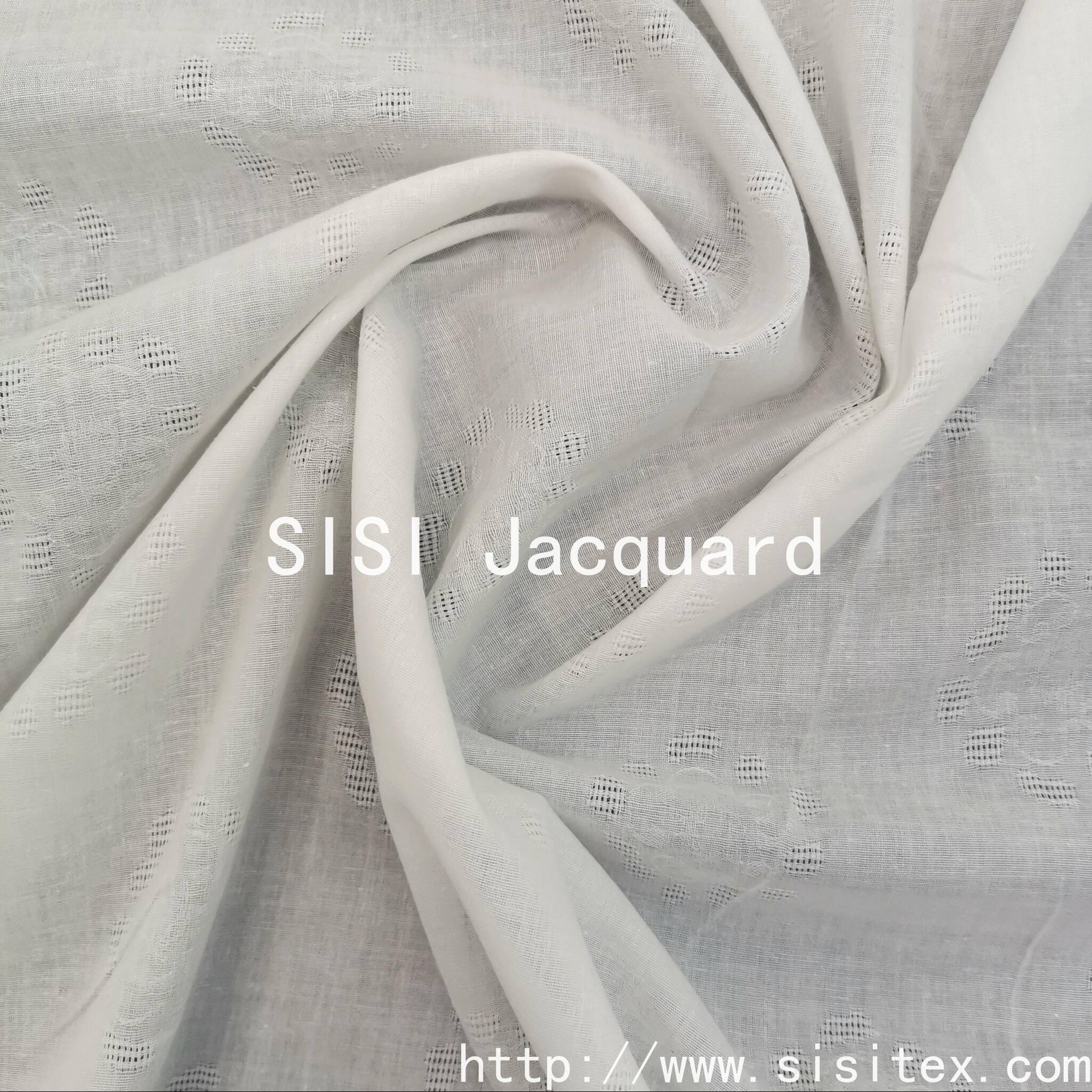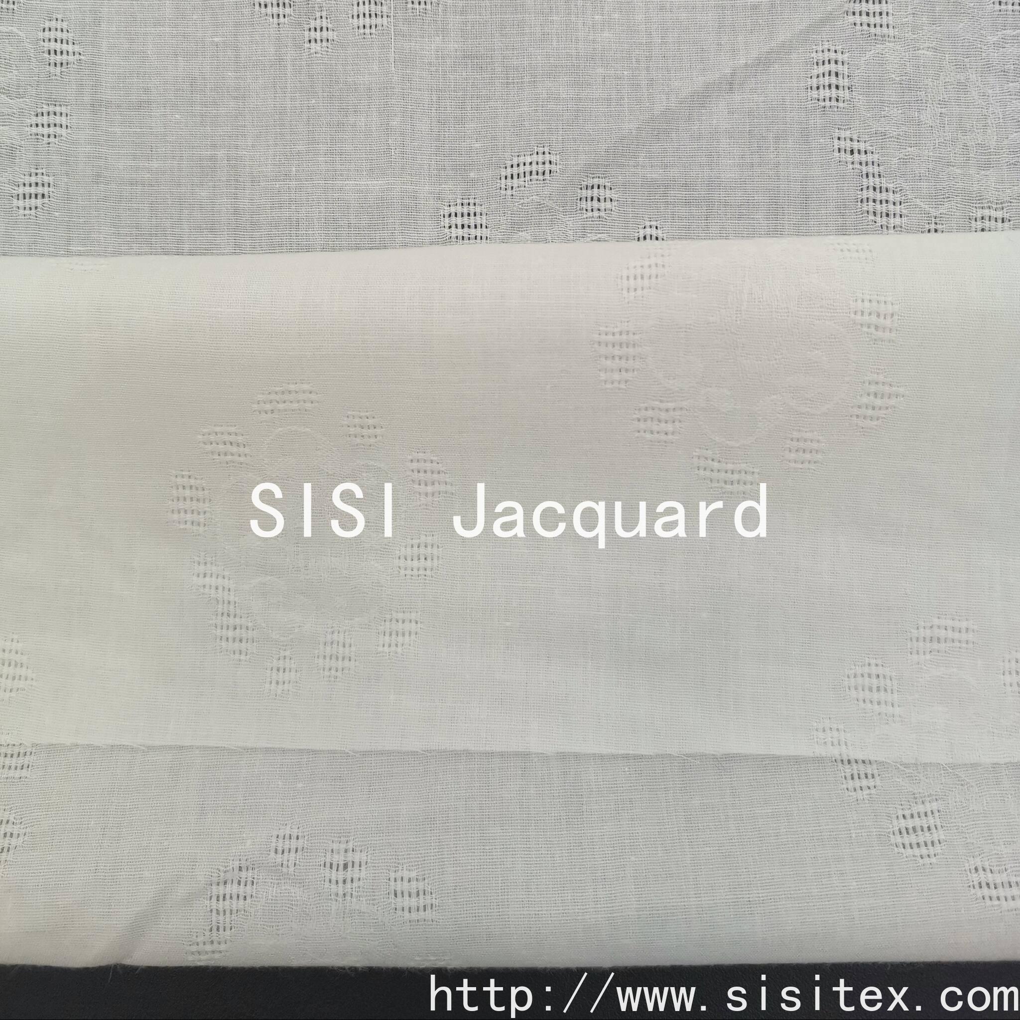 This product features a fully hollowed-out floral jacquard fabric SS18222. The softness and breathability of the all-cotton material enhance the comfort of home use. The jacquard technique, through the interlacing of warp and weft threads, presents three-dimensional floral patterns, meeting the creative demands of "unique flower shapes and exquisite craftsmanship". It is a mainstream choice in spring and summer clothing and home categories, combining artistic appeal with practicality. The hollow design improves air circulation, the floral elements add a romantic atmosphere, and it combines practicality with decoration; the three-dimensional effect of the jacquard technique and the transparency of the hollowing balance each other, creating a visual effect of minimalism with artistic details.