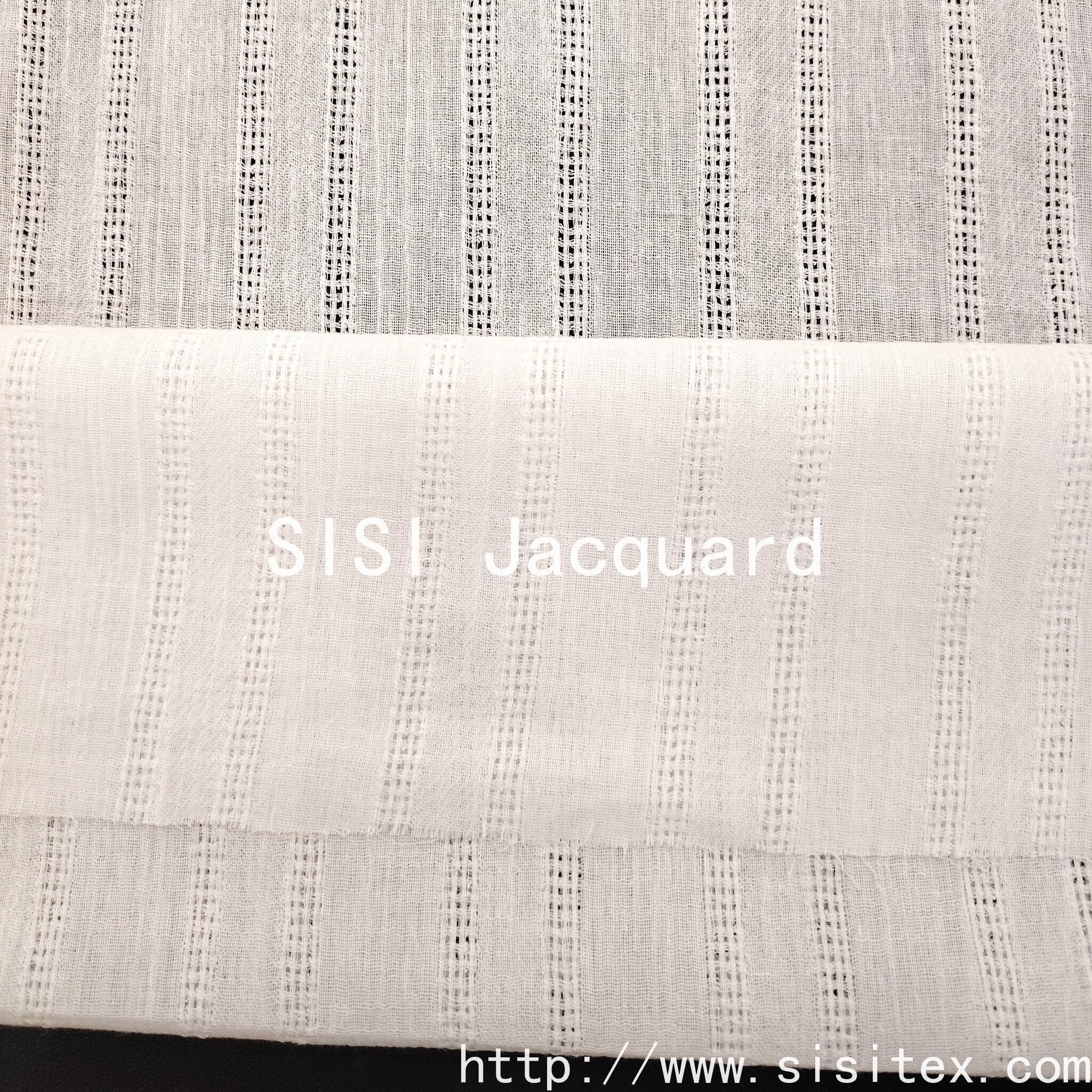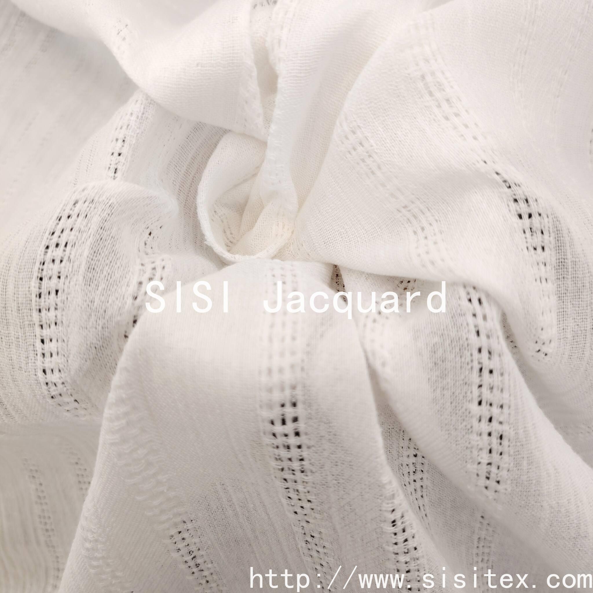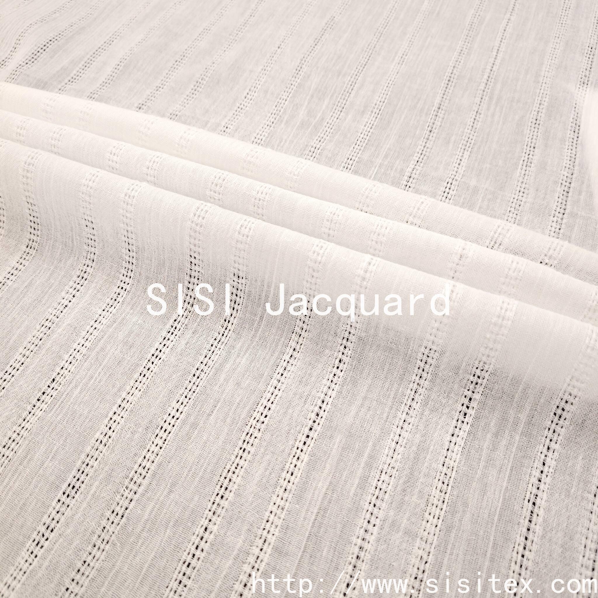 This product is a 100% cotton crepe fabric with open vertical stripes and jacquard pattern SS18225. It is made of 100% cotton, providing a comfortable and breathable feel. The natural material is gentle on the skin and does not cause any burden. The jacquard technique creates a three-dimensional vertical stripe pattern, and the open design enhances ventilation. The details are exquisite, suitable for various styles such as retro, minimalist, and for daily wear, meeting the needs in clothing and home decor. The 100% cotton material aligns with the current consumption trends of "natural and environmentally friendly" and "healthy and comfortable", further enhancing the appeal of the fabric.