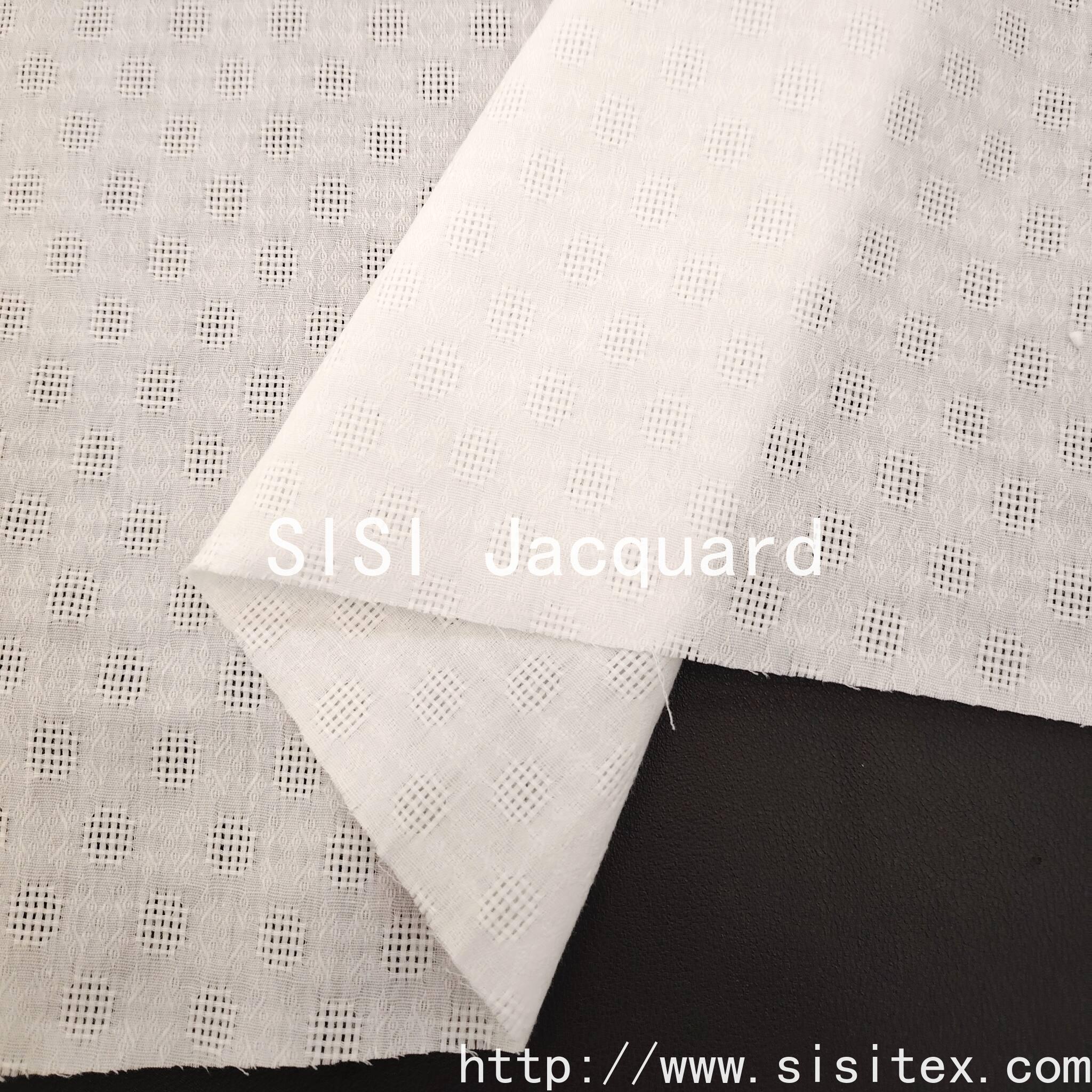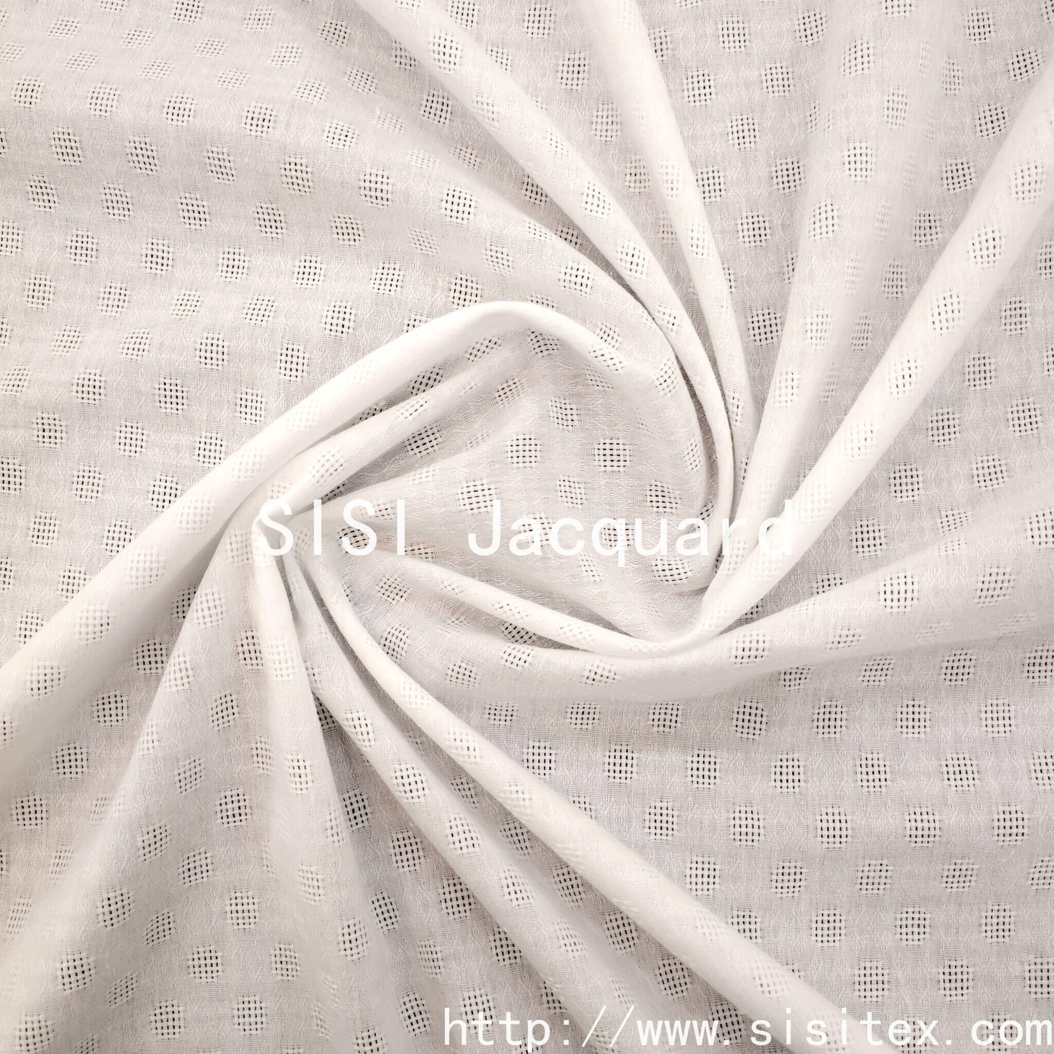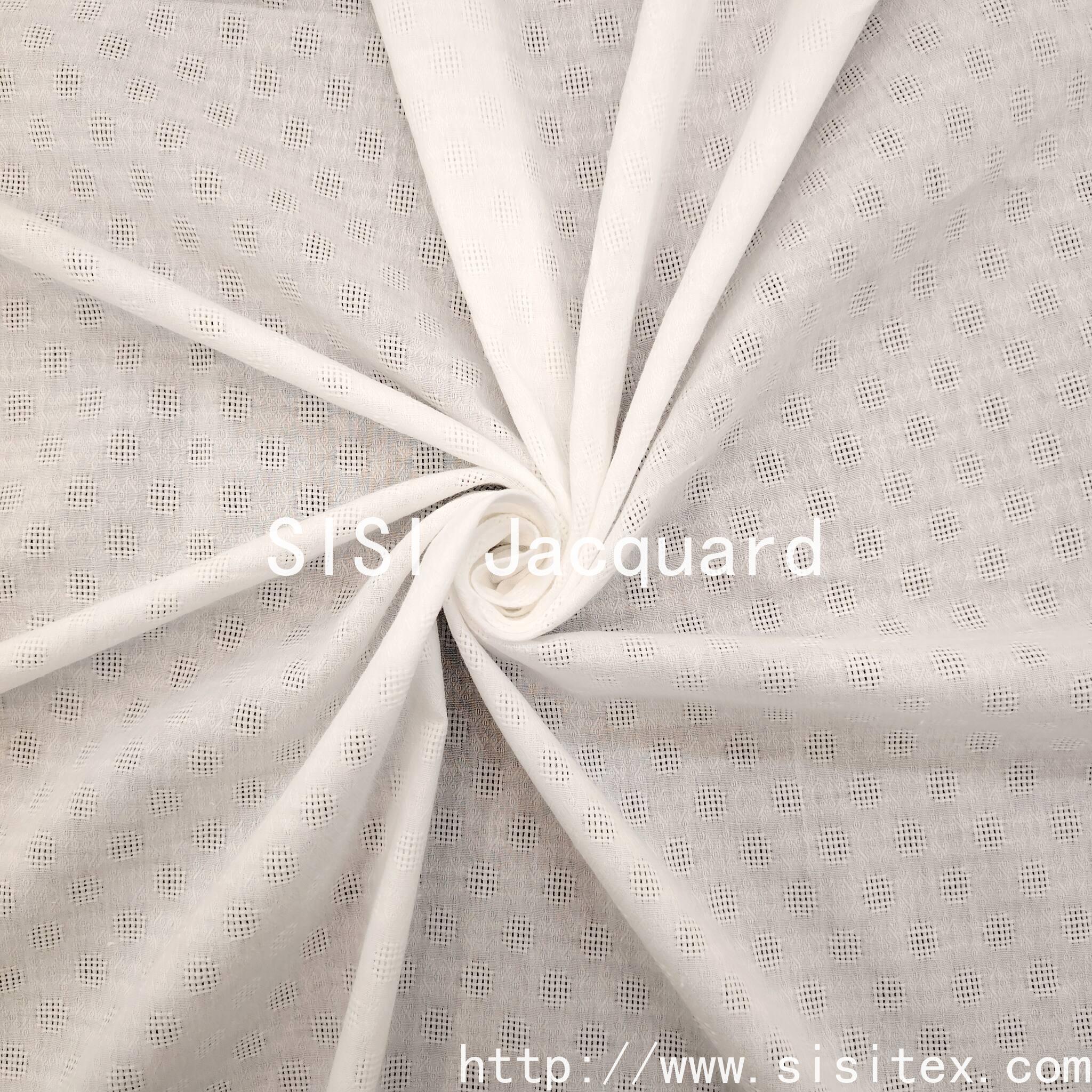 This product is made of 100% pure cotton, with a full-cotton mesh and jacquard fabric SS18227-1. It is naturally soft and breathable, absorbing sweat and keeping you cool in spring and summer. It aligns with the "diverse jacquard texture" direction. Its mesh pattern design combines the "three-dimensional relief effect" and "fresh linear aesthetics", satisfying the pursuit of texture and fashion by urban beauties, and also meeting the aesthetic demands of young people for "light luxury texture + summer freshness". It becomes a fabric choice in the women's clothing market that combines "texture and trend". It suits various styles such as urban beauties and young and playful ones.