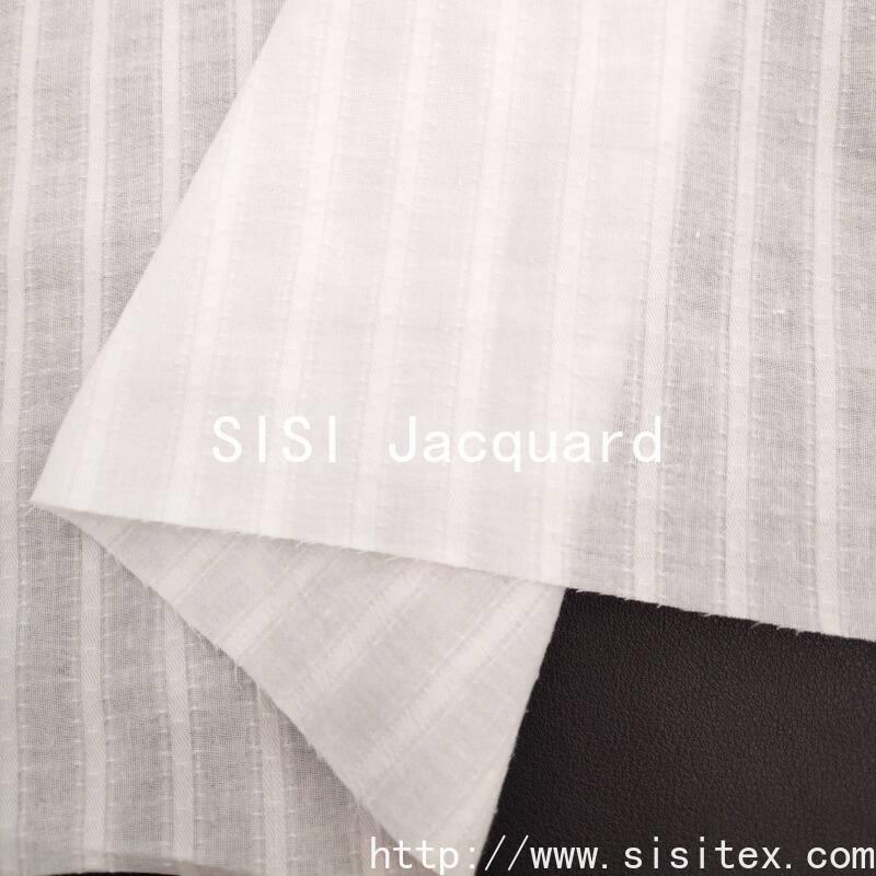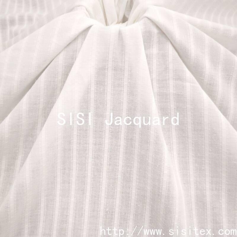 This product is made of 100% pure cotton, with a jacquard fabric featuring horizontal stripes and star patterns. It combines the lightness and delicacy of jacquard with the texture of cotton voile. It is an ideal fabric for those who value quality and style. It is lightweight, smooth and soft, with a fine touch. Visually, it has rich layers and embodies the characteristics of "luxurious elegance" and "fresh nature".