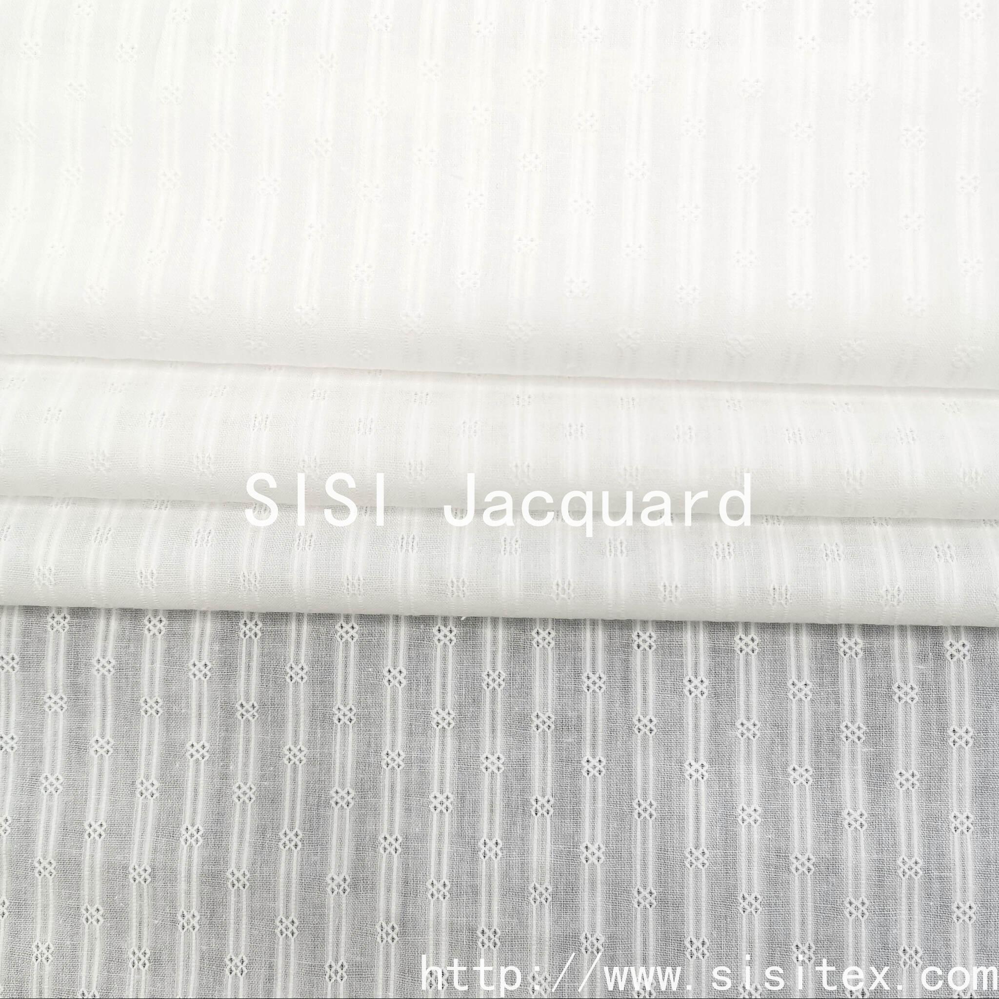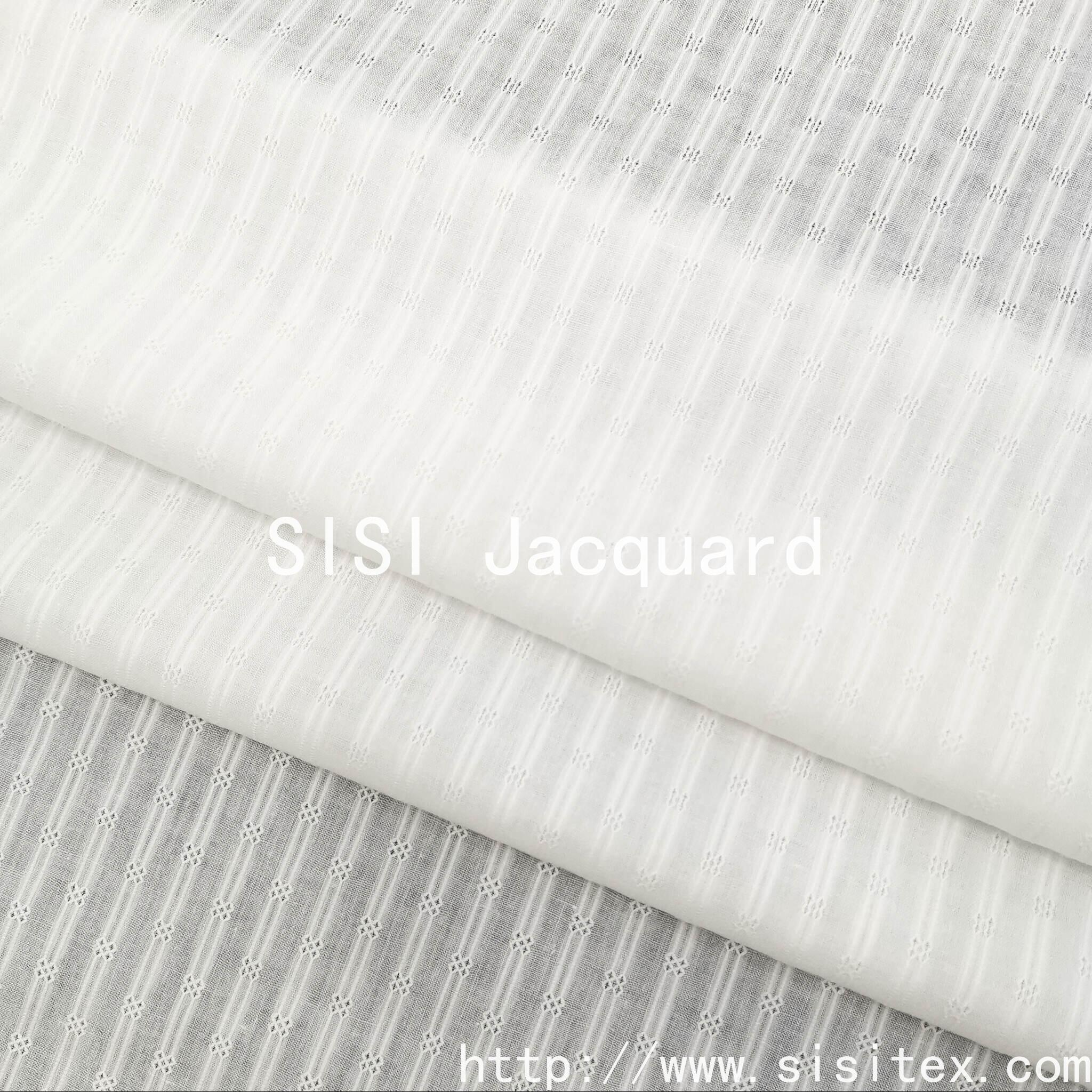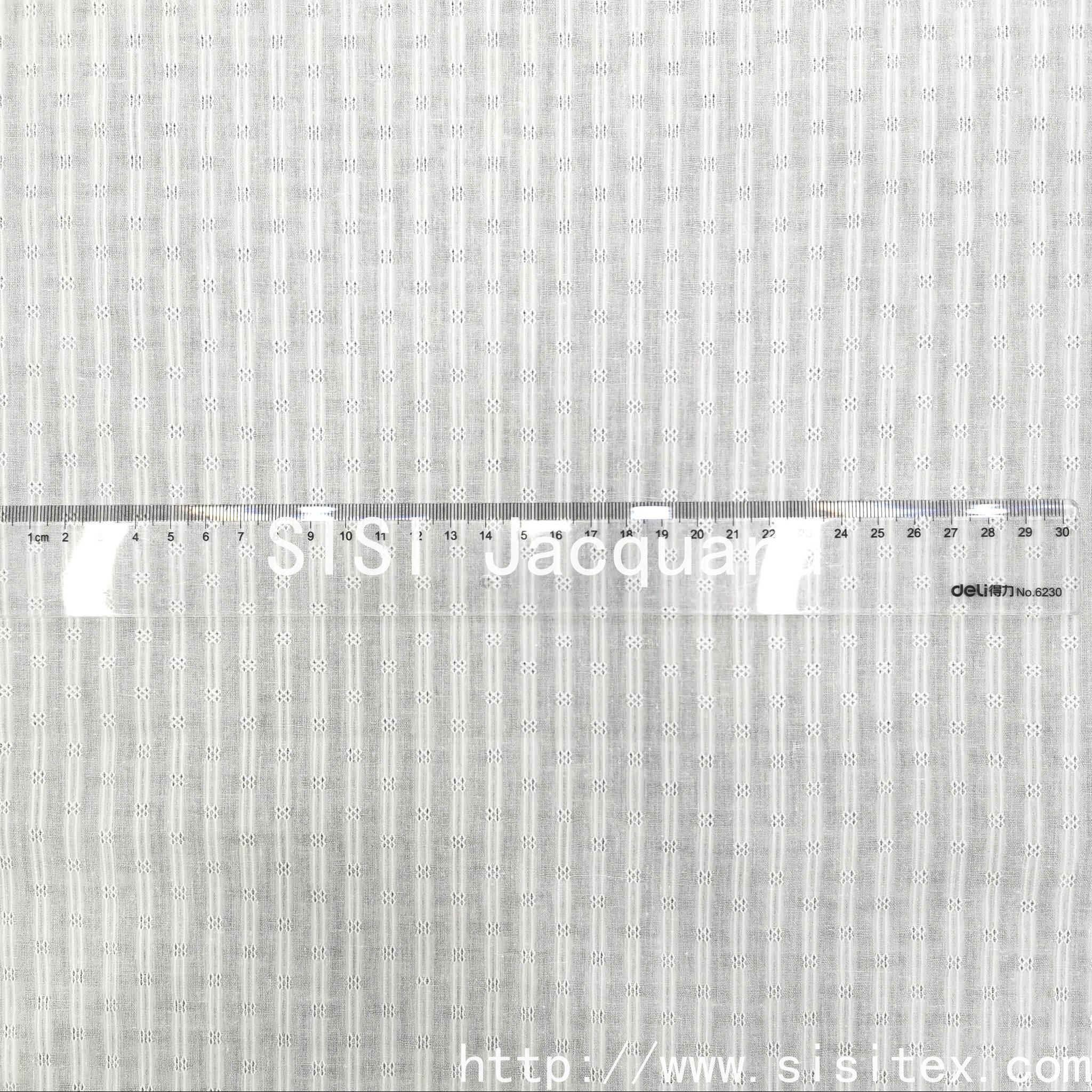 This spring and summer all-cotton gauze jacquard fabric is meticulously presented by Shaoxing Sisi Textile Products Co., LTD. (Salt Silk Jacquard). It is made from 100% high-quality combed cotton and woven by combining traditional gauze techniques with modern jacquard technology. The fabric features a unique perforated texture and three-dimensional jacquard pattern, with a light and fluffy texture. It has excellent breathability and moisture absorption and sweat-wicking properties, perfectly meeting the demand for freshness and comfort in spring and summer.
