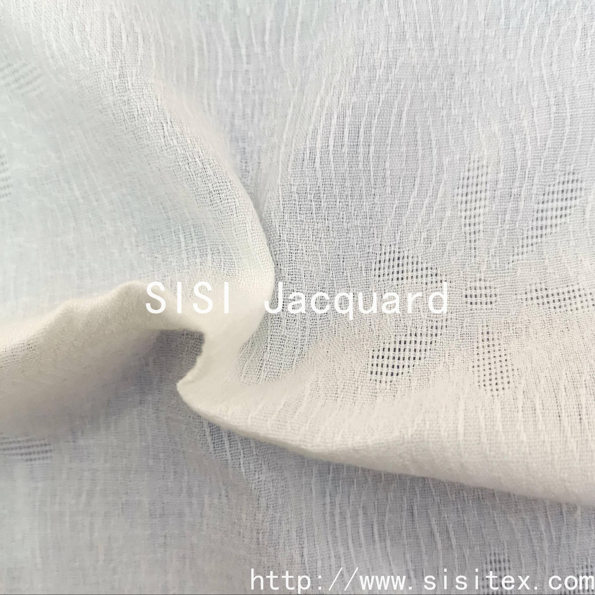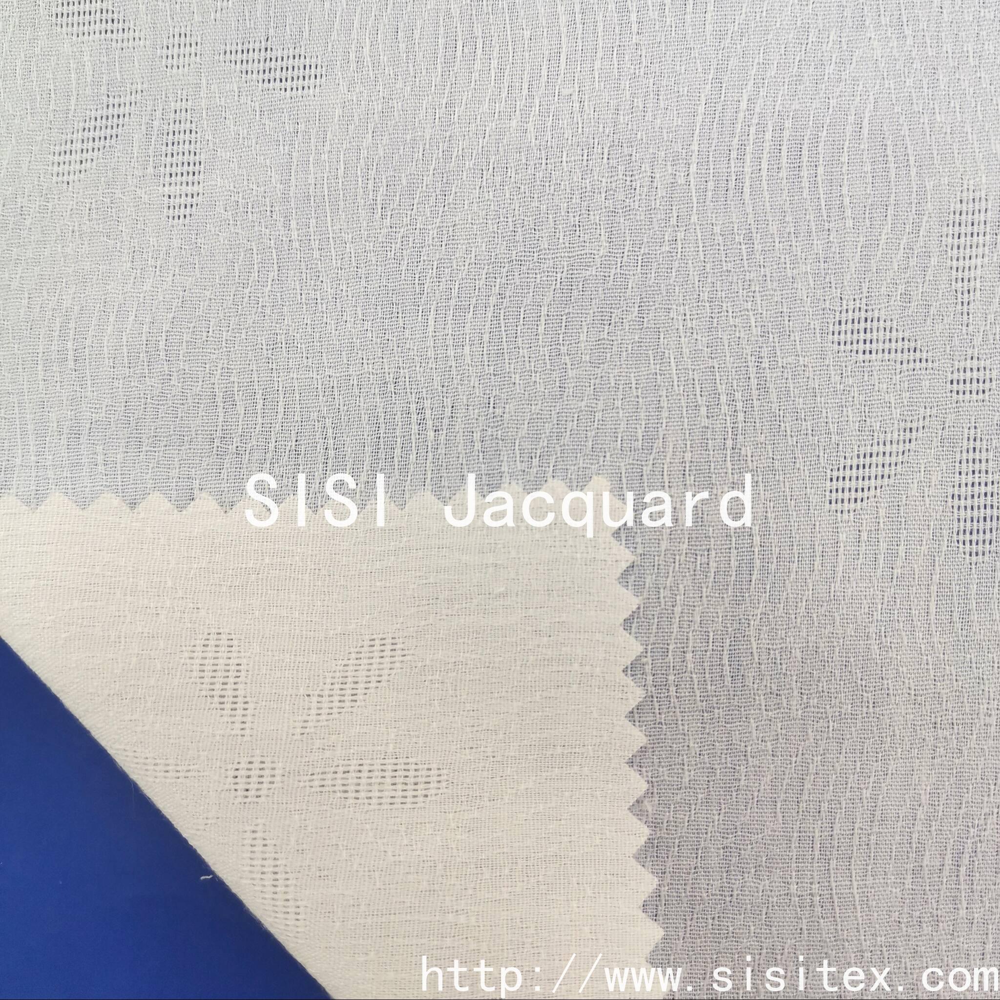 This product features a woven polyester-cotton ripple-shaped water-drop flower jacquard fabric, with a practical ratio of 65% polyester and 35% cotton. The high content of polyester ensures that the fabric has excellent wrinkle resistance and durability. Even after being vigorously manipulated, the garment can quickly return to its original shape, making it suitable for daily wear and travel. The addition of cotton provides the necessary skin-friendly comfort, achieving a perfect balance between functionality and comfort. The precise jacquard weaving technique brings the patterns to life on the fabric, creating clear raised and recessed textures. This not only enriches the visual layers but also offers a pleasant touch, highlighting the outstanding manufacturing process. The ripple and water-drop imagery has an Eastern aesthetic charm and a natural healing atmosphere, resonating with the popular "New Chinese Style" and the "Healing Style" that focuses on inner peace.