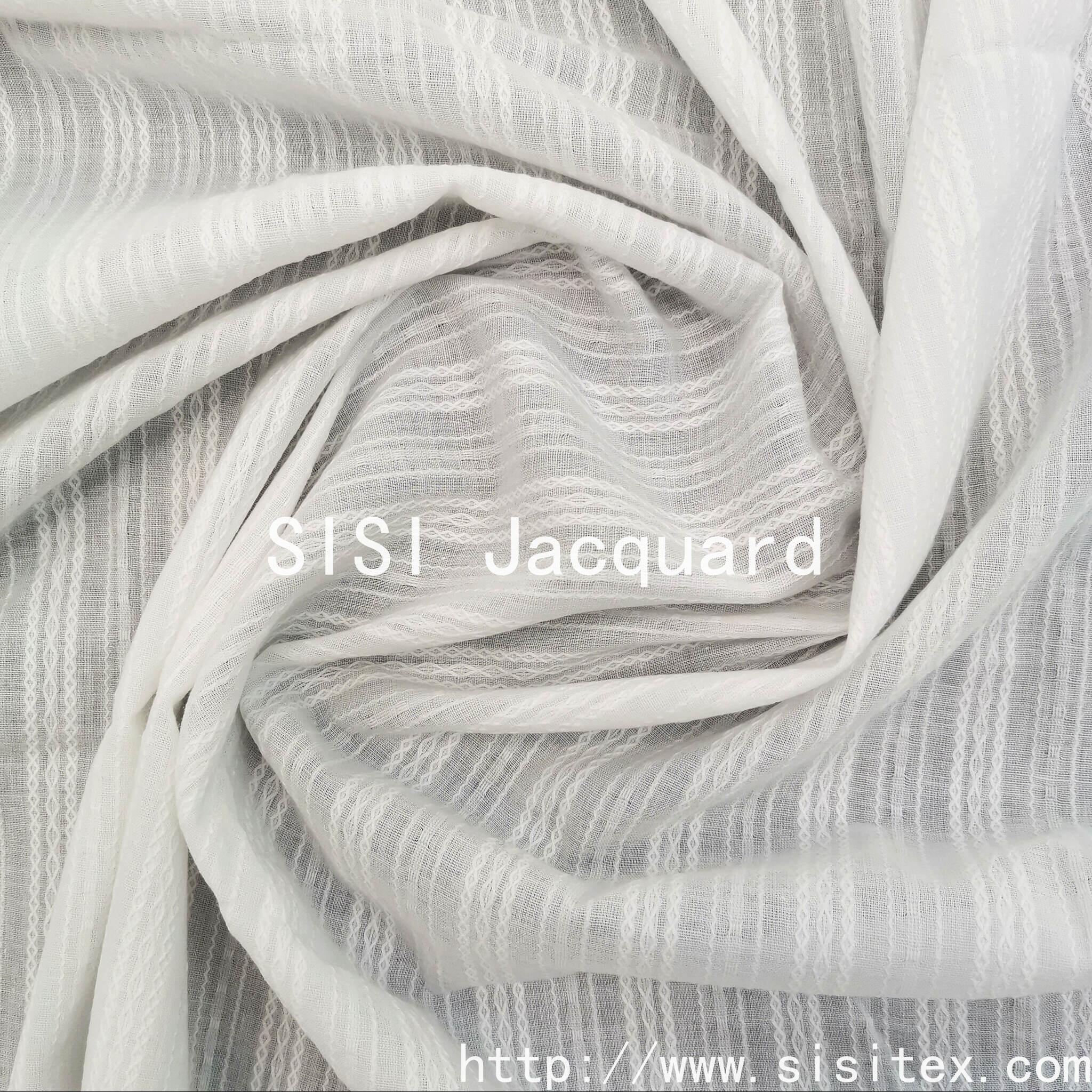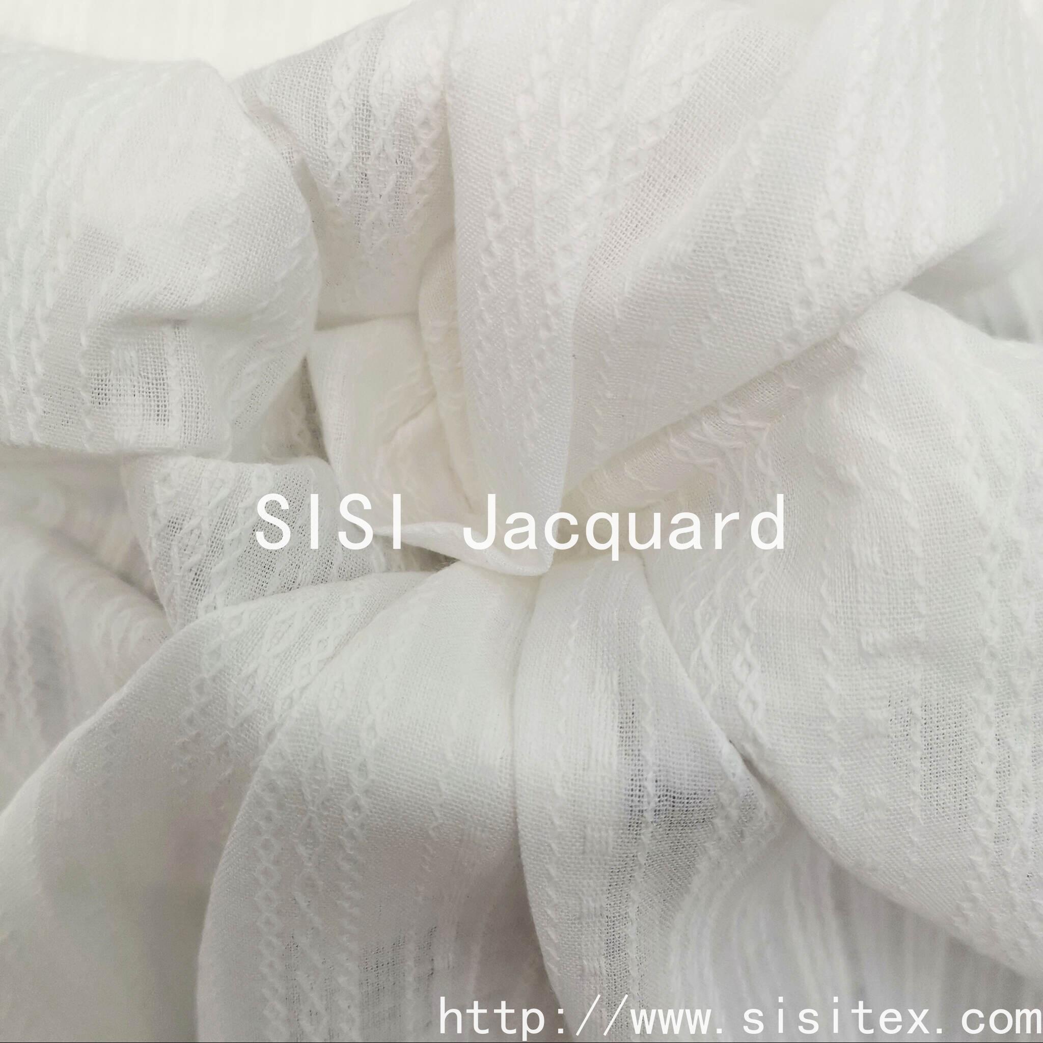 This spring and summer all-cotton gauze jacquard fabric is meticulously presented by Shaoxing Sisi Textile Products Co., LTD. (Salt Silk Jacquard). It is made from 100% high-quality combed cotton and woven by combining traditional gauze techniques with modern jacquard technology. The fabric features a unique perforated texture and three-dimensional jacquard pattern, with a light and fluffy texture. It has excellent breathability and moisture absorption and sweat-wicking properties, perfectly meeting the demand for freshness and comfort in spring and summer.