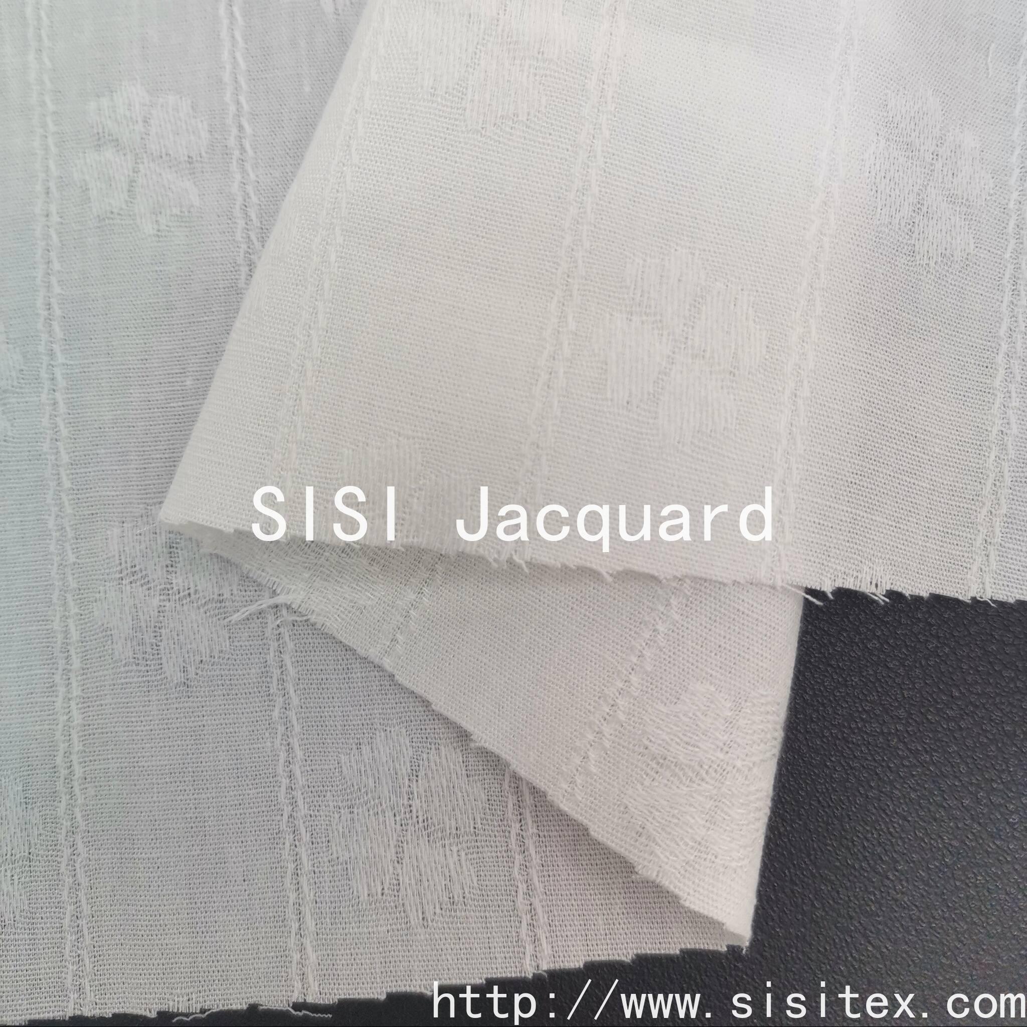 This product is made of woven cotton-spandex four-leaf clover jacquard fabric SS20008. It adheres to the golden ratio of 80% cotton and 20% rayon, meticulously crafted. The breathability of the cotton and the smoothness and drape of the polyester complement each other, resulting in an outstanding experience of softness, breathability, and fluidity on the body, providing gentle and comfortable care for the skin. The three-dimensional texture created by the jacquard technique offers a tangible and palpable texture, with greater depth and interest compared to flat prints, meeting the market's demand for high-quality and highly interactive fabrics.