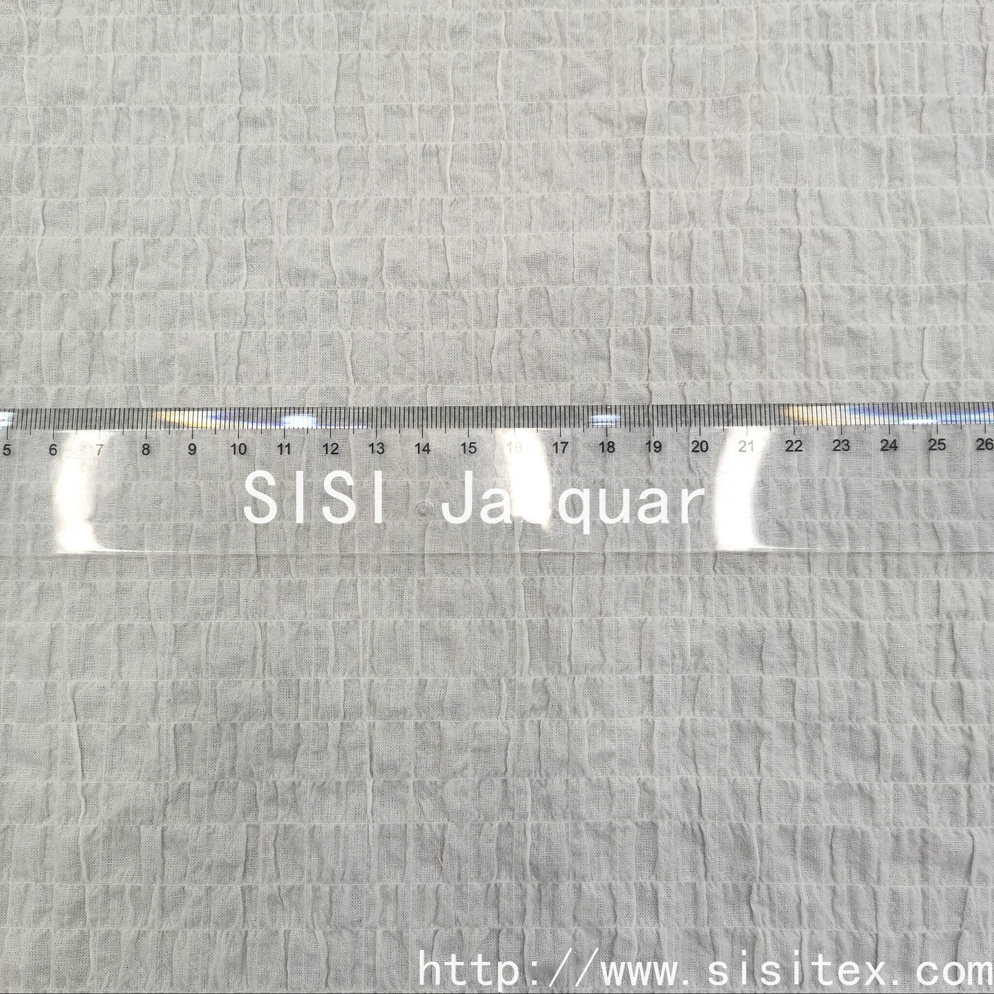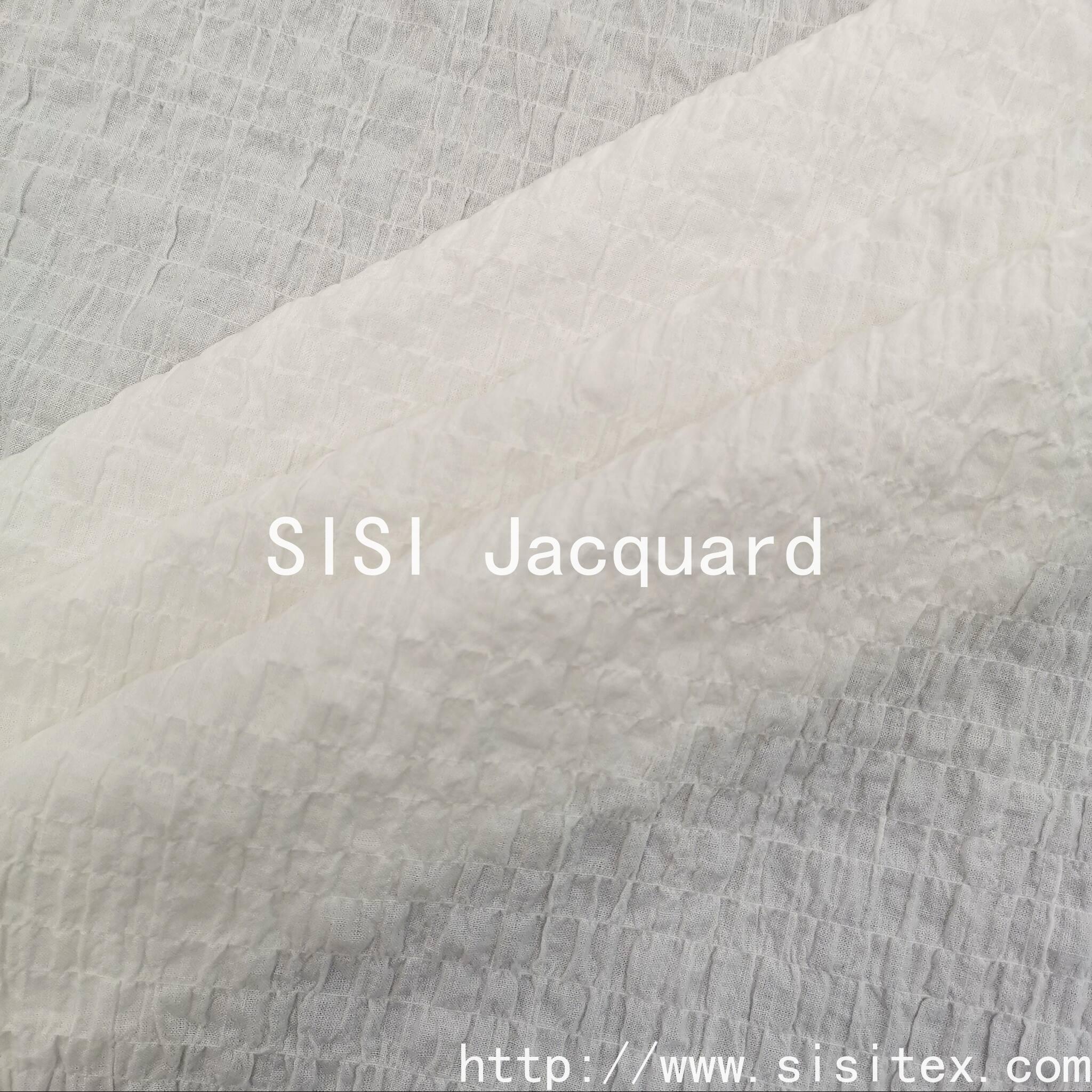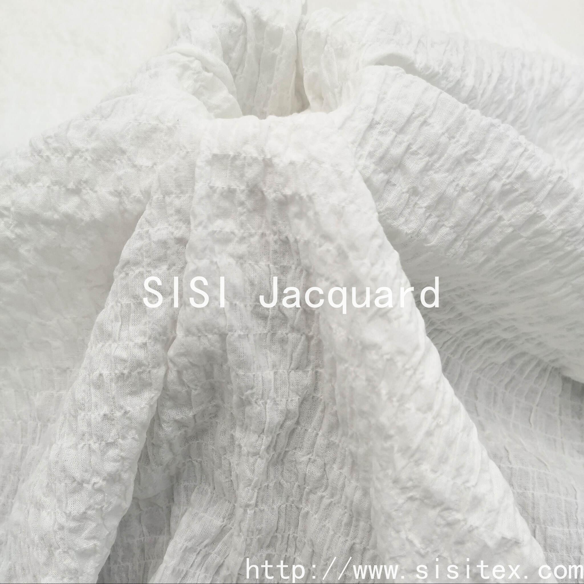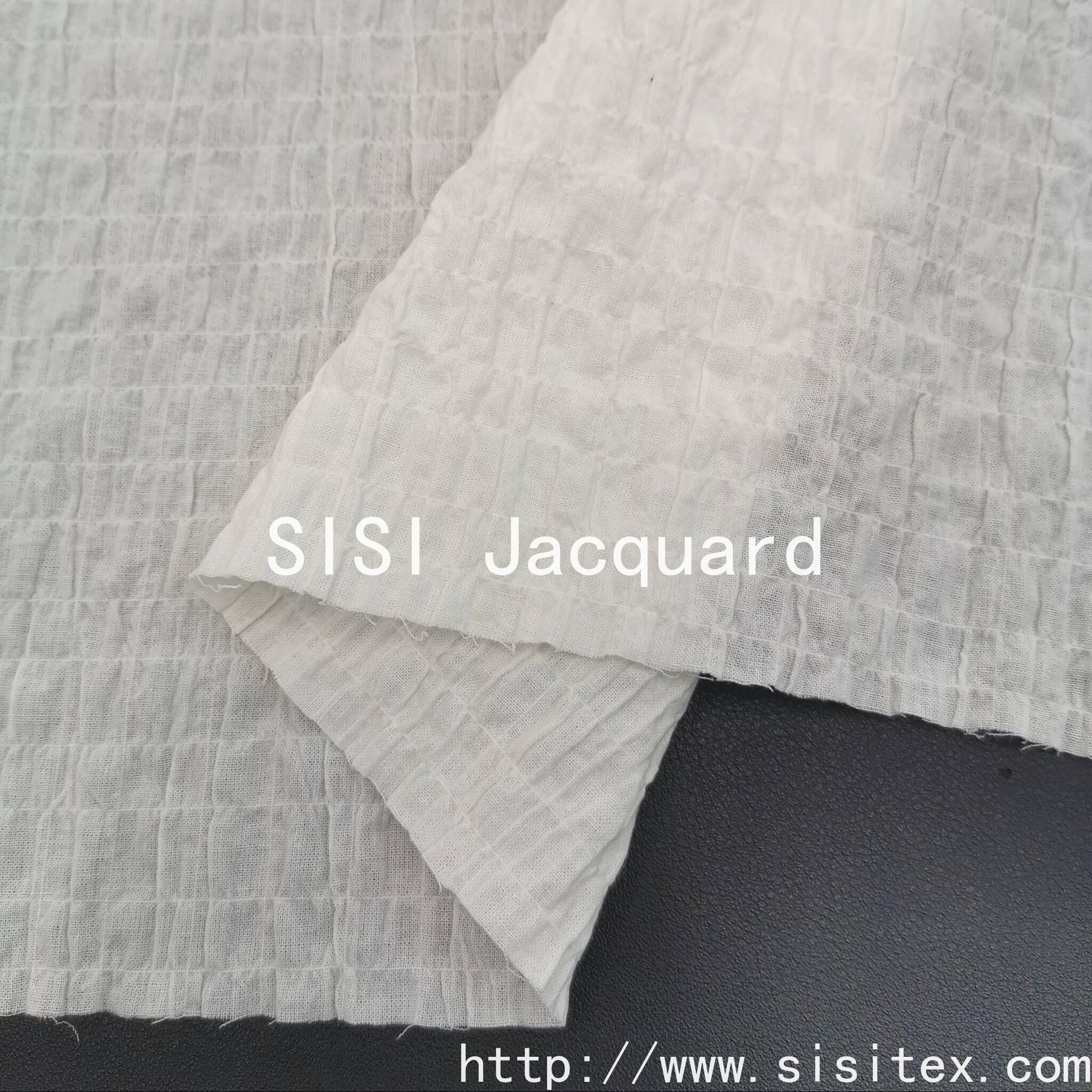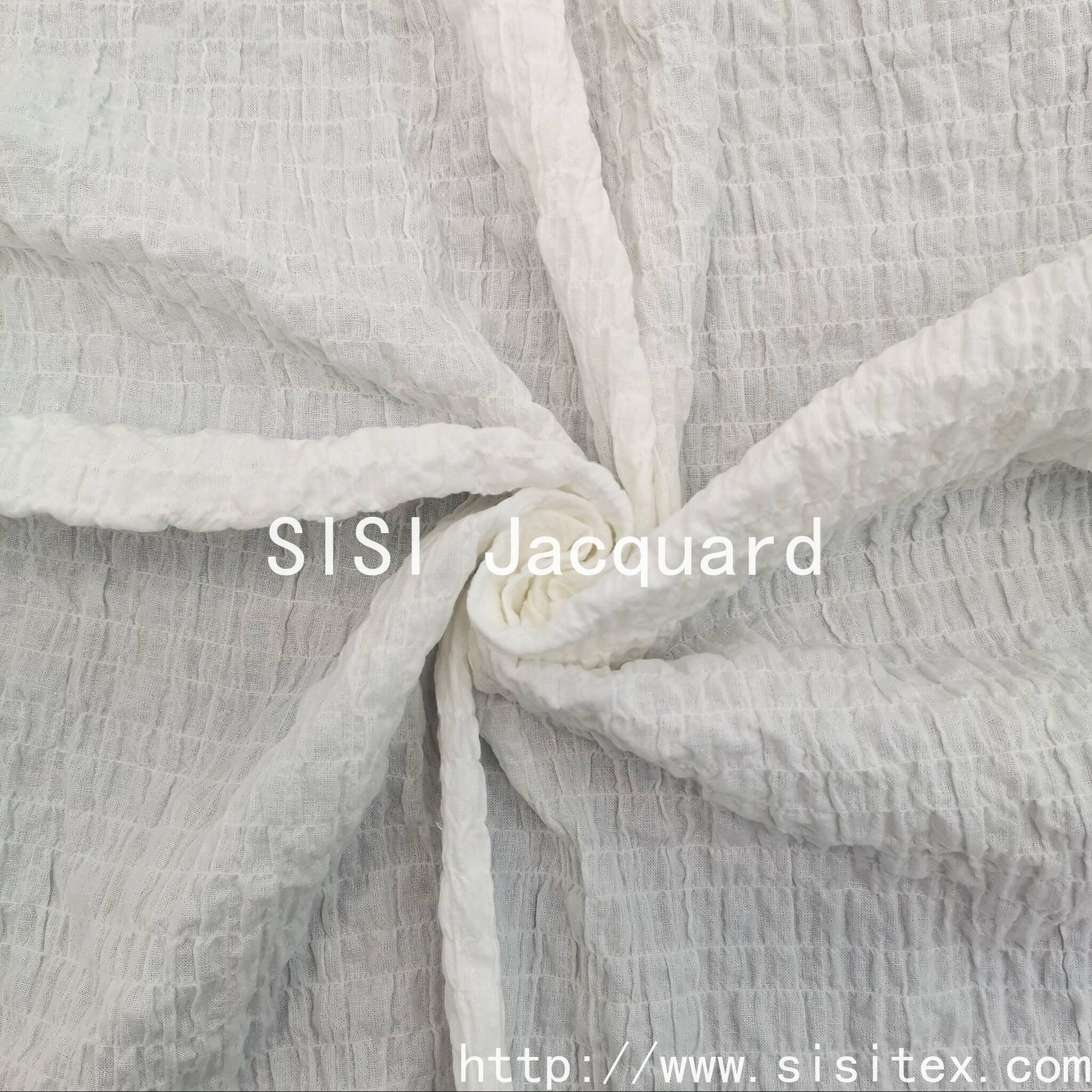 This product is made of 100% cotton elastic bubble jacquard fabric SS18248. Through precise jacquard weaving technology, a regular and three-dimensional bubble pattern is created on the fabric. Each small square is slightly raised, forming a charming texture of ups and downs. From a distance, it has a retro style, but when touched, it brings endless surprises. It offers a subtle depth of detail and high-quality texture that cannot be expressed in words. It pursues the ultimate wearing experience and is specially formulated with a scientific ratio of 97% high-quality cotton and 3% spandex. The high-quality long-staple cotton provides a cloud-like softness and breathability, while the trace amount of spandex acts like giving life to the fabric, providing just the right elasticity. Each piece of clothing can stretch freely with the body, eliminating tightness and constraints.