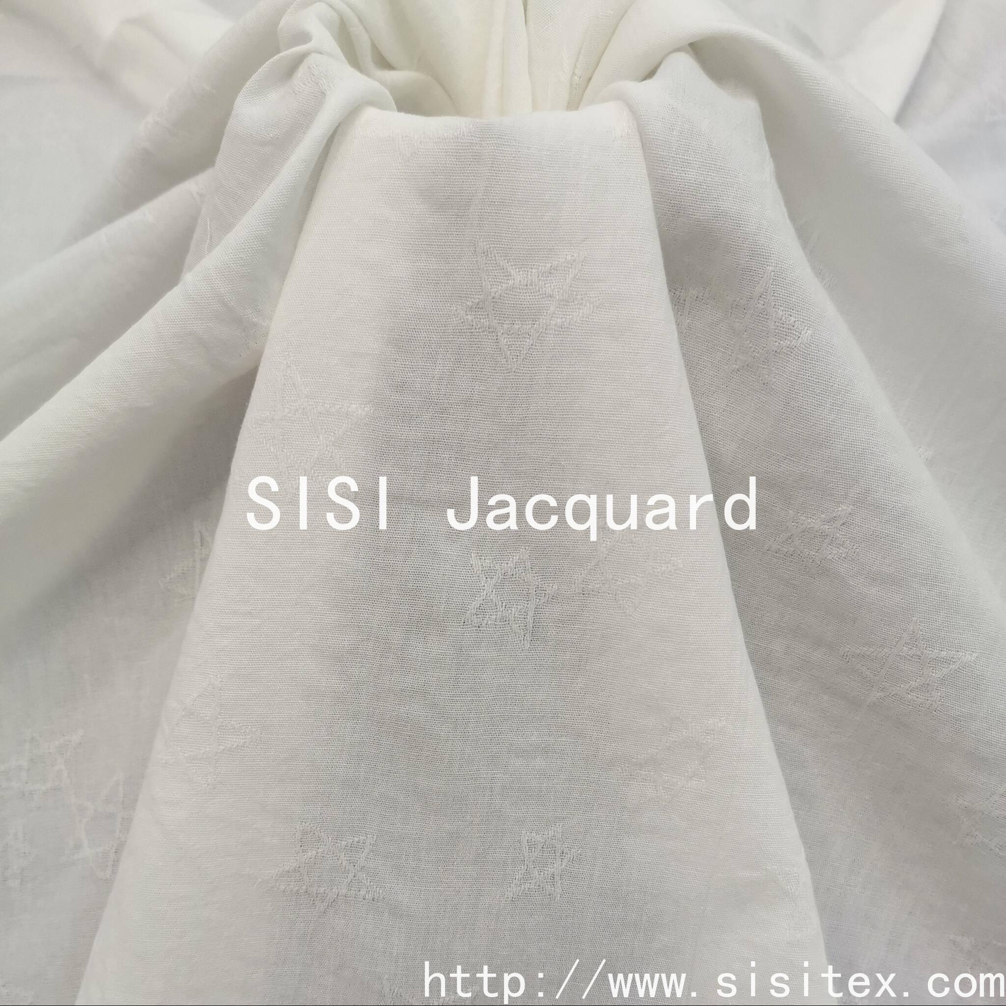 This product is the woven cotton-spandex five-pointed star jacquard fabric SS20010, with a classic ratio of 80% cotton and 20% rayon. It has continuously dominated the market by maintaining the breathability and skin-friendliness of cotton while incorporating the smoothness and drape of rayon. It is the gold standard for creating comfortable daily wear. It is a successful neutral design element that perfectly meets the demands of the gender-neutral style and the children's clothing market. The small and dense star-shaped jacquard creates uniform raised and recessed textures on the fabric surface. This three-dimensional effect achieved through weaving has a higher quality and tactile appeal compared to flat prints, catering to consumers' ultimate pursuit of "the beauty of details".