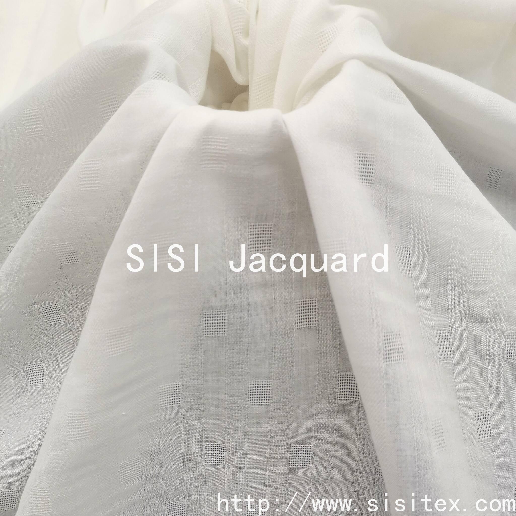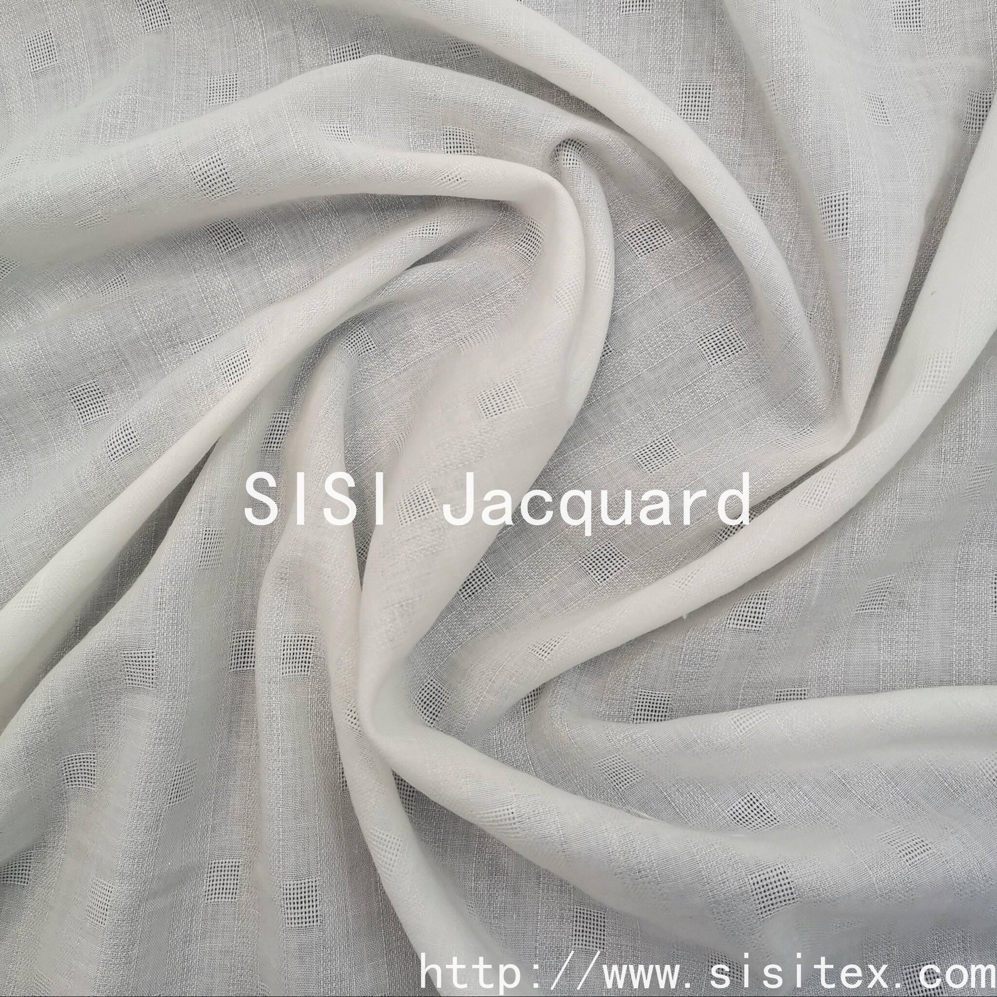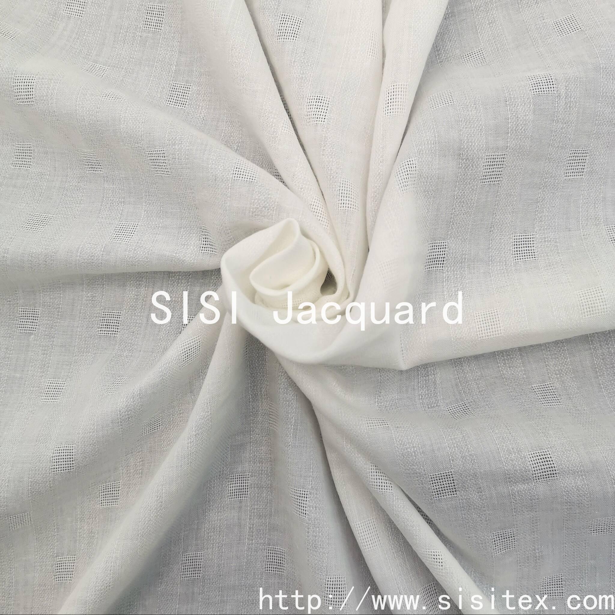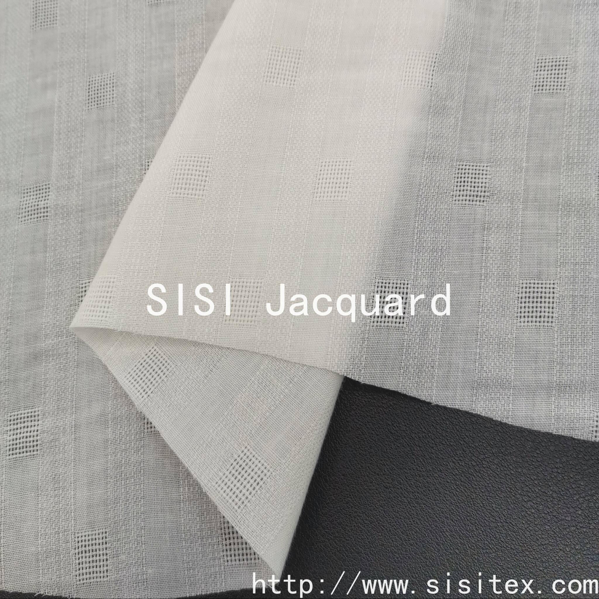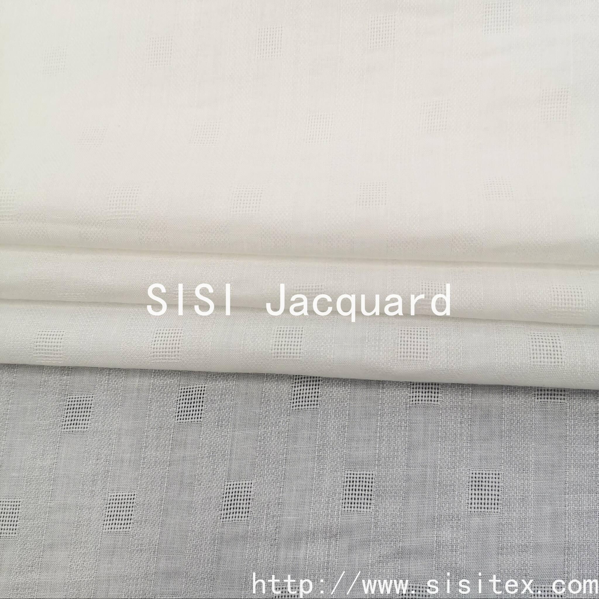 This product is a woven polyester-cotton vertical stripe block jacquard fabric. It is made with a classic ratio of 35% cotton and 65% polyester, combining the comfort of cotton with the toughness of polyester. The fabric surface is created through a three-dimensional jacquard process, featuring regular vertical stripes and block patterns. The texture is clear, the feel is smooth, and the visual effect has a sense of depth. It is suitable for making shirts, dresses, home textiles and other products. Not only is it comfortable to wear, but it is also easy to maintain and keeps its shape for a long time. Whether it is used to create casual daily outfits or to create a home artistic atmosphere, this fabric can provide a dual experience of texture and beauty.