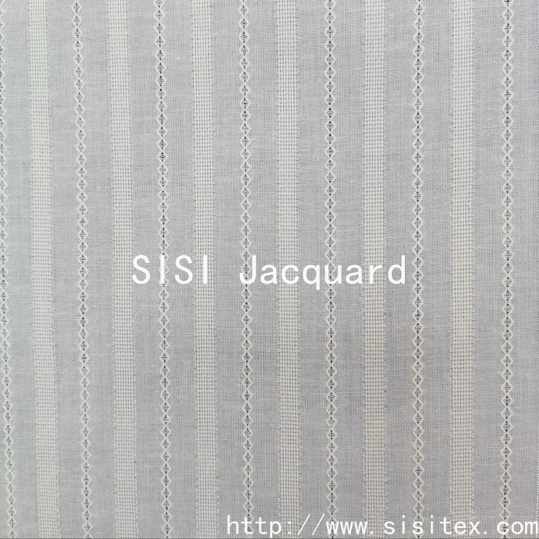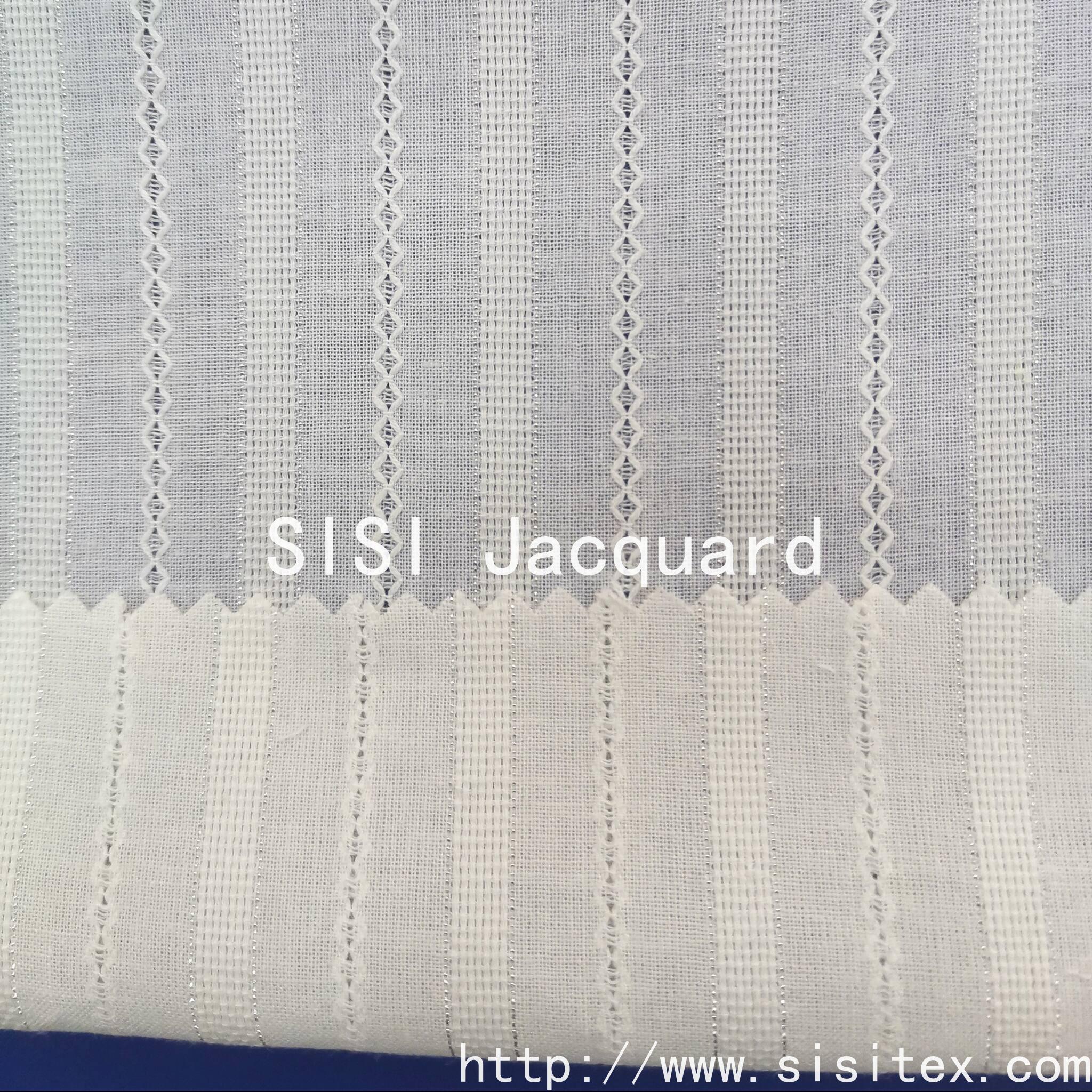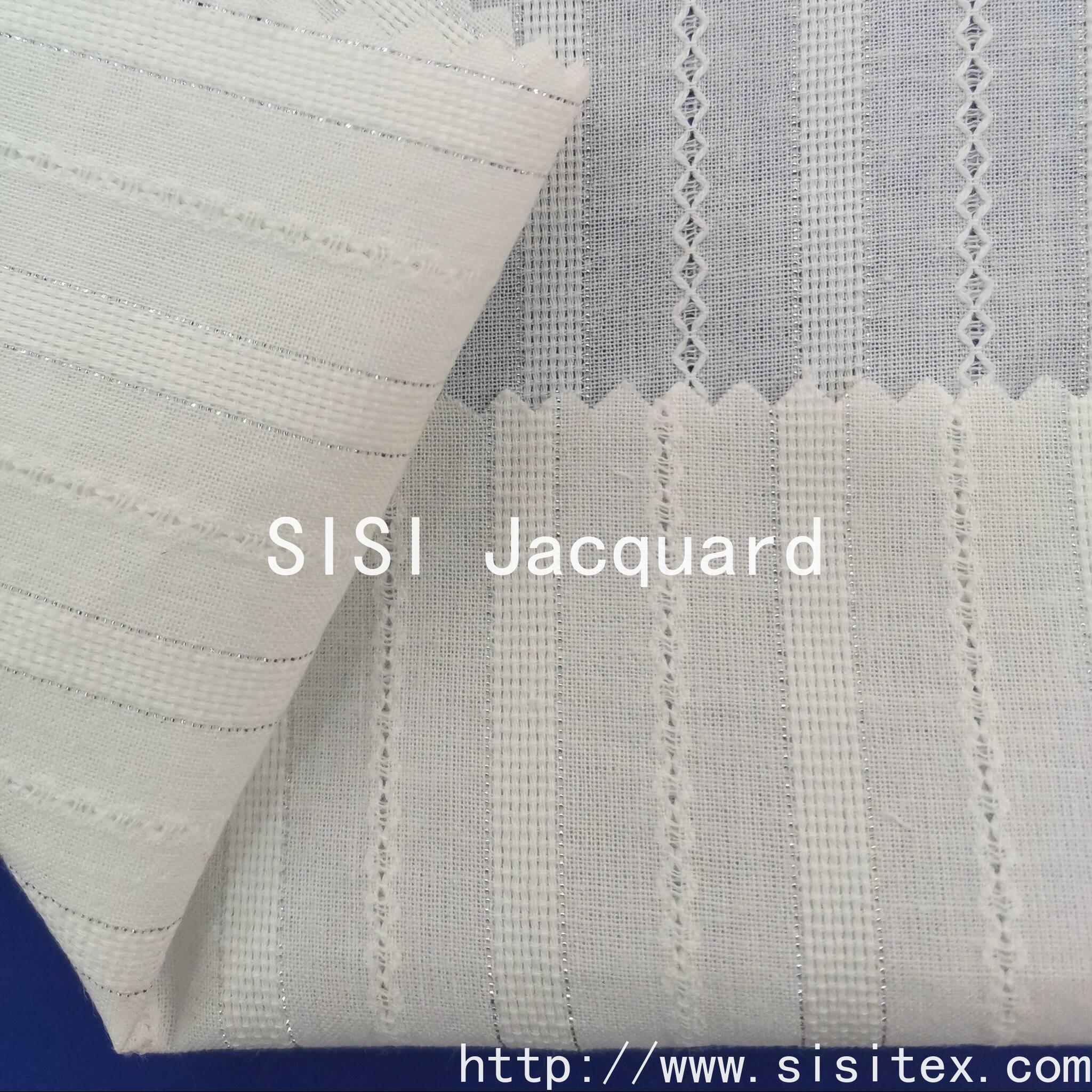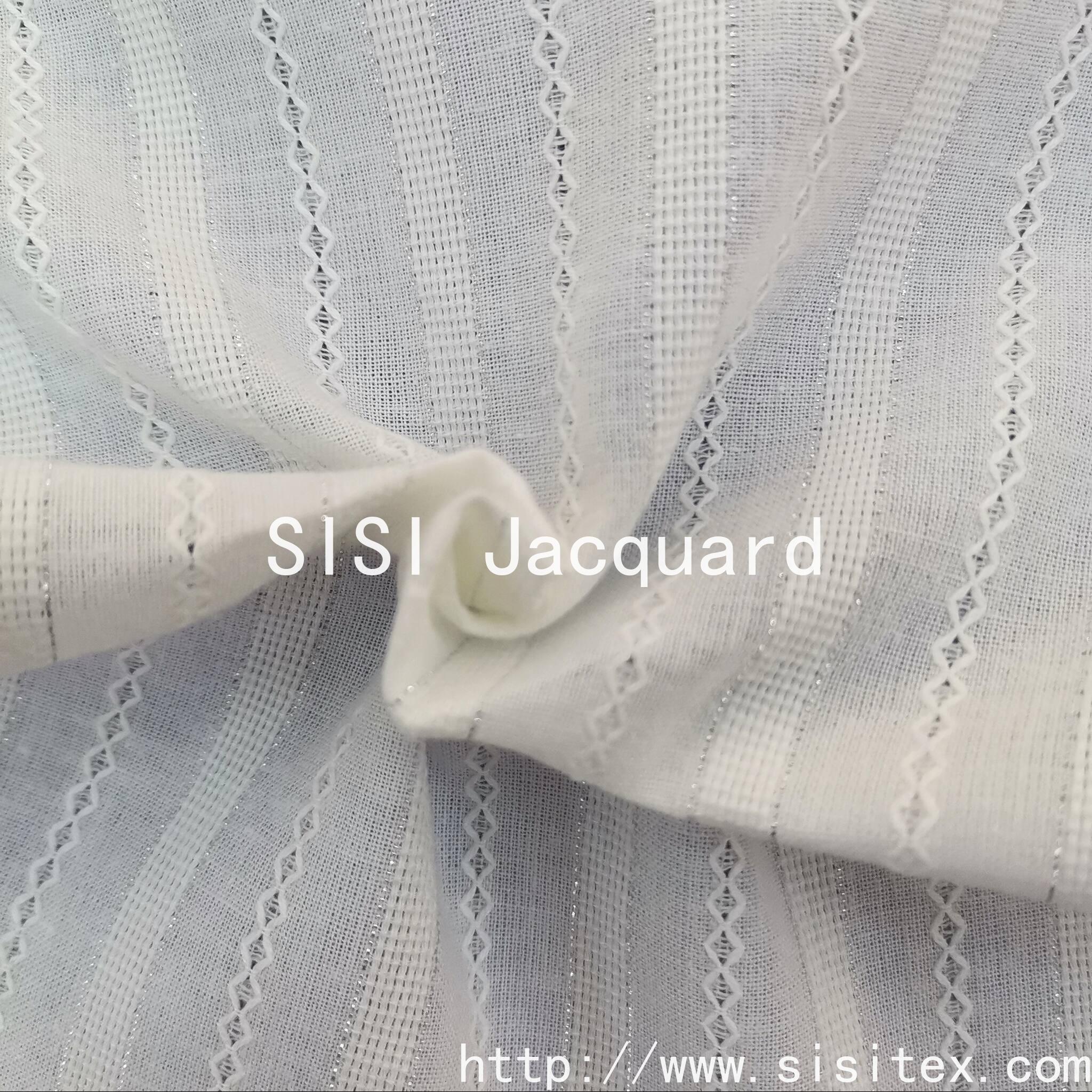This product is a woven cotton silk-halter fabric that combines traditional wisdom with modern aesthetics. It is made from 100% high-quality cotton and is woven using the ancient silk-halter technique to create unique transparent patterns, like moonlight filtering through a bamboo forest, creating a hazy and transparent visual beauty. On the surface of the fabric, the exquisite jacquard patterns interweave with the fine glittering silver threads. The silver threads are not just on the surface but are ingeniously woven into the yarn, with a soft and restrained luster that only flows during movement, highlighting a subtle yet luxurious style. In terms of touch, it retains the softness and skin-friendliness of pure cotton while bringing a three-dimensional texture and unparalleled breathability through the jacquard and silk-halter structure. Whether used to make a new Chinese-style shirt full of Eastern philosophy or a light and romantic vacation dress, this fabric has a unique structure, delicate luster, and exquisite craftsmanship.