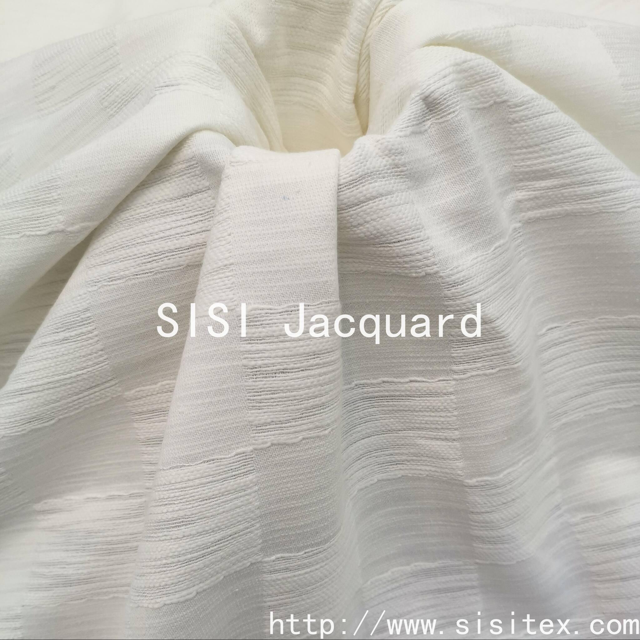 This product is a cotton-rayon-linen bamboo-strip pattern jacquard fabric SS20030. It is made with a scientific ratio of 70% cotton, 20% rayon and 10% linen. Through the bamboo-strip weaving technique and jacquard weaving, it injects irregular natural textures into the classic pattern. The unique irregular texture created by the bamboo-strip weaving technique resonates with the "Wabi-Sabi aesthetics" that emphasizes nature and imperfection, and is highly favored by consumers who value the quality of life. The blend of cotton, rayon and linen ensures comfort, drape and eco-friendly properties, meeting the dual demands of the modern market for environmentalism and slow living.