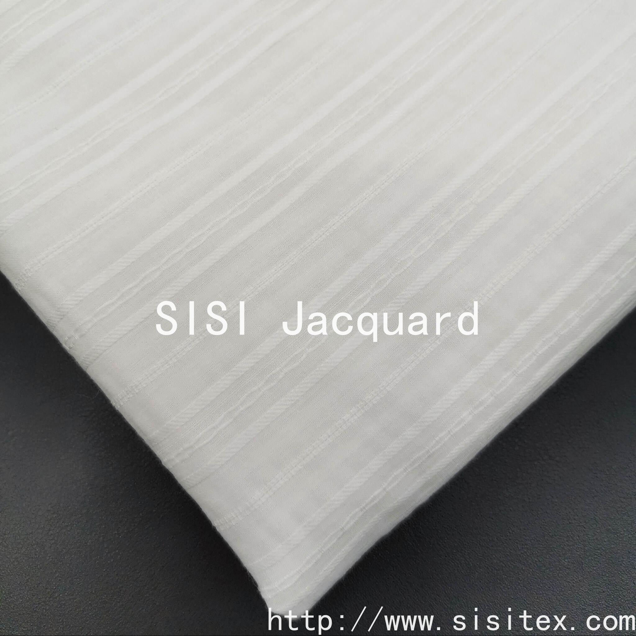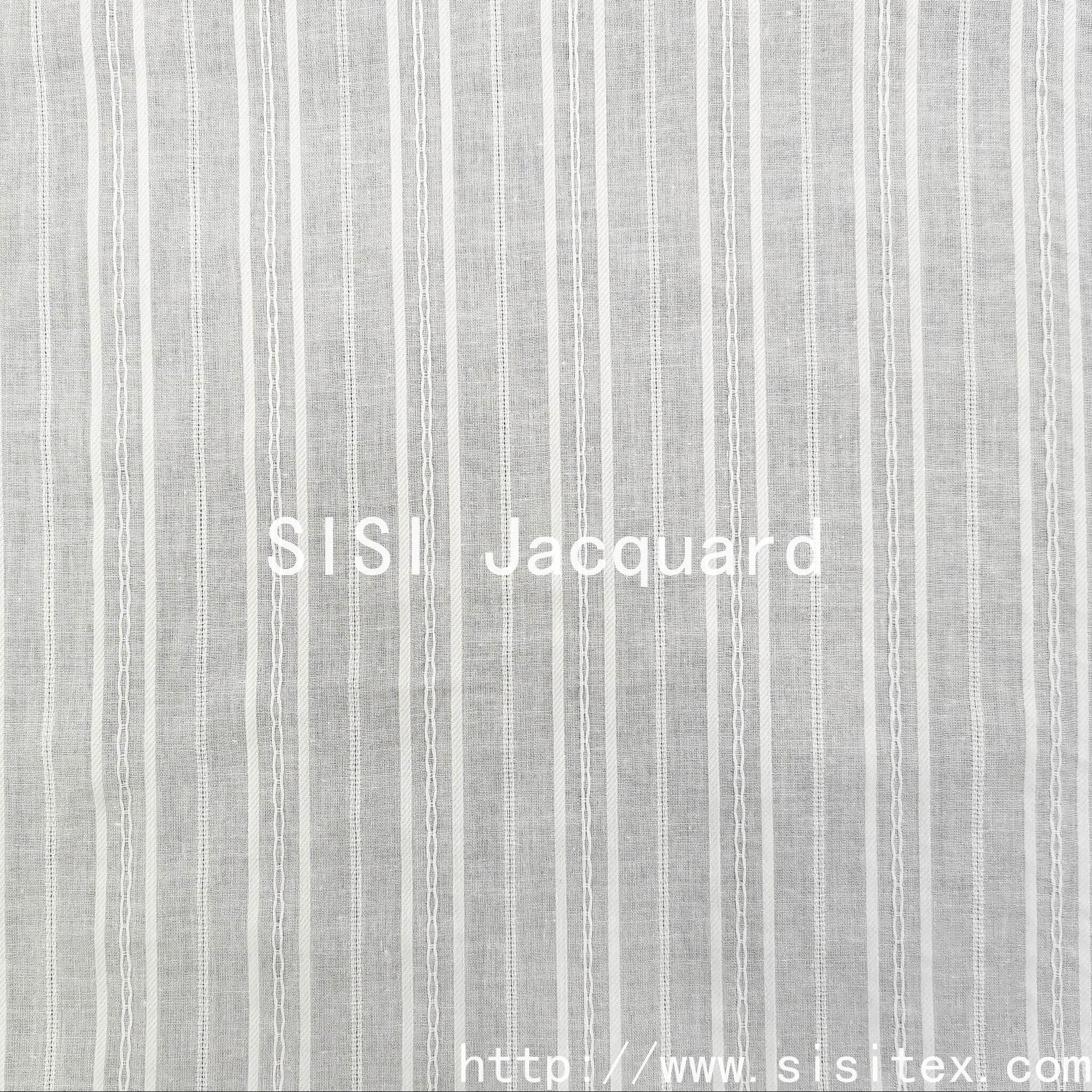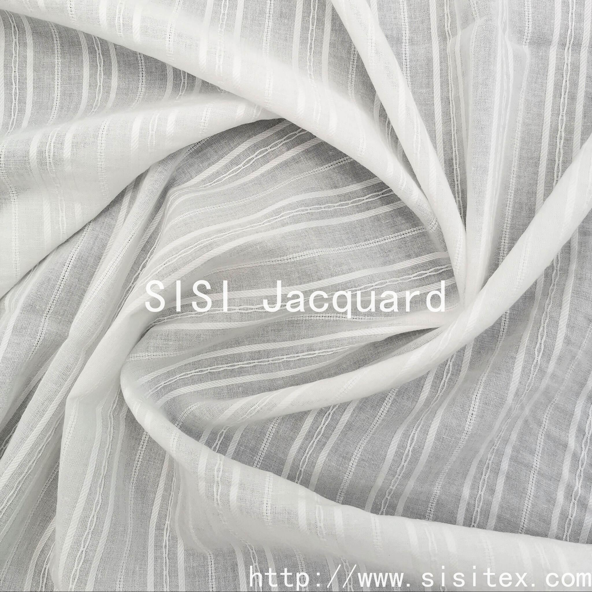 "Silk Jacquard" all-cotton striped gauze fabric is woven from high-quality cotton yarn. The classic vertical stripes blend with the perforated gauze structure, making it light, breathable and having a distinct texture. The fabric has a smooth touch and excellent drape. When made into clothing, it is flowing and refreshing. When used in home decoration, it creates a transparent light and shadow effect. Whether cut into a summer dress or used as a curtain to embellish the space, this fabric can infuse a touch of simple yet not simplistic aesthetic style into life with its natural texture and detailed design.