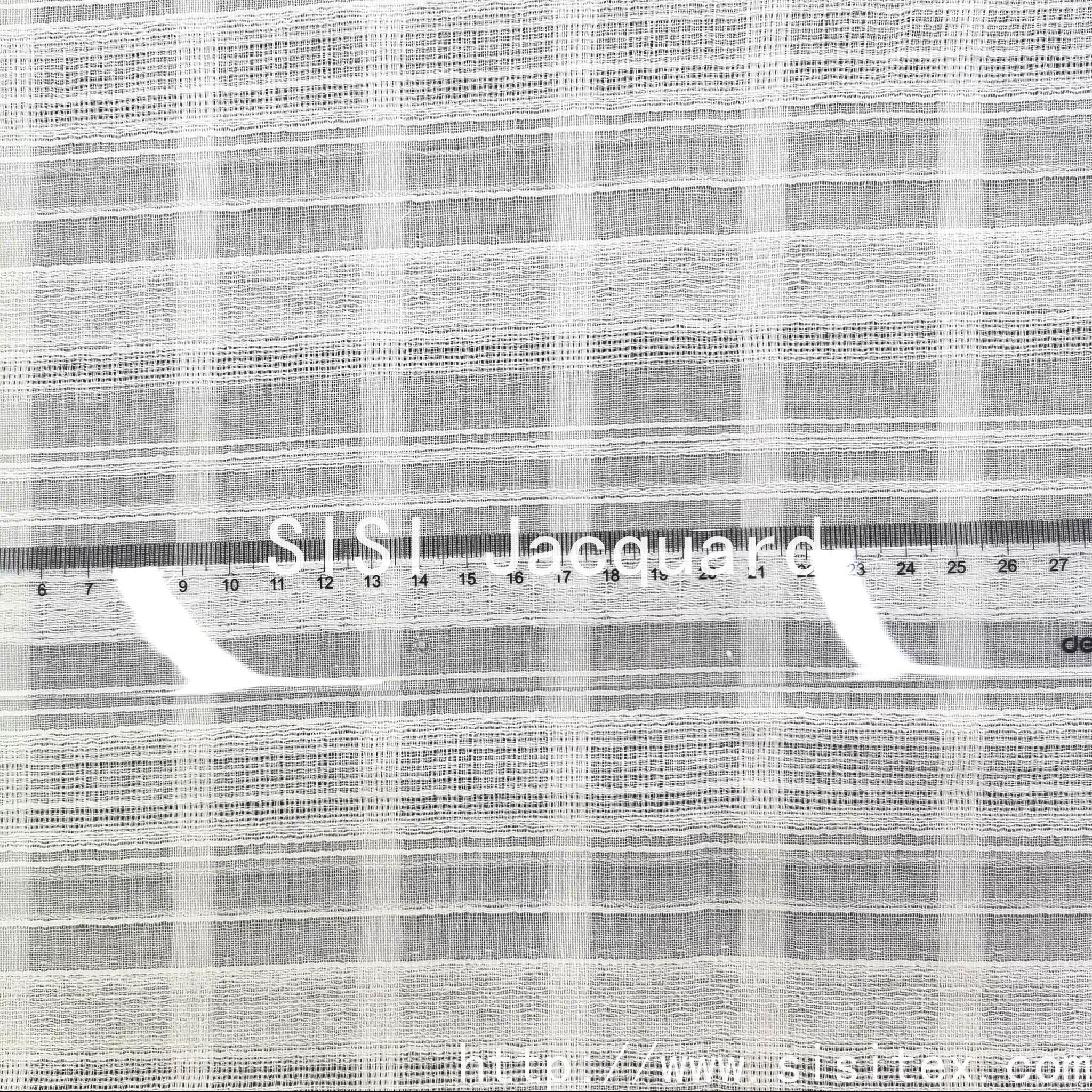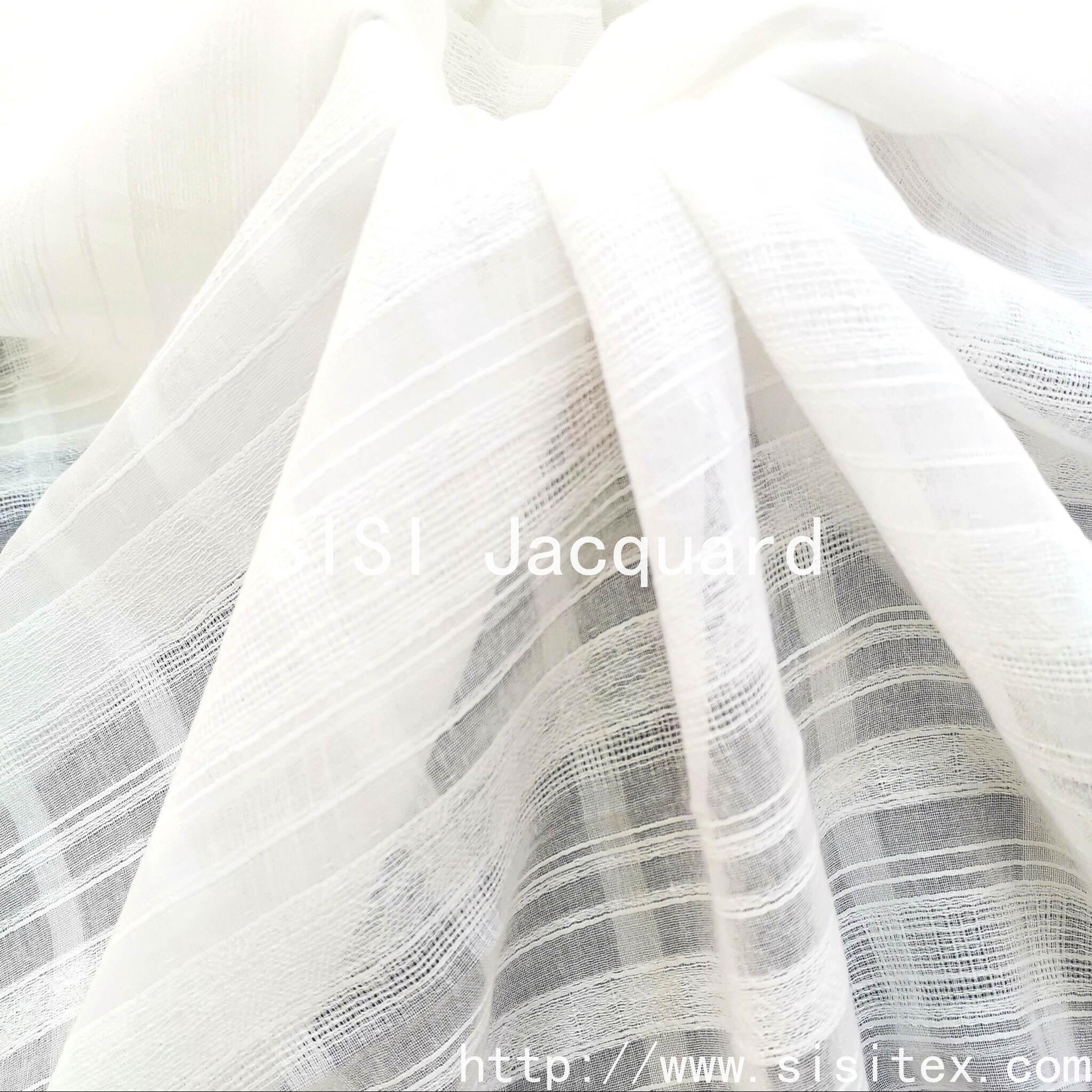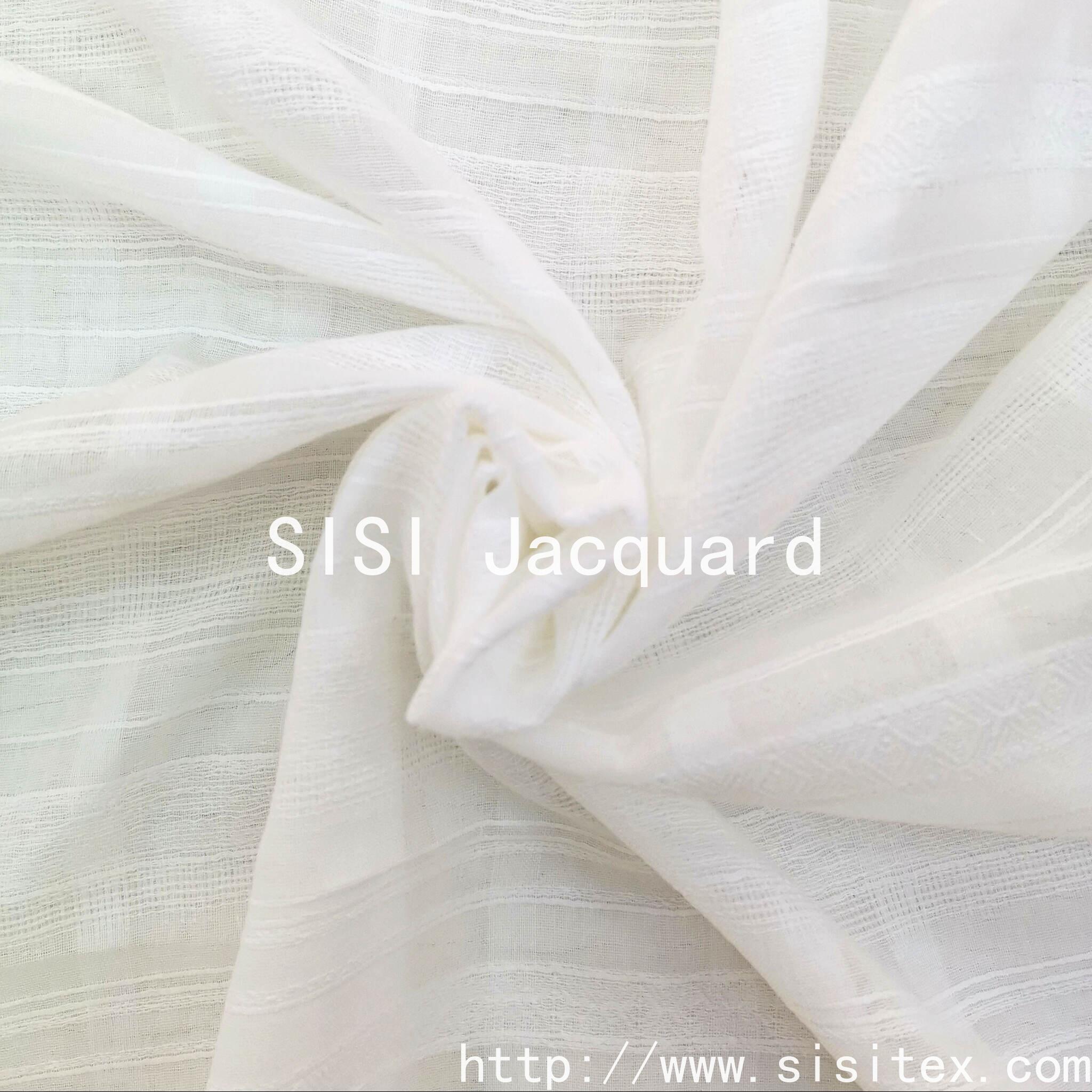 This product is a unique and ingenious cotton twill mesh jacquard fabric. It is made from 100% cotton and is woven through a meticulous jacquard process, creating soft horizontal textures running throughout the fabric and exquisite regular mesh patterns. The fabric not only retains the natural attributes of pure cotton, being soft and skin-friendly, but also gains an ultimate breathable wearing experience due to its unique mesh structure. It feels like breathing skin. The interweaving of the twill texture and the mesh holes creates rich light and shadow layers. As the body moves or the angle of the light changes, it presents a dynamic visual art. Whether used to make a light and flowing summer blouse, a romantic vacation dress, or as a transparent window curtain at home, this fabric can bring a refreshing and elegant aesthetic enjoyment with its unique transparency, artistic texture and cotton comfort.