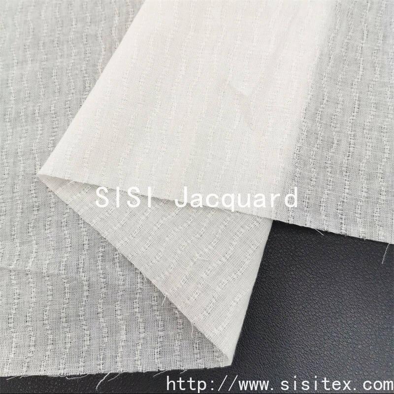 "Silk Jacquard" pure cotton wavy vertical jacquard fabric is woven with high-quality cotton yarn and exquisite jacquard techniques. The texture is clear and three-dimensional, and the touch is soft and comfortable. The flowing wavy pattern is ingeniously combined with vertical stripes, which not only creates a visually extended slimming effect but also endows the fabric with a soft and rhythmic feel. Whether cut into a flowing dress or used as a home curtain, this fabric can add a unique charm of the blend of nature and art to your choice. Made of natural pure cotton, it is environmentally friendly and skin-friendly, suitable for you who pursue both quality and comfort.