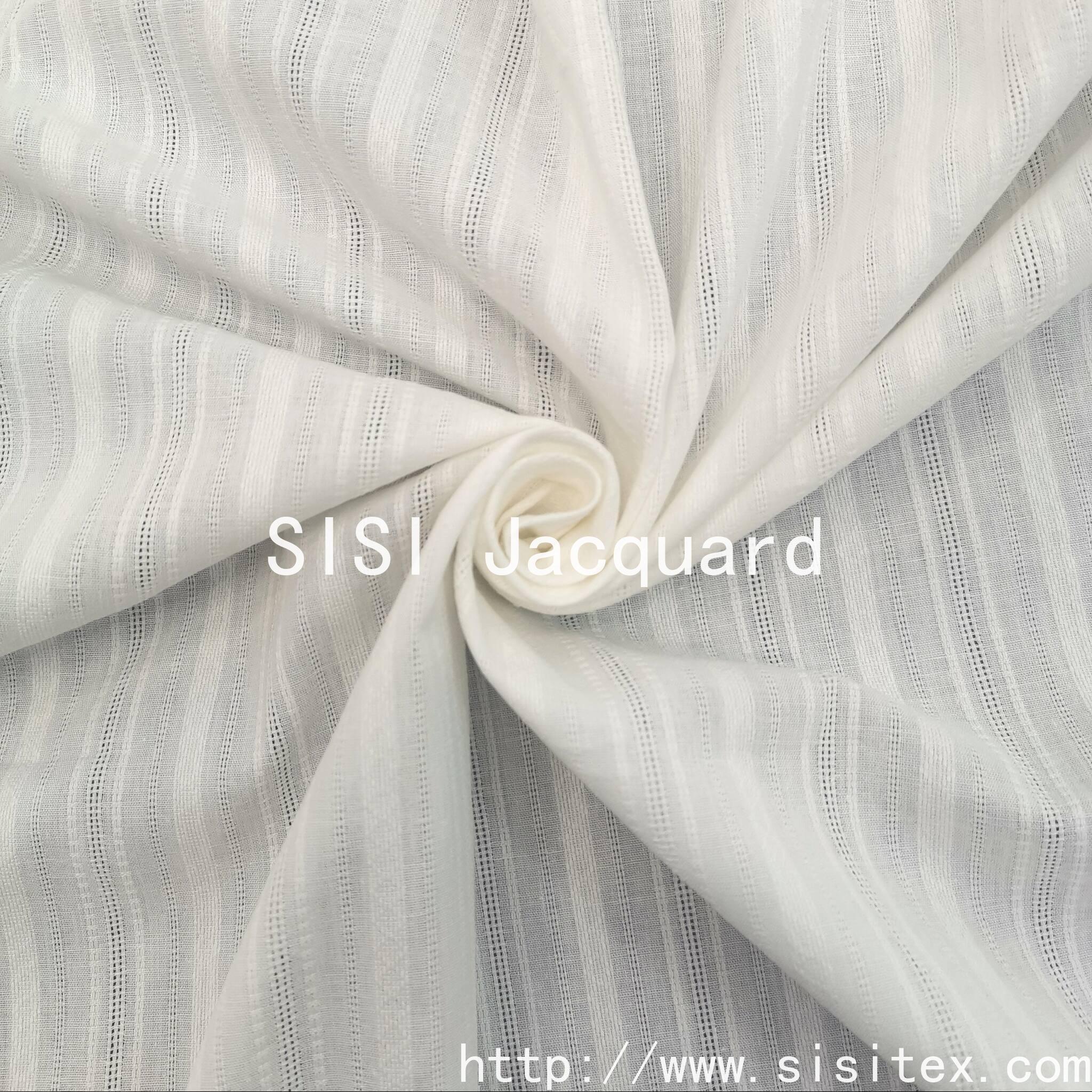 This 100% cotton vertical-striped jacquard fabric SS18290 is meticulously woven using traditional jacquard techniques and modern weaving technology. The fabric features a unique perforated structure that creates natural breathing holes within the orderly vertical stripes, maintaining the orderly aesthetic of the stripes while also providing exceptional breathability. The 100% cotton material ensures a soft and comfortable skin contact, and also has excellent moisture absorption and breathability. When light passes through the jacquard holes, it forms rich layers of light and shadow. This fabric can bring a pleasant surprise to those seeking a quality lifestyle with its unique structural aesthetics and natural comfort experience.