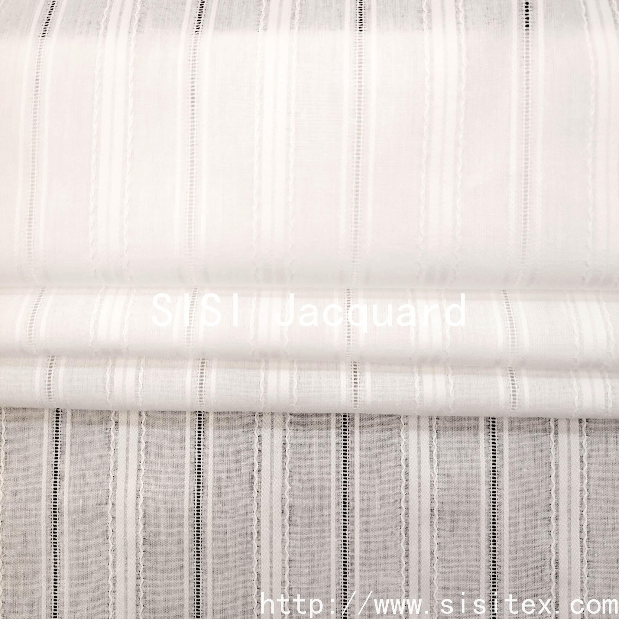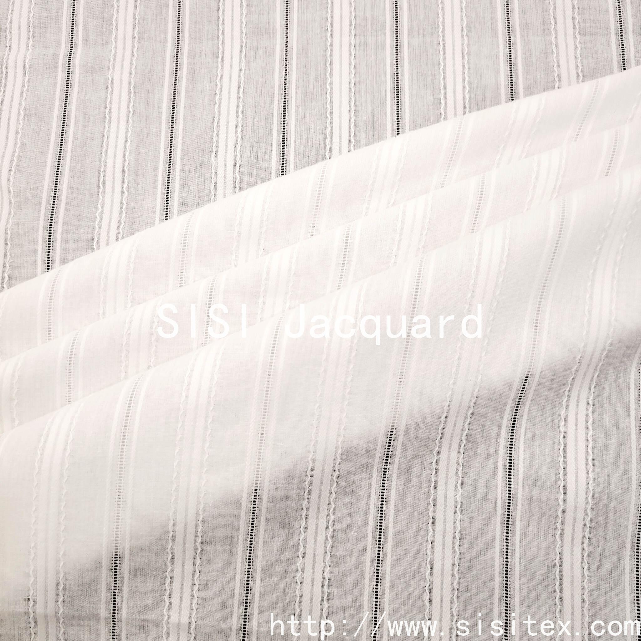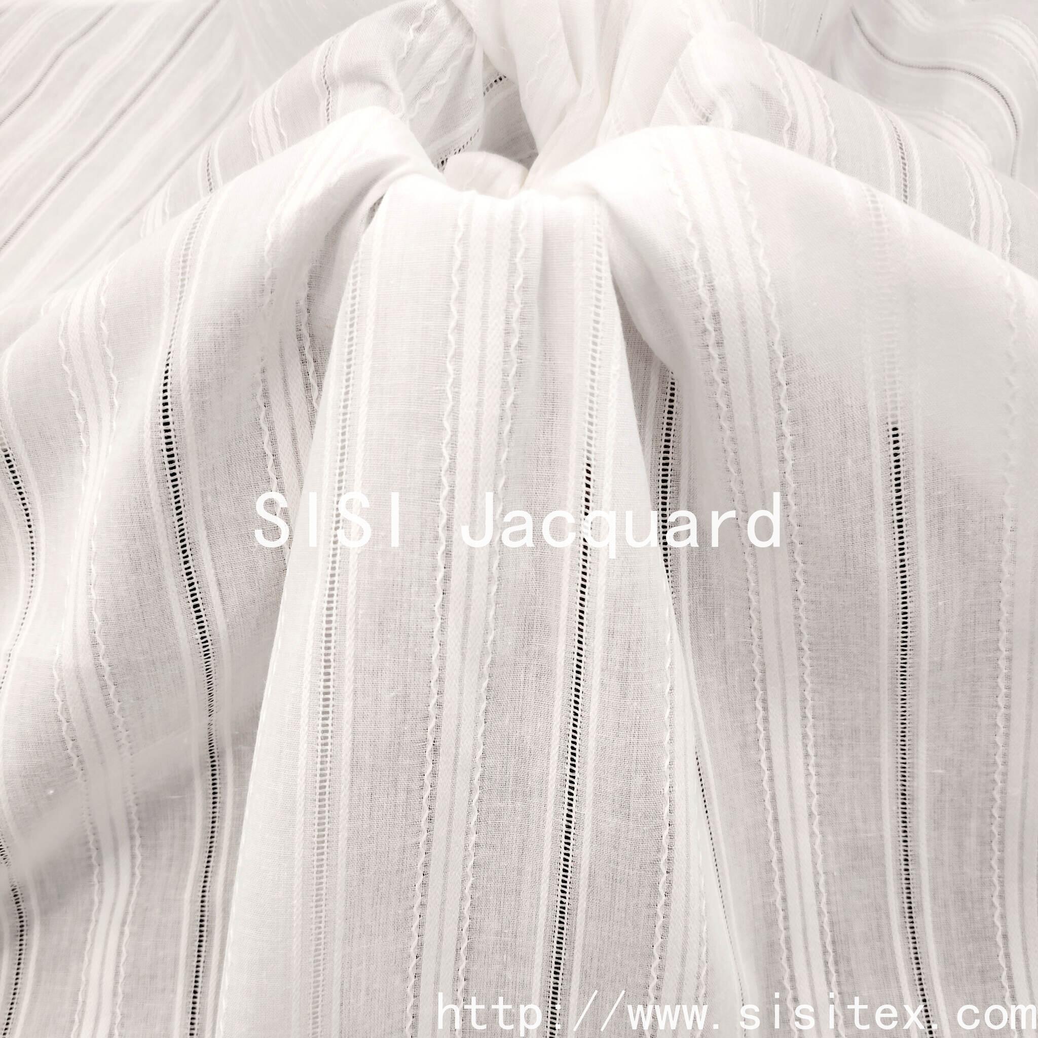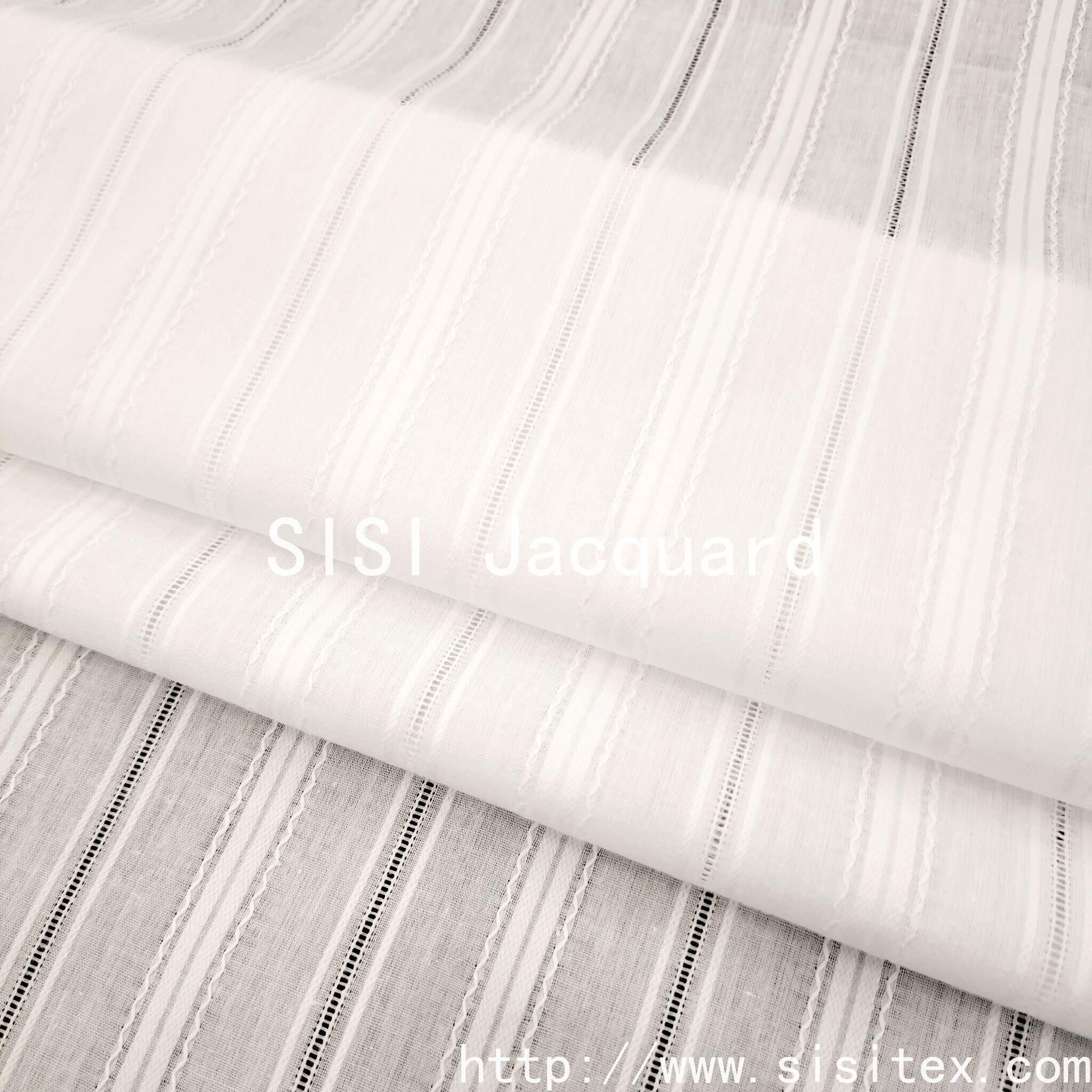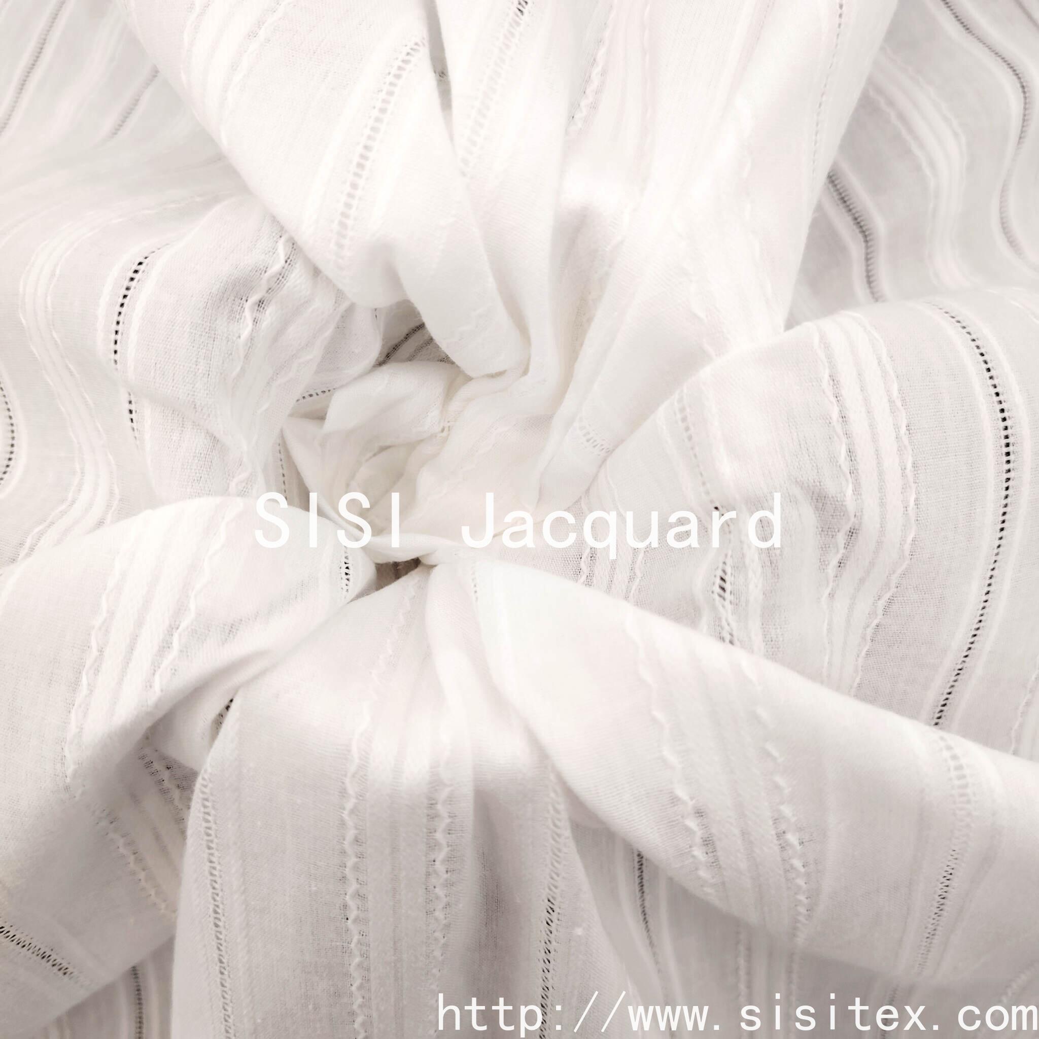 This product is a 100% cotton twill rosette mesh with openwork stripes SS18295. It is made using the ancient twill rosette weaving technique, which transforms 100% pure cotton into a unique openwork stripe texture. Each stripe serves as a passage for air and light, giving the fabric unparalleled breathability and a lightweight feel. The texture is dry, soft, clear and rhythmic. The formed openwork stripe structure not only brings a unique visual rhythm, but also endows the fabric with natural breathability and lightness, perfectly aligning with the modern lifestyle that pursues comfort, health and sustainability. Whether it is made into a flowing and breathable summer blouse or a set of home furnishings that interprets Eastern aesthetics, it can bring a perfect and enjoyable comfortable experience with its unique breathing sensation and pure natural texture.