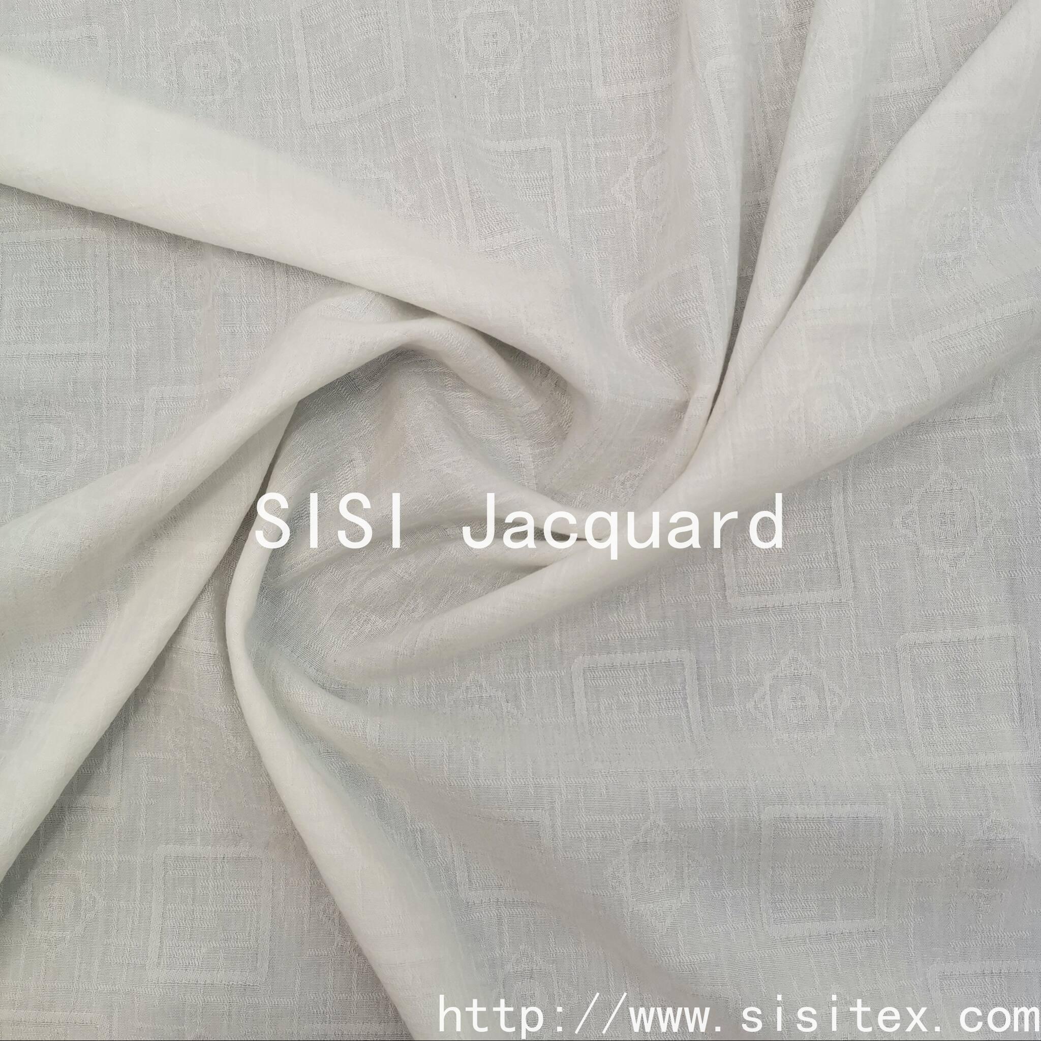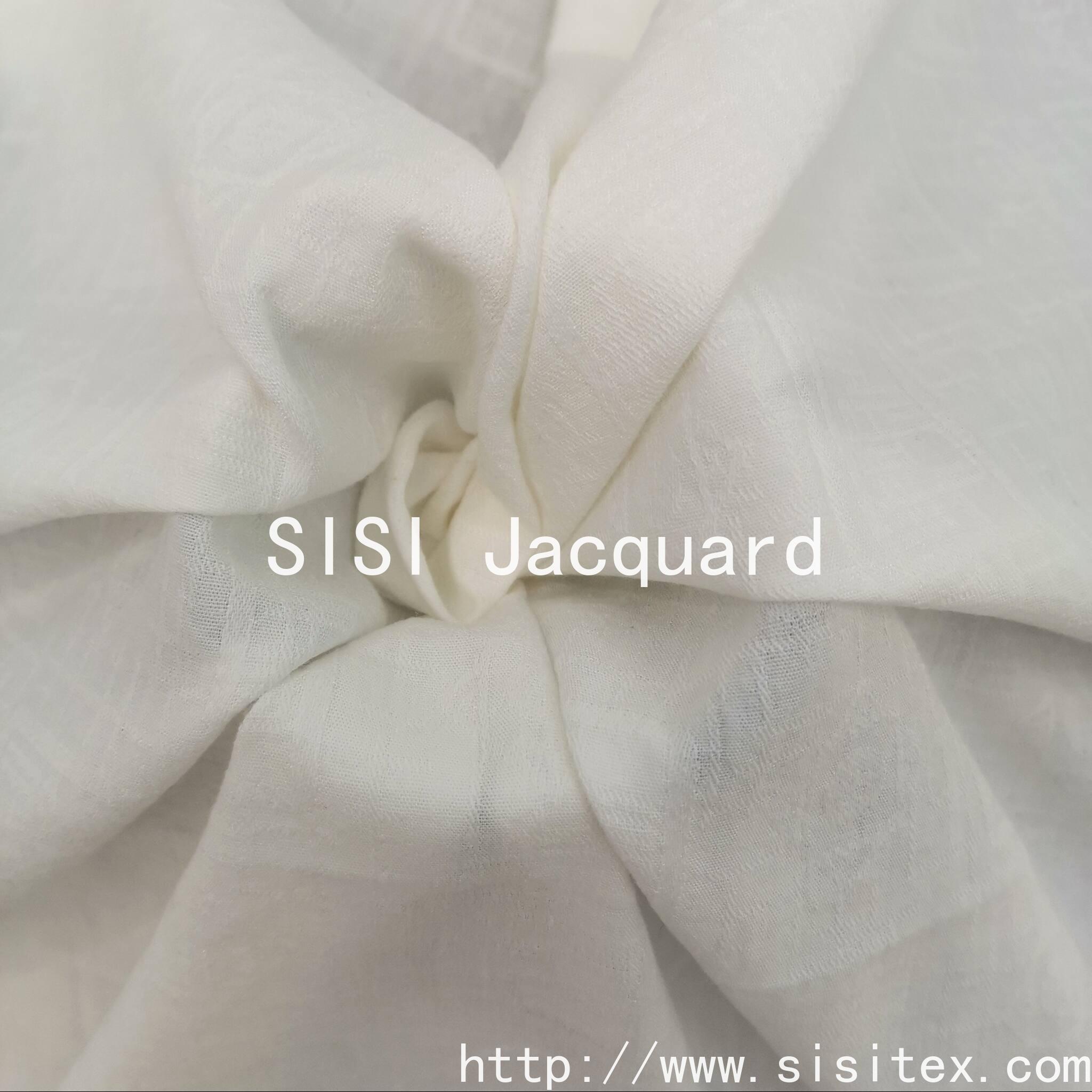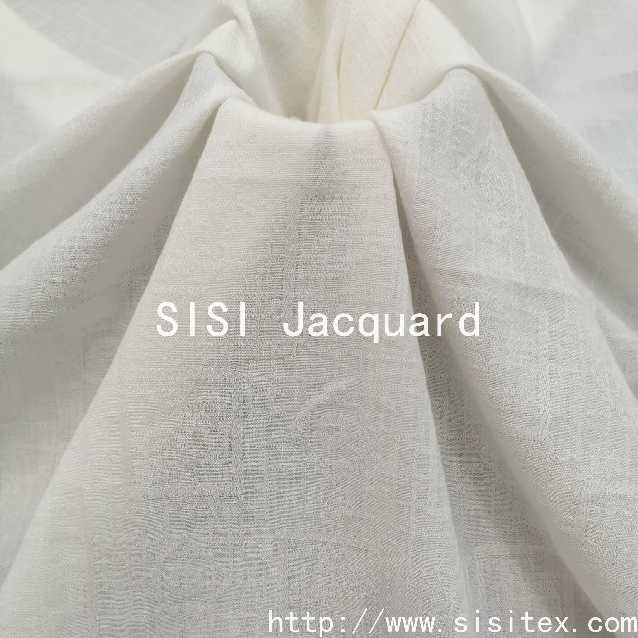 This product is made of cotton-rayon geometric jacquard fabric SS20057. It is composed of a scientific ratio of 80% cotton and 20% rayon. Through precise jacquard weaving technology, it creates a regular and clear geometric pattern. The fabric retains the unique skin-friendly and breathable characteristics of pure cotton while also incorporating the smooth texture and elegant drape of polyester, resulting in a high-quality fabric that combines comfort, style, and practicality. The clear geometric texture injects rich details and modernity into the simple design. Whether it is used to make a neat business shirt or a stylish casual pants, it can perfectly handle various occasions with its unique rational aesthetics and comfortable wearing experience, showcasing a low-key yet sophisticated taste.