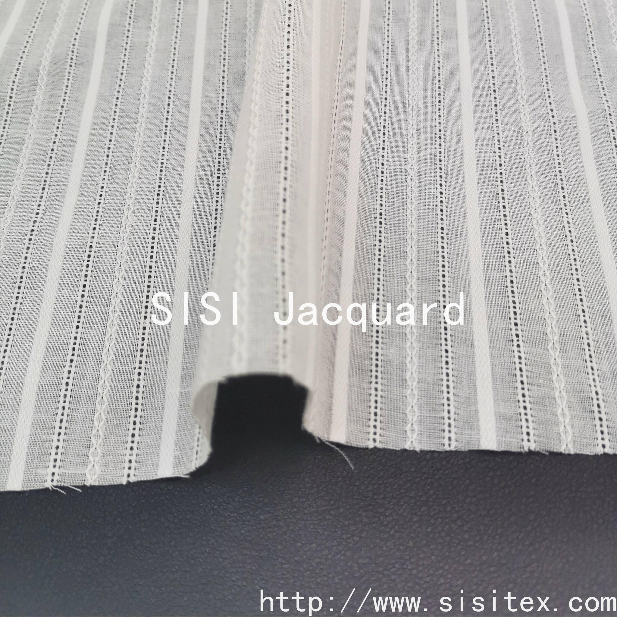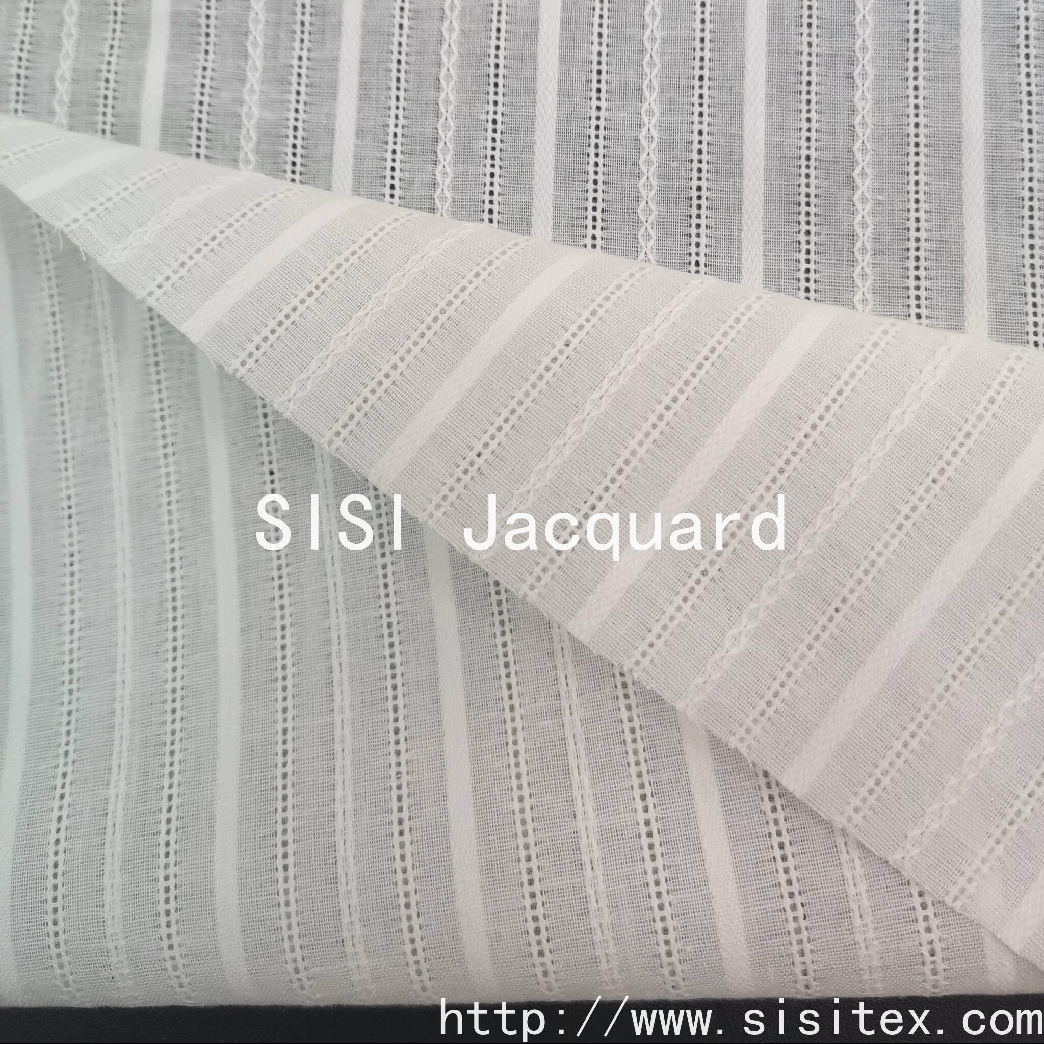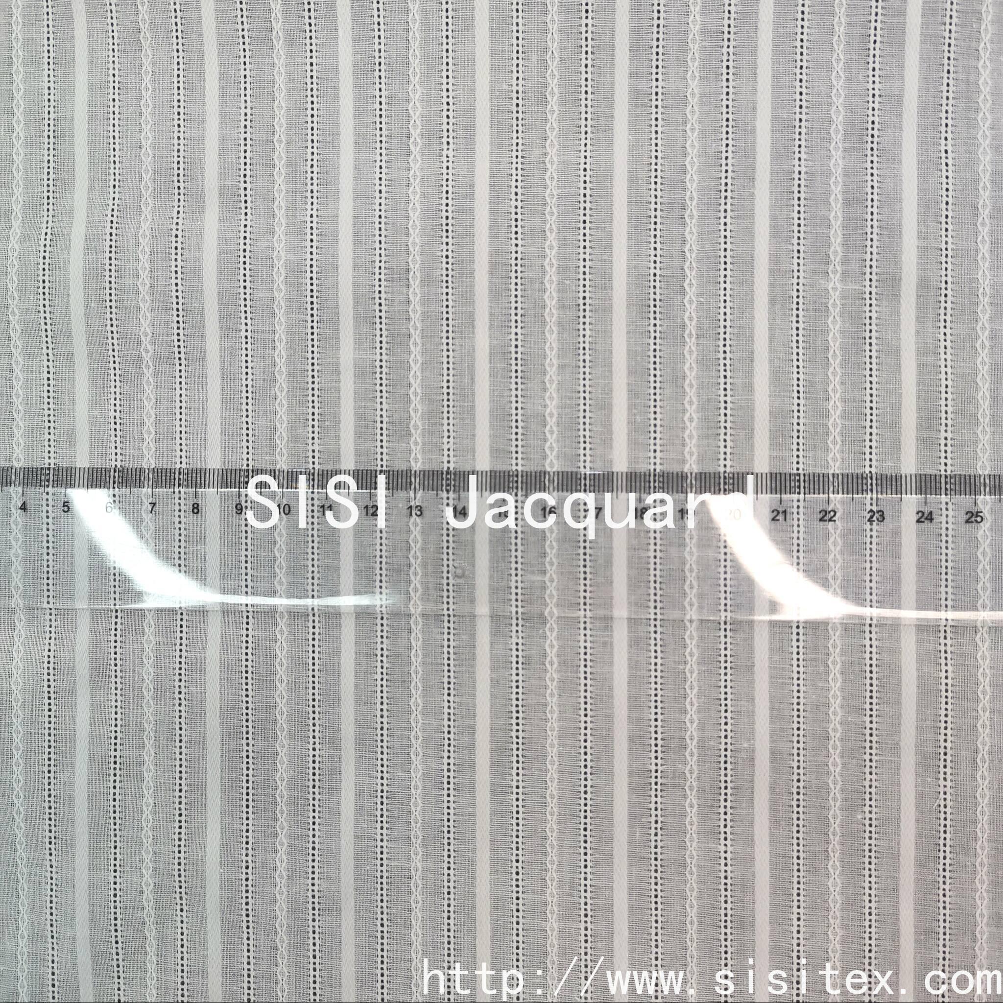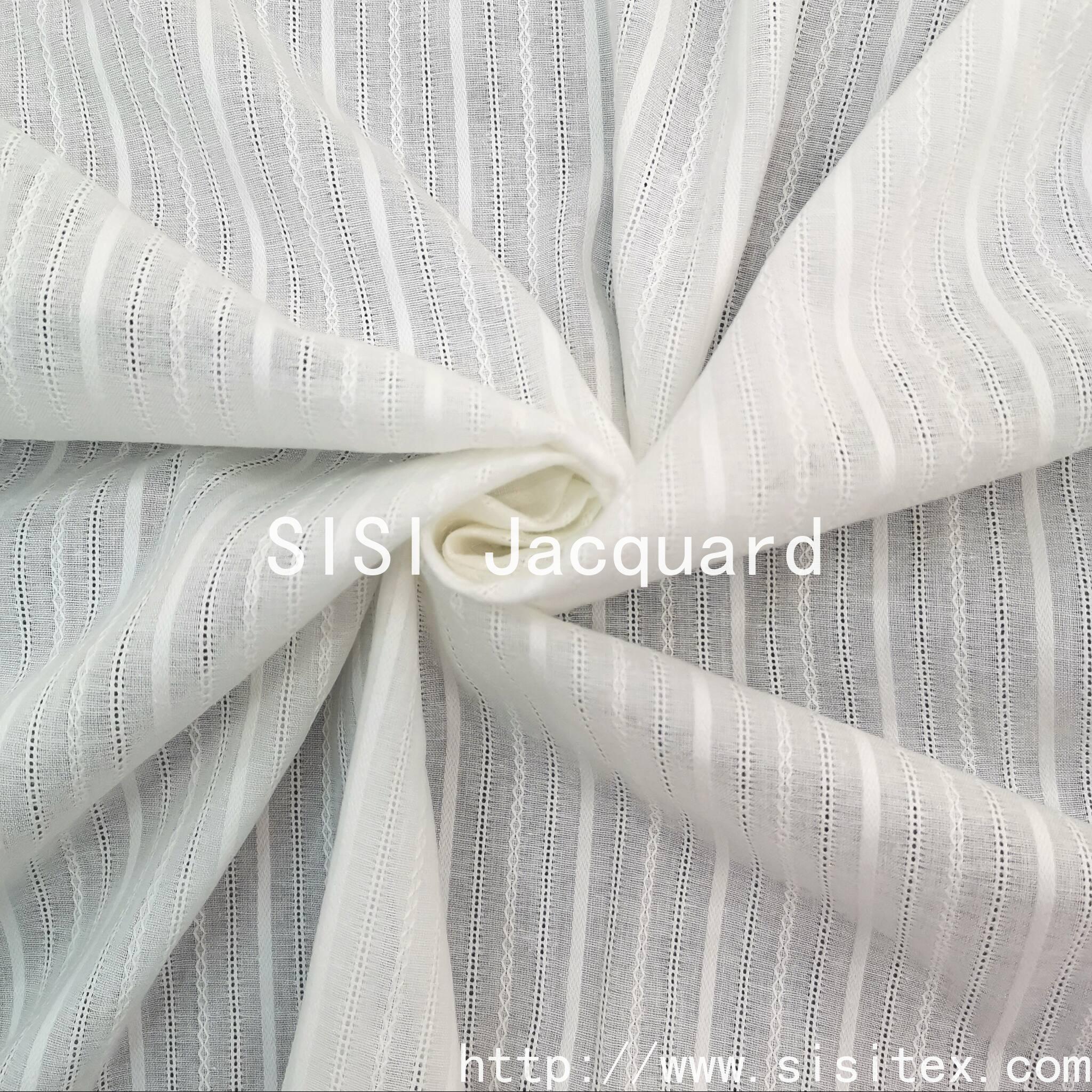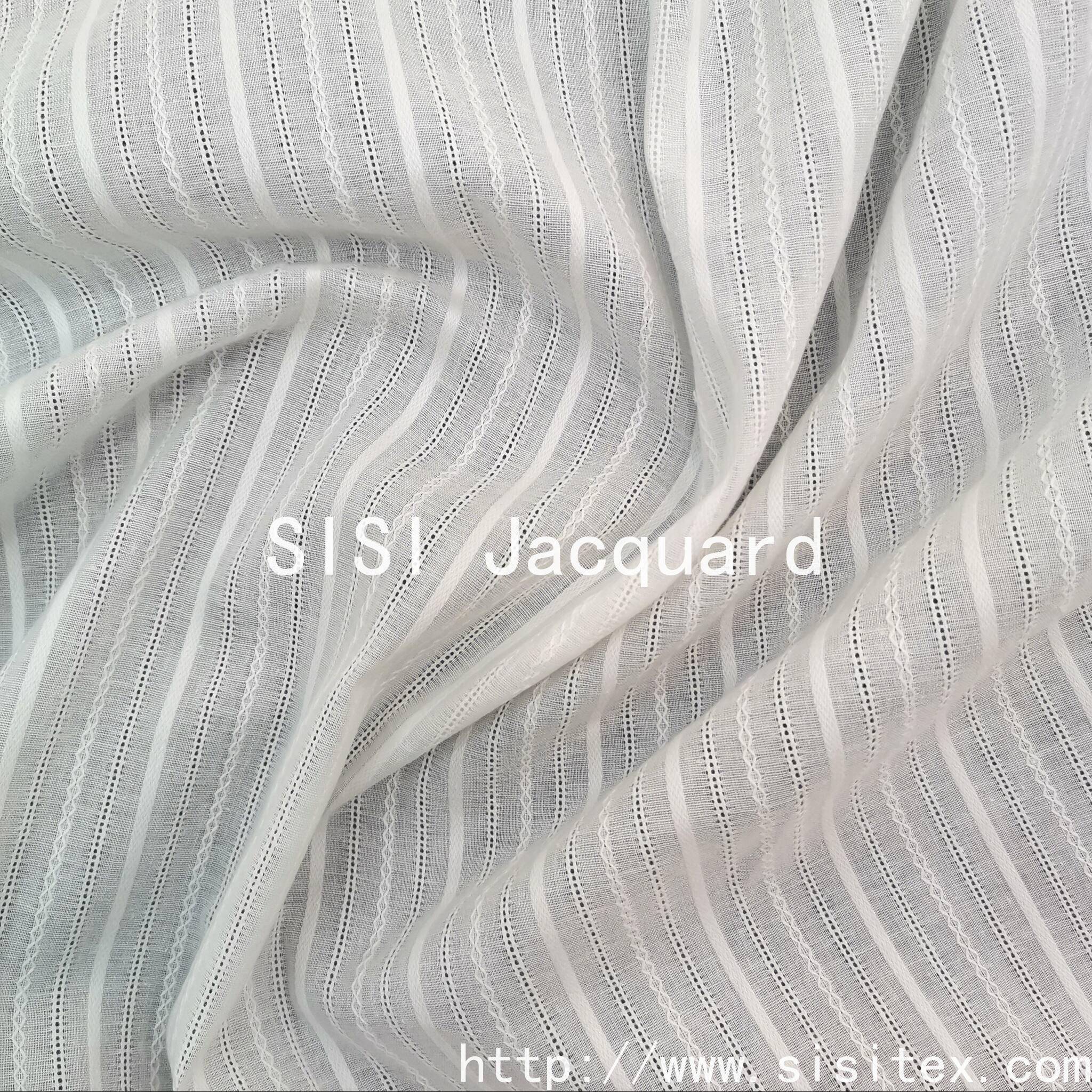 This product is made of 100% cotton muslin striped jacquard fabric SS18299. This fabric is a high-quality product that aims to achieve a natural texture and exquisite craftsmanship. It is woven using 100% pure cotton yarn through an ancient muslin weaving technique, creating a unique breathable striped texture. Then, it incorporates delicate jacquard patterns, achieving a perfect blend of touch and vision. The fabric feels dry, soft, and flexible, with good drape and breathability. When worn, you can feel every inch of the pure cotton's breath. When used in the home, it can infuse a space with a touch of serene and simple侘寂 beauty. Whether it's making a breathable summer shirt or a set of bedding that showcases taste, it can respond to the pursuit of quality life with its unique texture and the reassurance of pure cotton.