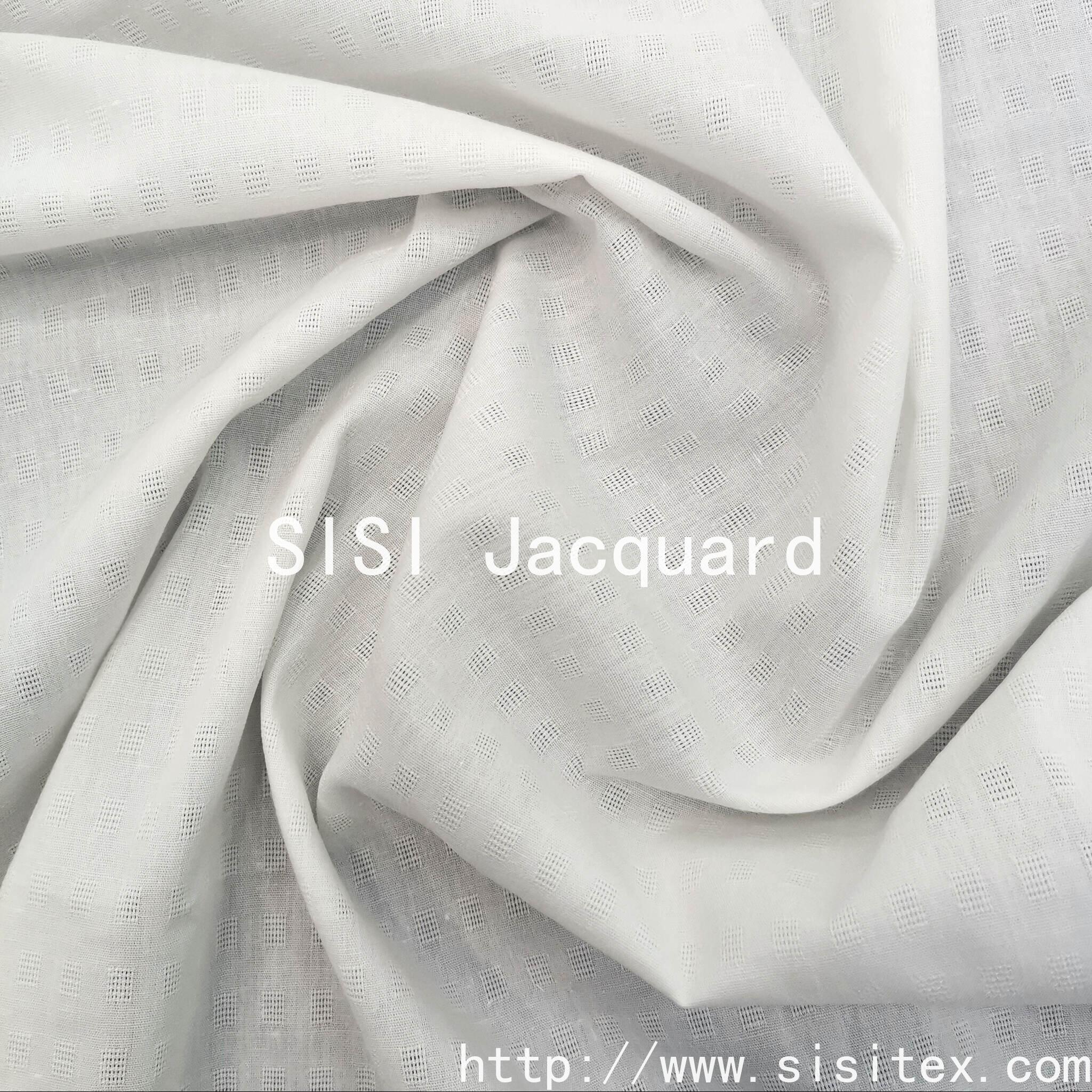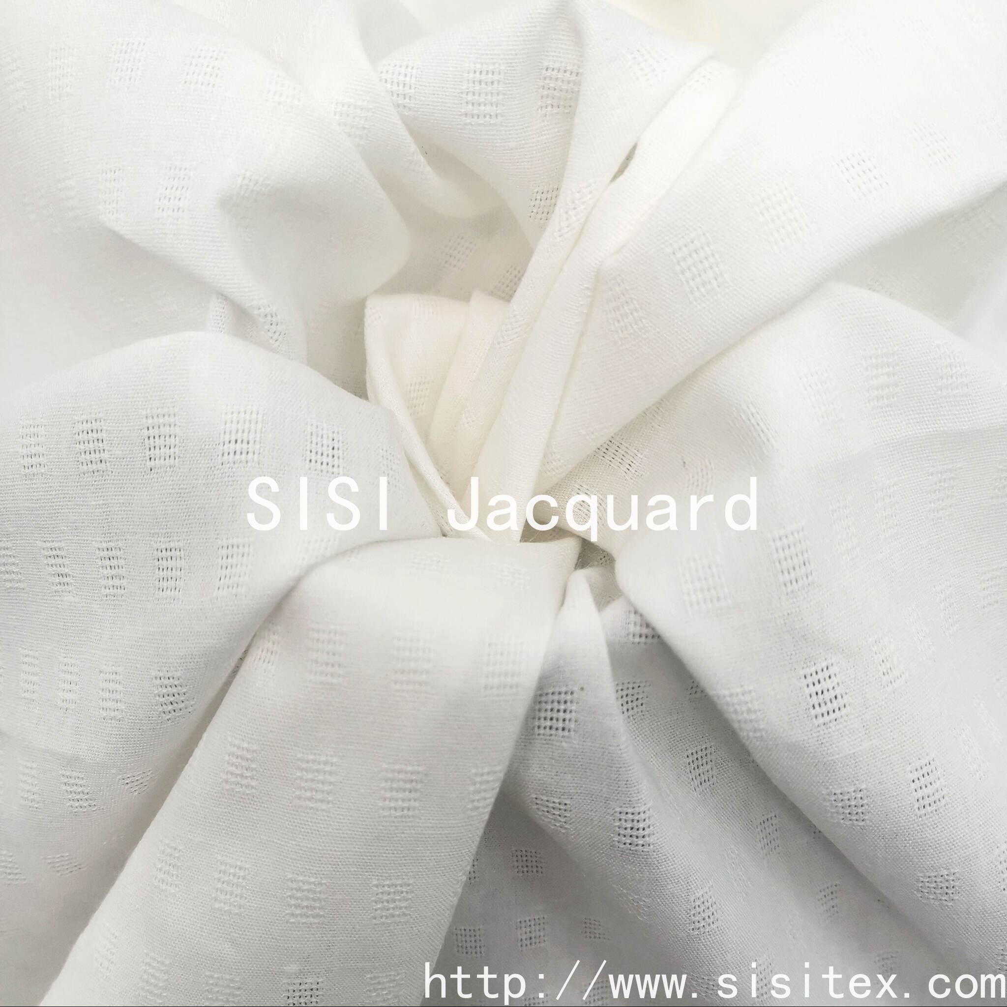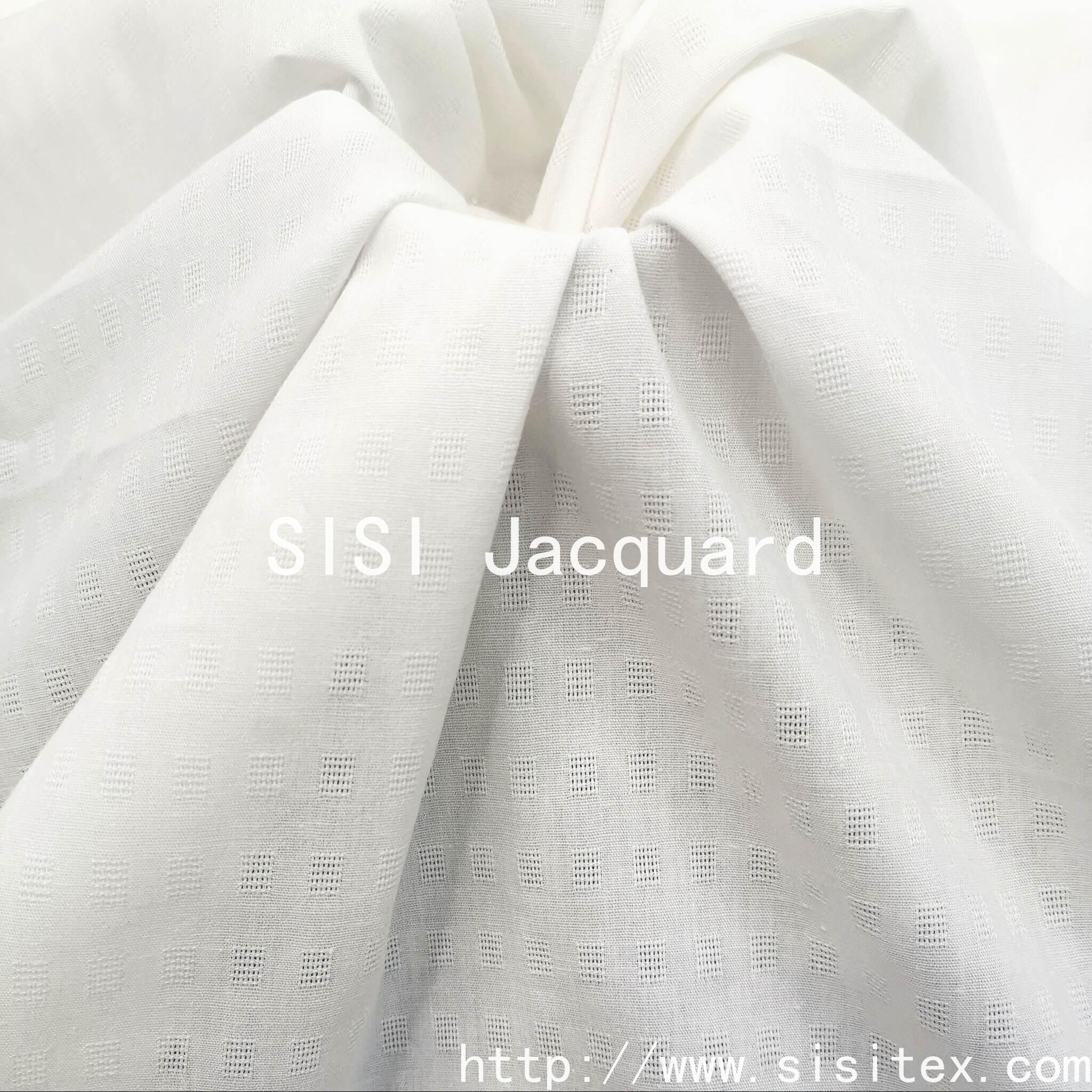 This product is a woven all-cotton mesh small square pattern jacquard fabric SS18300. The pursuit of "breathable" and light-interacting fabric is an important direction in the current market. This mesh small square structure creates a unique micro-transparency visual effect and air circulation sensation, perfectly aligning with people's preference for summer freshness and "transparent aesthetics". 100% cotton material is the first choice for sustainable fashion and healthy living. Under the complex mesh weaving process, it still adheres to the use of a single natural fiber, representing the brand's ultimate pursuit of environmental protection and zero burden on the skin.