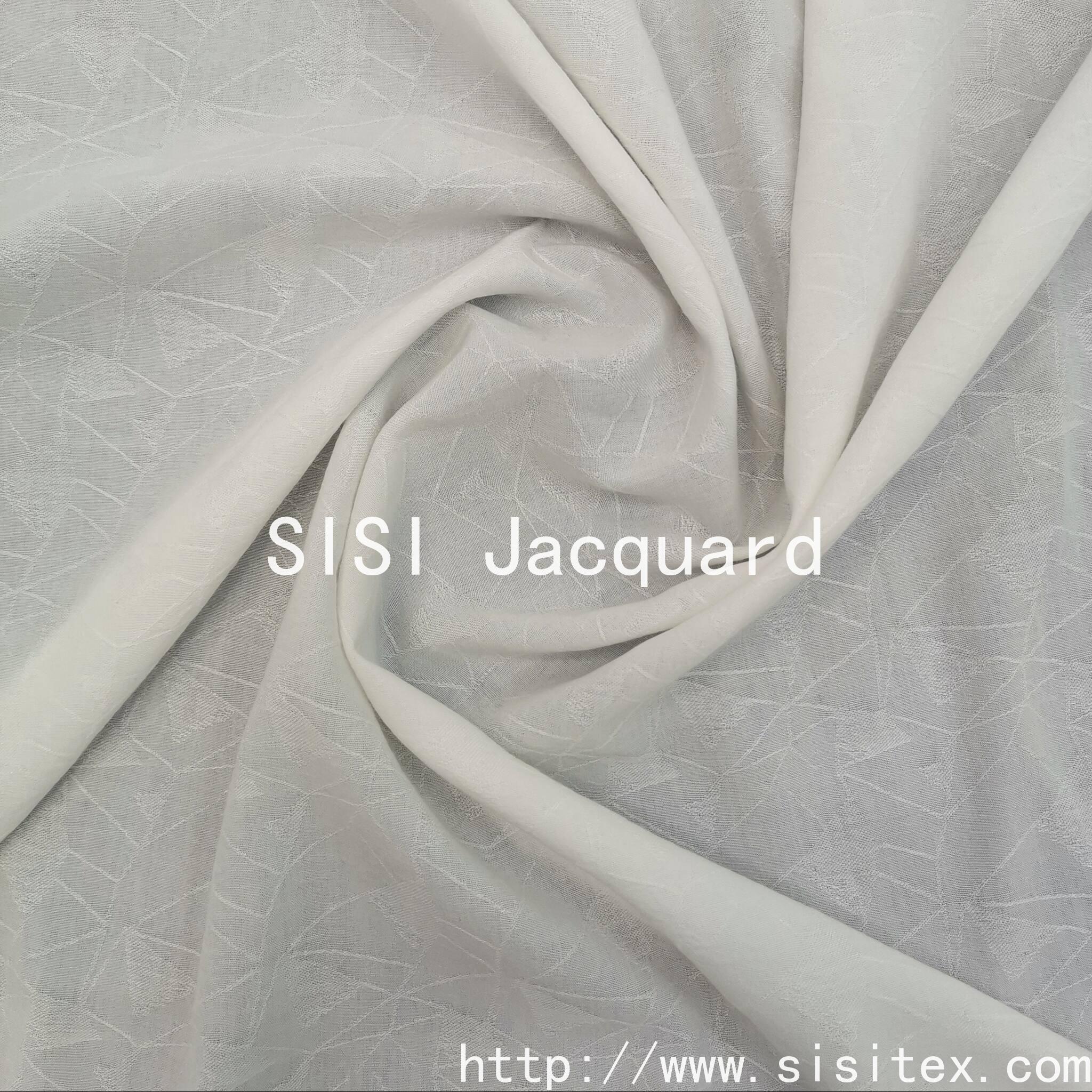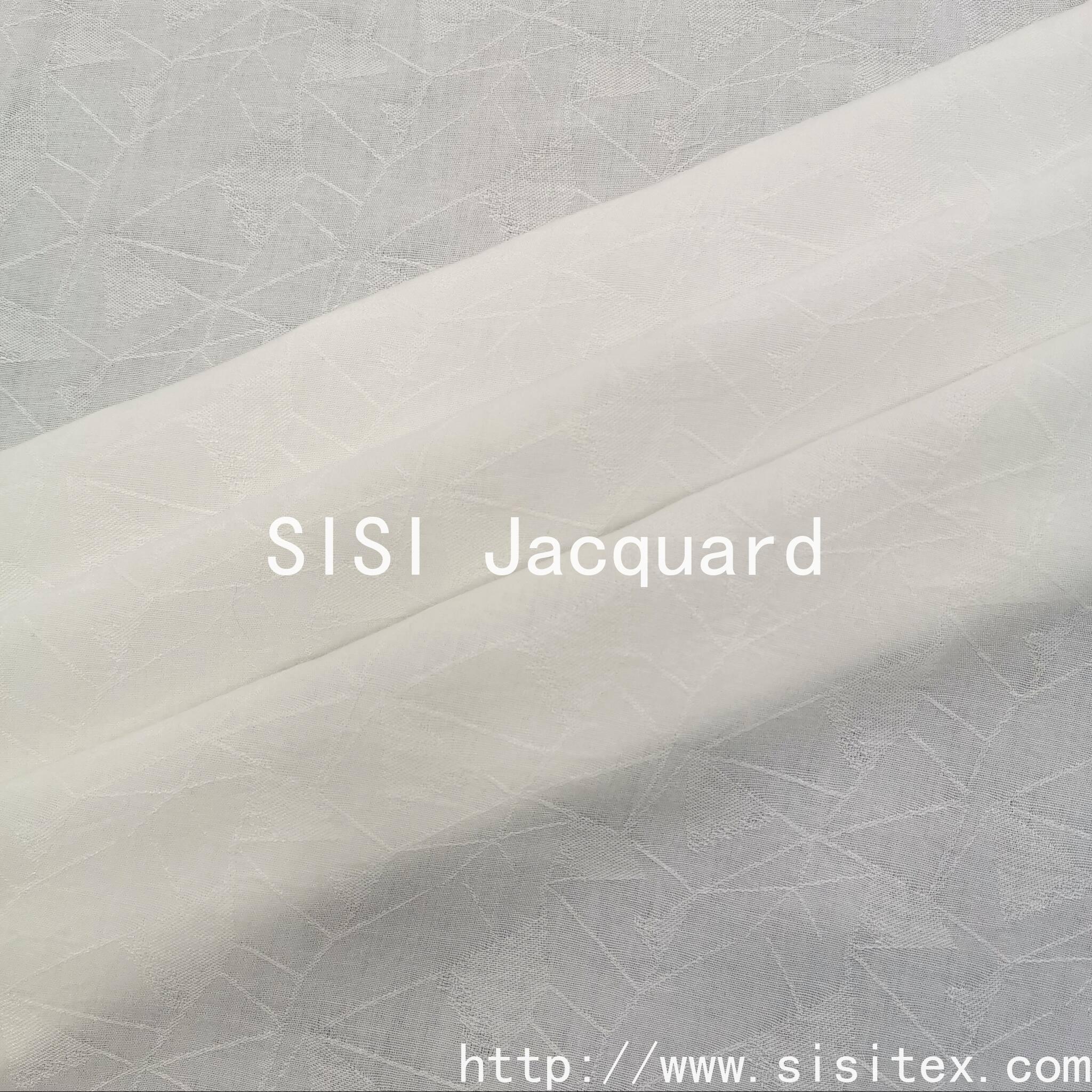This product is made of woven geometric jacquard fabric SS20060. 50% rayon is the main component, precisely responding to the market's ultimate pursuit of "flowing texture" and "smooth draping". The fabric exhibits a drape similar to that of high-end materials, perfectly aligning with modern clothing's emphasis on smooth lines. The clear geometric patterns continue to set the trend, their rational and orderly power sense injecting timeless modernity into the design, and are the core elements for creating "quiet luxury style" and "high-end basic styles".