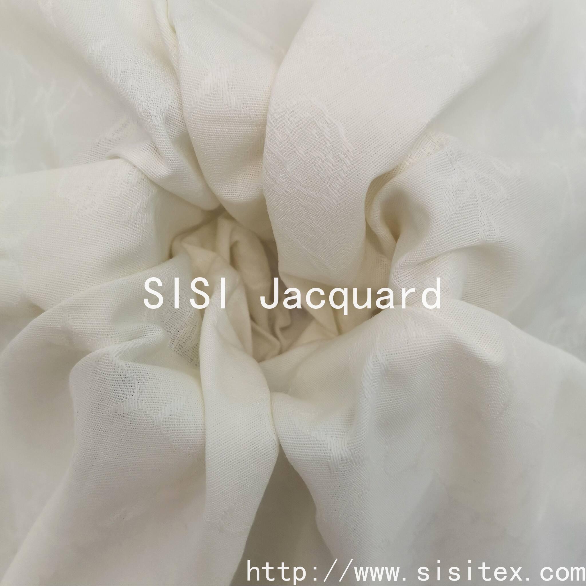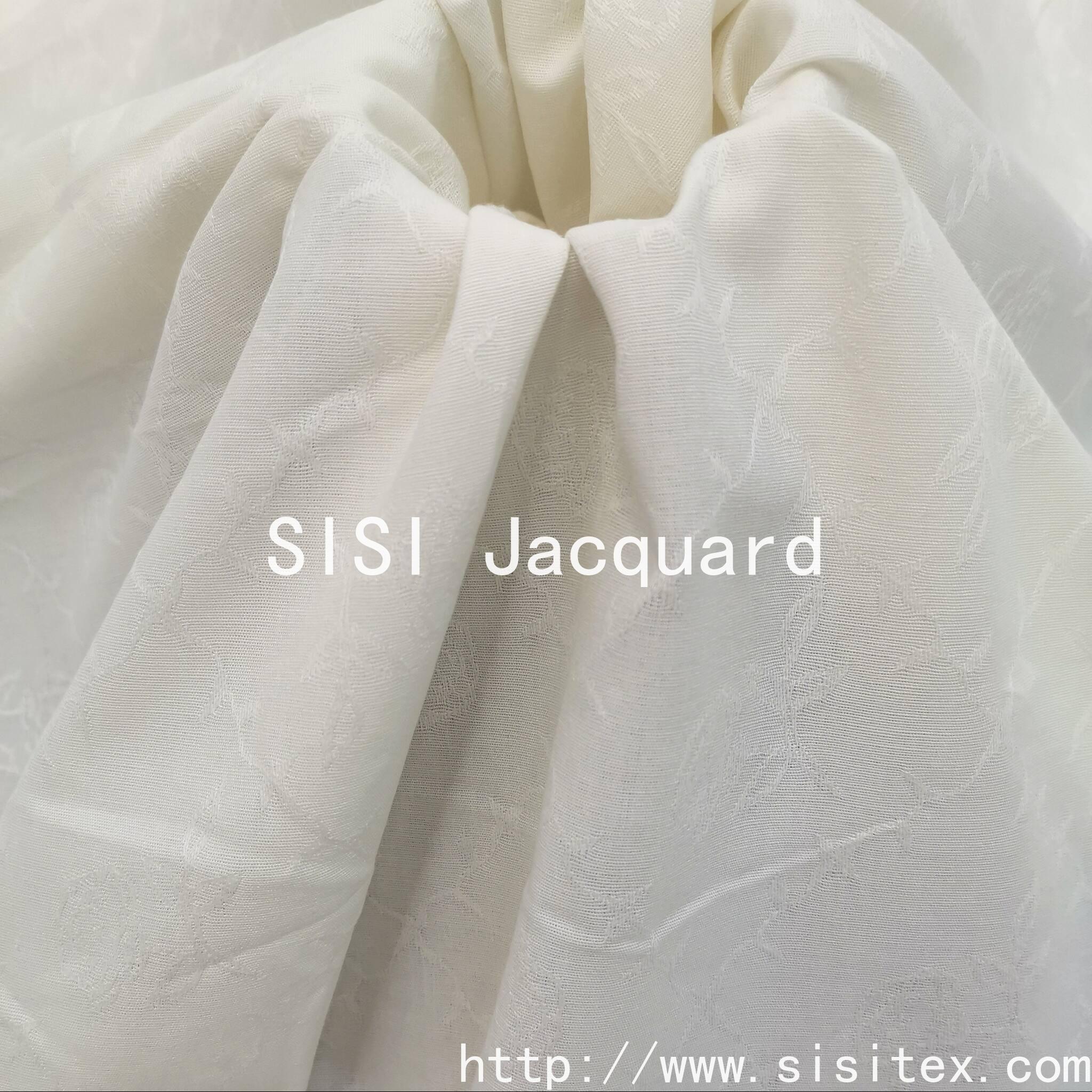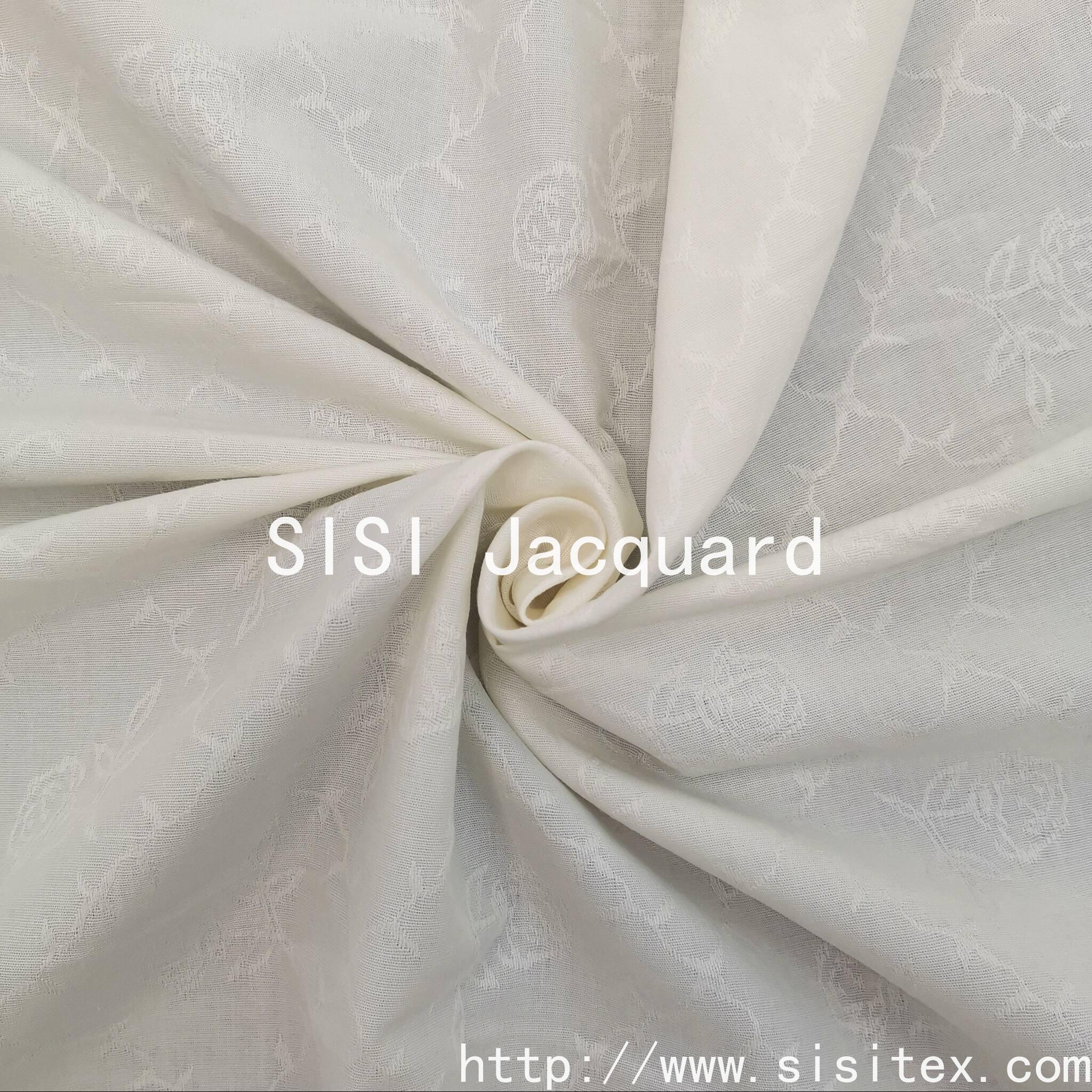 This product is a cotton-rayon rose flower jacquard fabric SS20067. Through precise jacquard weaving technology, a three-dimensional and vivid rose pattern is created on the fabric. Each rose is slightly raised, forming a delicate texture, making the design piece full of artistic atmosphere and romantic sentiment. The innovative ratio of 56% cotton and 44% rayon precisely meets the current market's dual demands for "smooth drape" and "skin-friendly breathability", redefining the balance standard of comfort and beauty. The three-dimensional rose pattern created by the jacquard technique adds a rich tactile experience to the fabric, meeting the expectations of high-end consumers for "touchable texture".