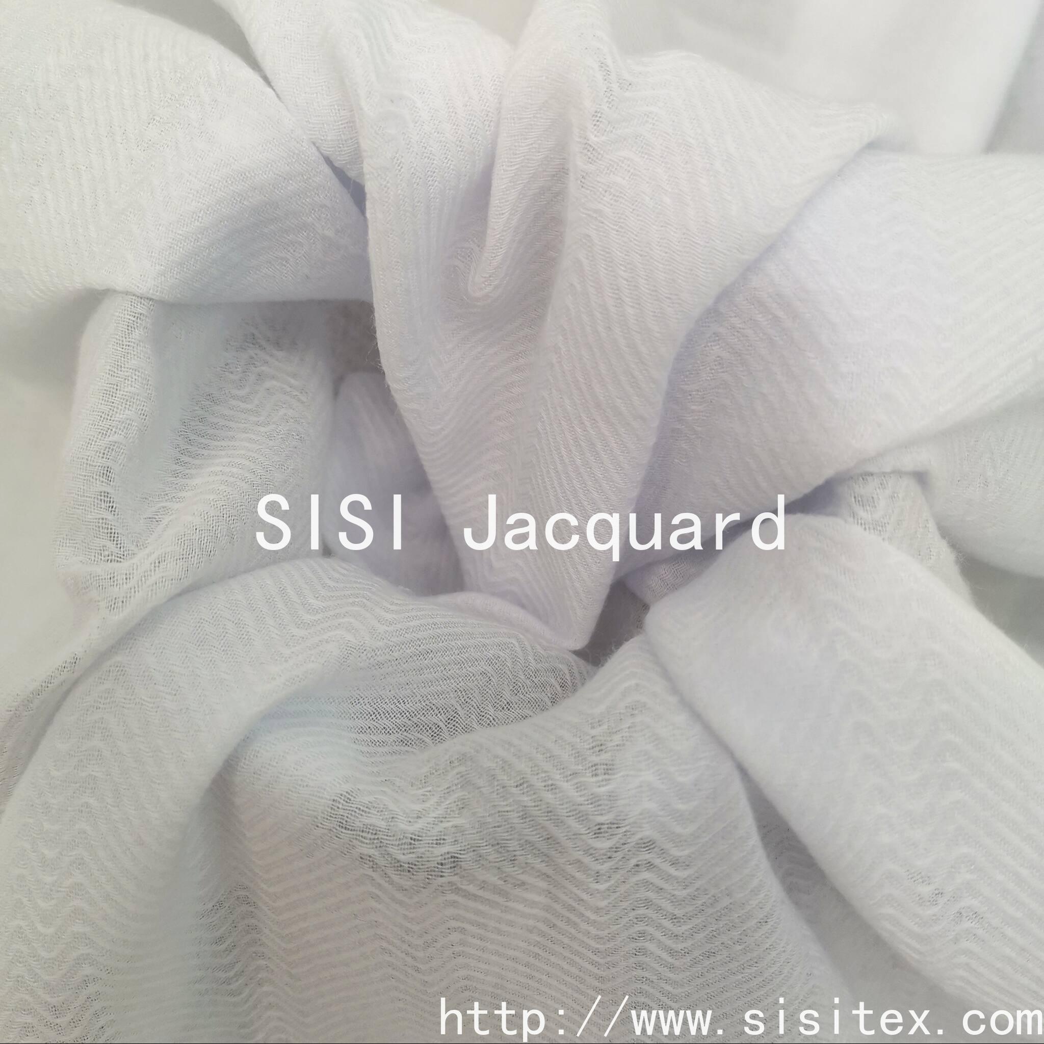 This product is made of 100% cotton, with a wavy herringbone jacquard fabric. The lightweight and breathable structure of the gauze combined with the three-dimensional layering effect of the jacquard creates a perfect match for the pursuit of texture in fashion styles such as "luxury minimalism" and "French romance". It has become a popular choice for light and thin clothing in the autumn and winter seasons. The jacquard technique originated from traditional textile technology. It is formed by interweaving warp and weft to create the wavy herringbone pattern, echoing design trends such as "new Chinese retro" and "revival of traditional craftsmanship", meeting consumers' aesthetic needs for cultural symbols.