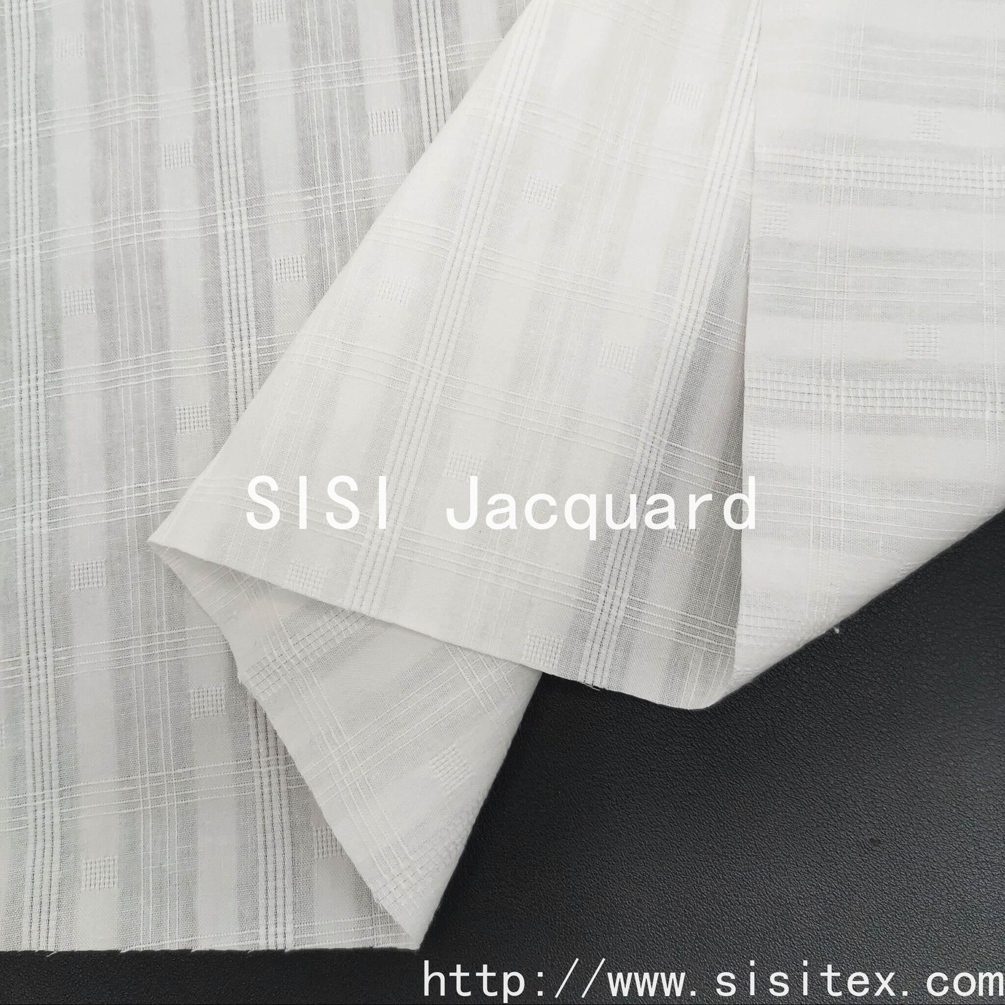 The SS18056-1 all-cotton checkered jacquard fabric is woven from high-quality cotton yarn and has a soft and fine touch. The exquisite jacquard technique endows the checkered pattern with a three-dimensional layering effect. From a distance, it looks simple, but up close, it is full of details. The fabric is smooth and not prone to wrinkling, making it suitable for all kinds of clothing and home decorations, combining comfort and design sense. Whether it's cutting out an artistic shirt or DIY a unique throw pillow, it can add a touch of natural elegance to your daily life.
