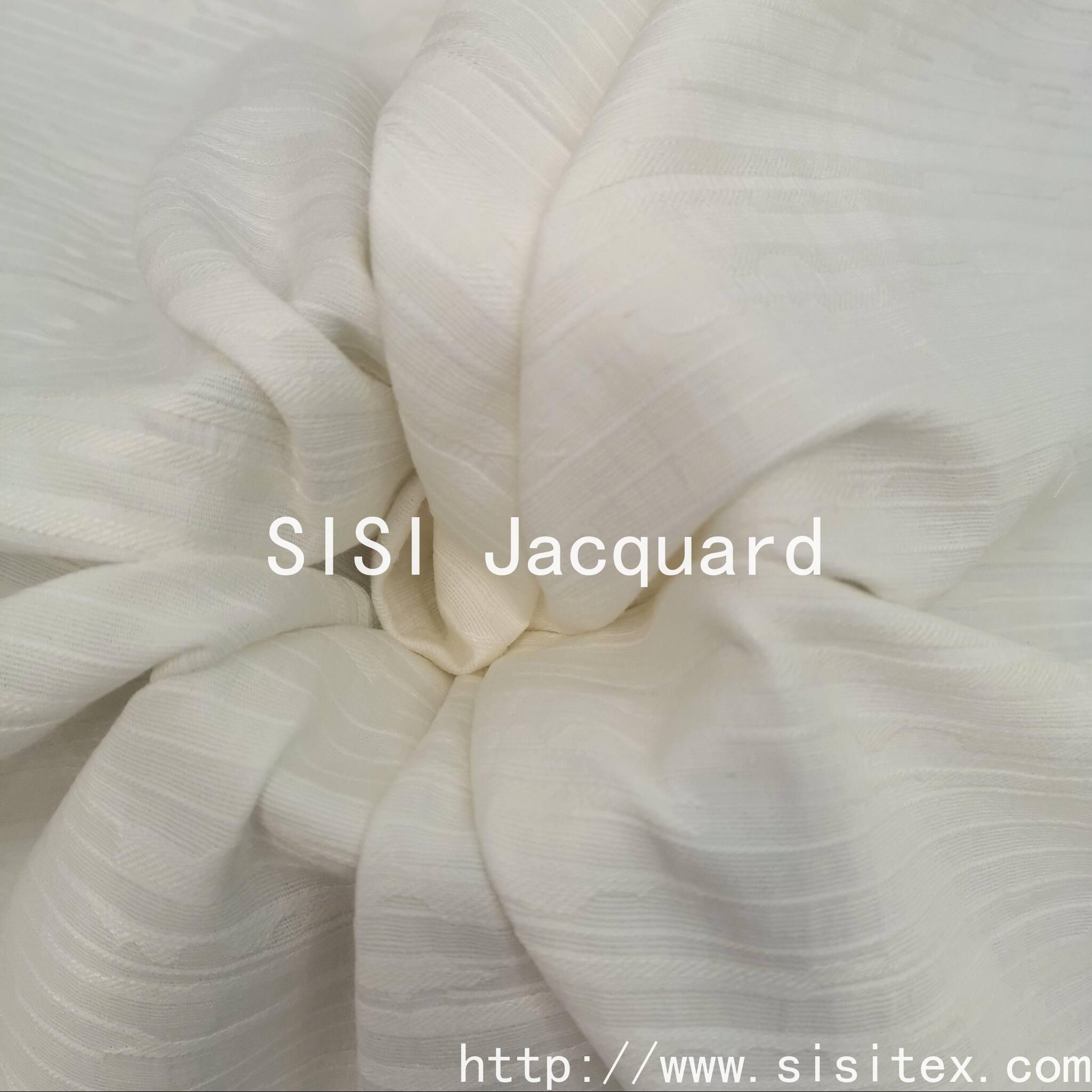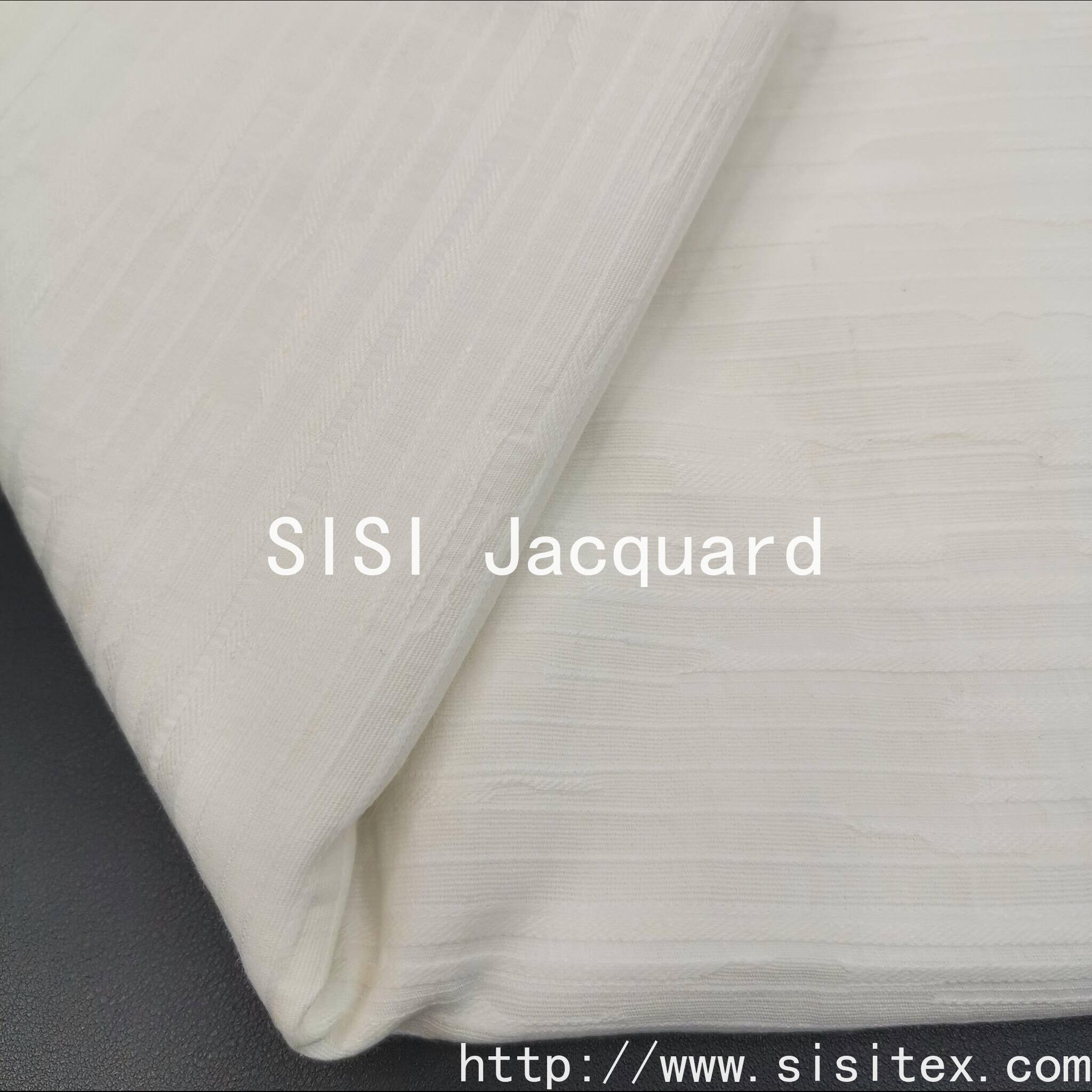 This product is a cotton-rayon-linen-mesh plain weave jacquard fabric SS18306. It is scientifically composed of 60% cotton, 30% rayon and 10% linen. Through the jacquard weaving technique, it creates a vibrant cross-grain texture. The softness of cotton, the smoothness of rayon and the simplicity of linen are perfectly blended, resulting in a unique tactile experience that is both skin-friendly and breathable, while also exuding a sense of skeletal structure. The cross-grain pattern on the surface is clear and rhythmic, like ripples on a lake, infusing the design with a serene and flowing aesthetic. Whether it is made into an attitude-oriented business shirt or a set of home furnishings that embodies the aesthetics of life, it can bring a peaceful and comfortable feeling away from the hustle and bustle with its natural ingredients and unique texture.