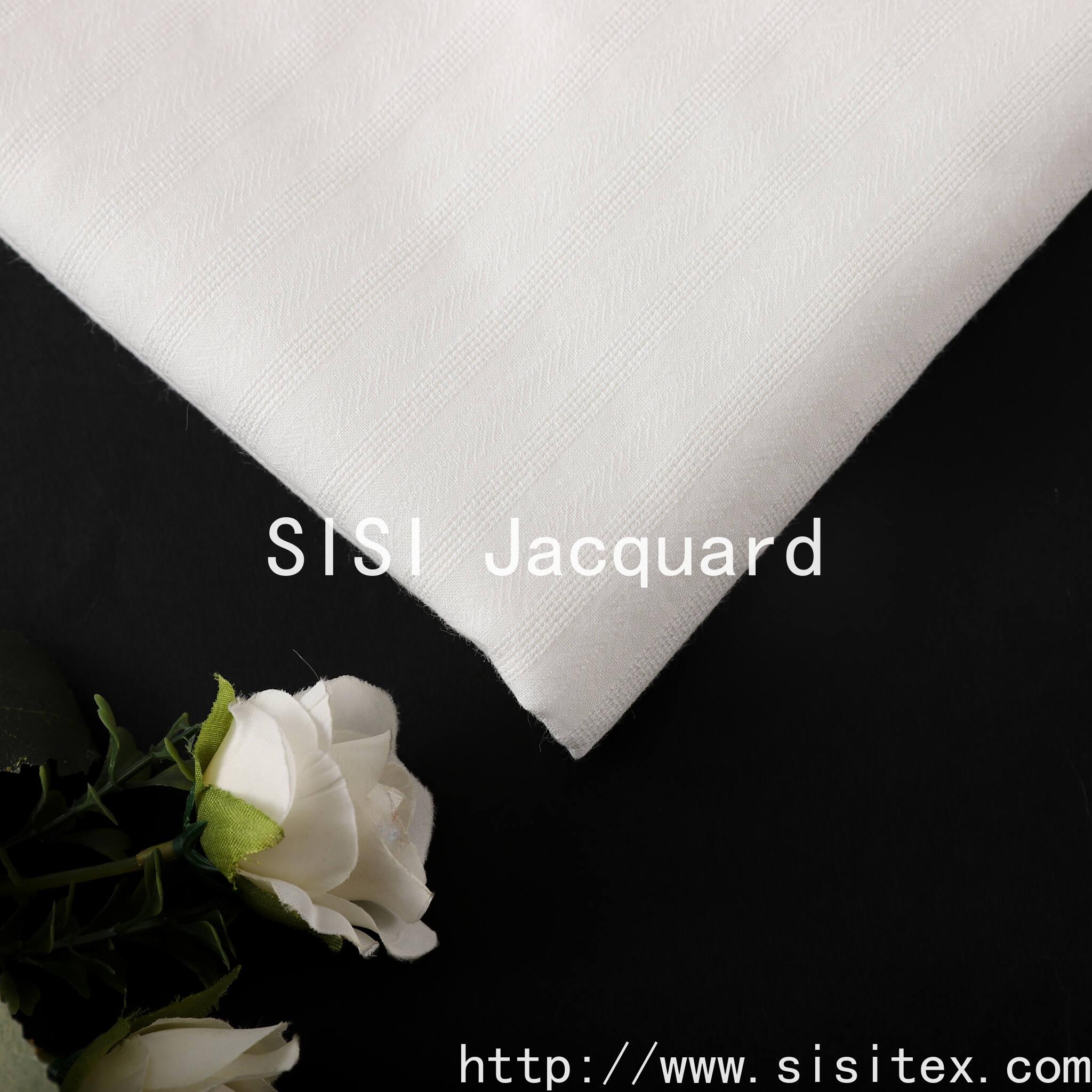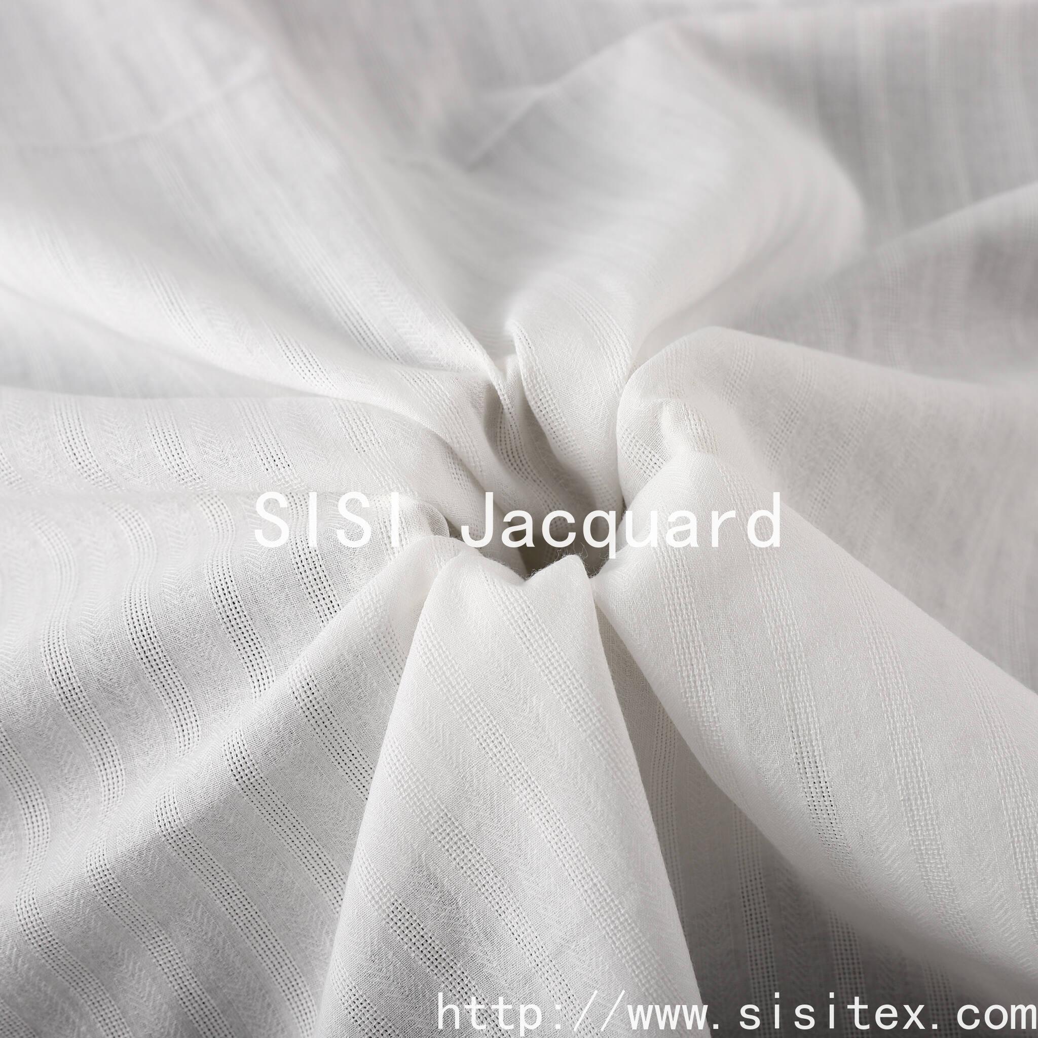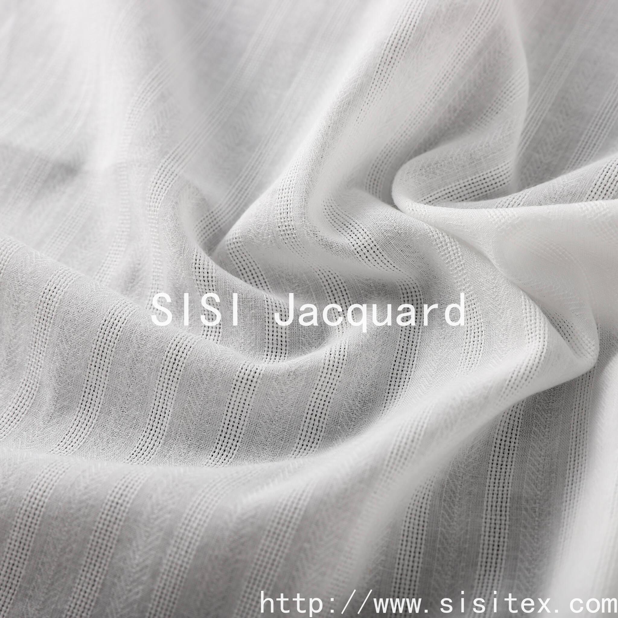 This product is made of 100% cotton, featuring a fishbone pattern jacquard fabric SS18312. It is woven through the jacquard technique to create a unique breathable texture. Then, the fishbone pattern is used to outline the tense V-shaped lines, achieving a perfect balance between visual layers and wearing comfort. The fabric has a dry and flexible feel, with the jacquard holes serving as the breathing channels of the fabric, and the fishbone pattern giving it a firm structure. Whether it is made into an elegant and breathable Zen-style shirt or a set of home furnishing that interprets Eastern aesthetics, it can inject a peaceful and powerful soul into the design with its unique structural beauty and pure natural texture.