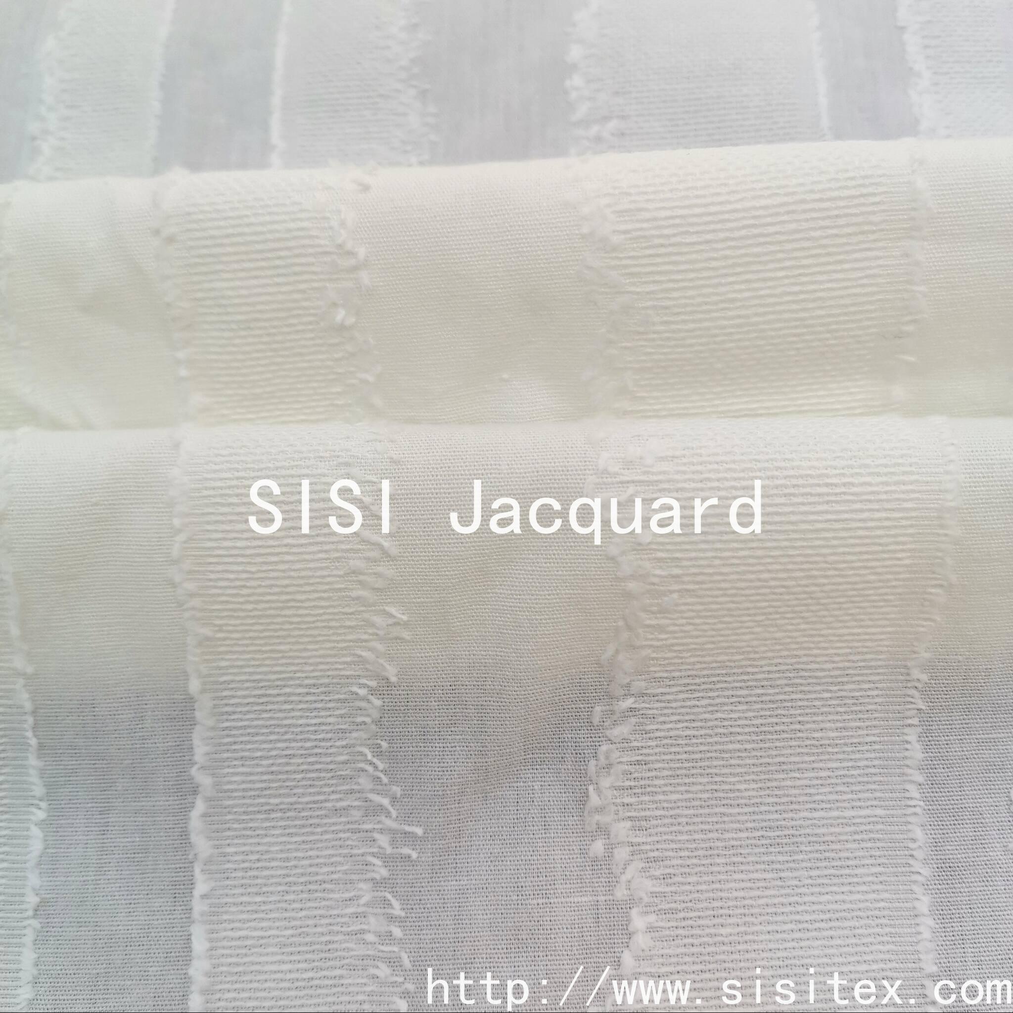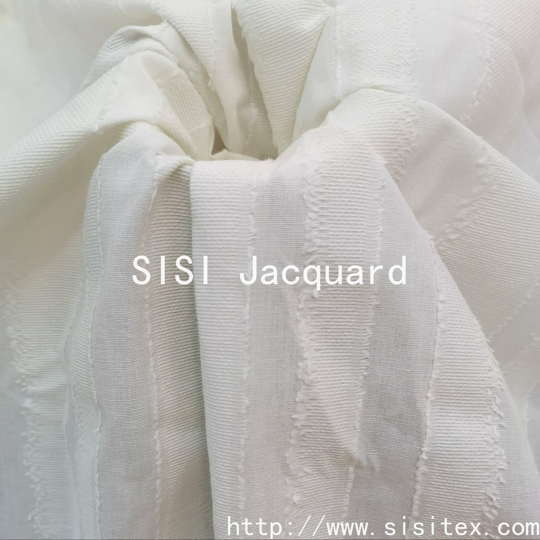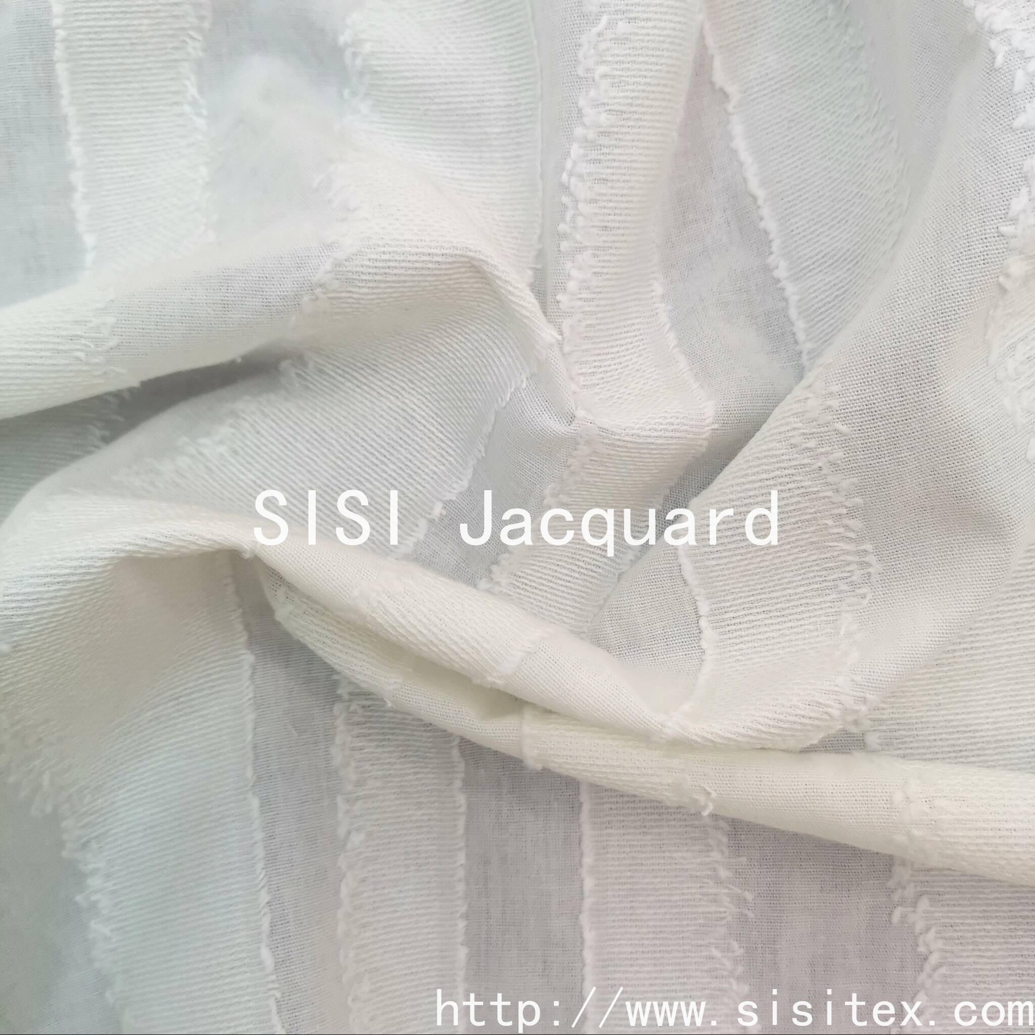 This product is made of 100% pure cotton vertical herringbone jacquard fabric SS18324-3. It is carefully crafted with 100% high-quality cotton yarn and utilizes advanced integrated jacquard and embroidery weaving technology. The surface of the fabric presents a clear vertical stripe texture, interspersed with exquisite raised and recessed pattern designs. The tangible and realistic three-dimensional effect that can be felt is its most distinctive feature. Not only does it retain the inherent softness and breathability of pure cotton fabric, but through complex processes, it also gives it an advanced texture like a relief art piece, perfectly catering to the popular trend of "returning to nature".