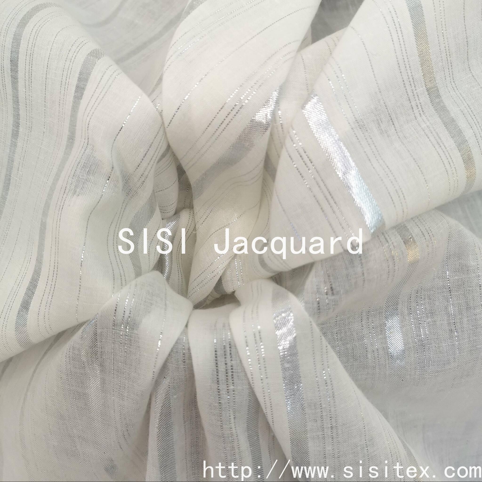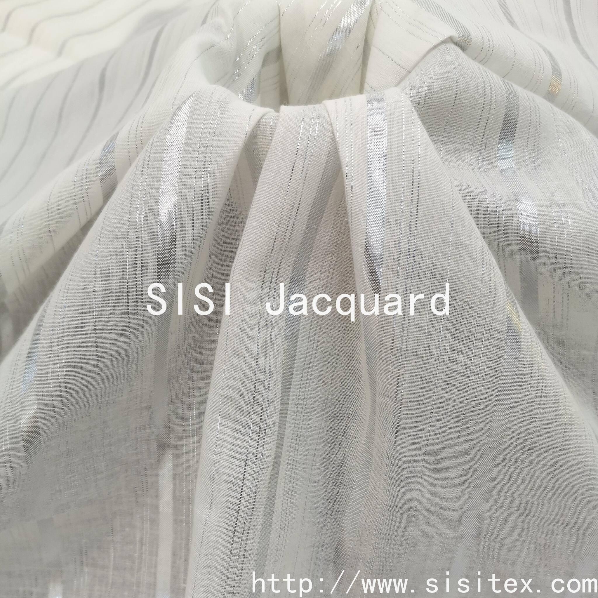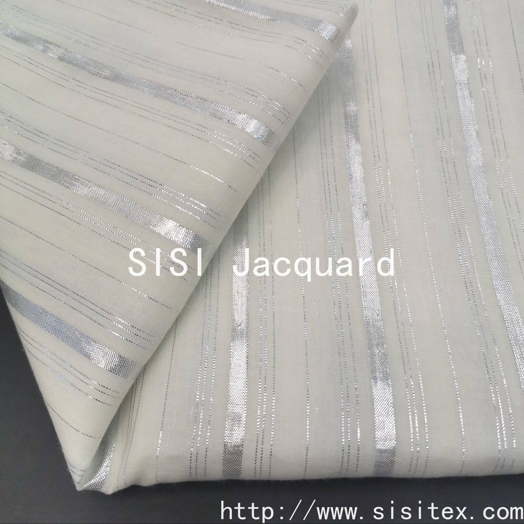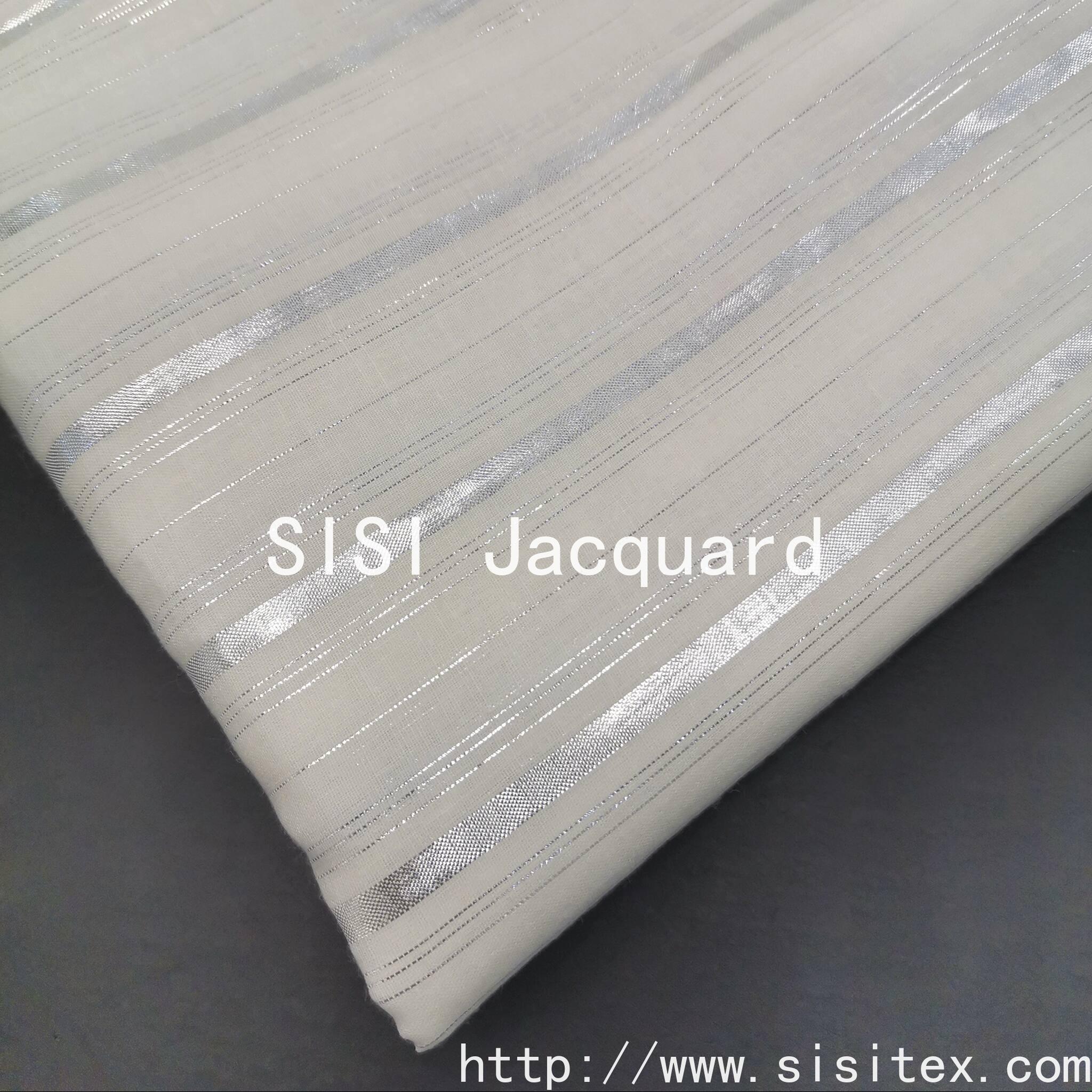 This product is made of woven cotton silver thread jacquard fabric SS18329. It is constructed with 97% high-quality cotton as a comfortable and breathable base, and 3% exquisite silver threads are woven into it through a highly complex jacquard weaving process. The metallic elements with a lustrous appearance continue to be favored in the fashion and home decoration fields, representing a subtle sense of technology and futurism. The combination of silver threads and cotton makes this futuristic feeling tangible and warm, catering to the consumption trend that values subtle sensory experiences.