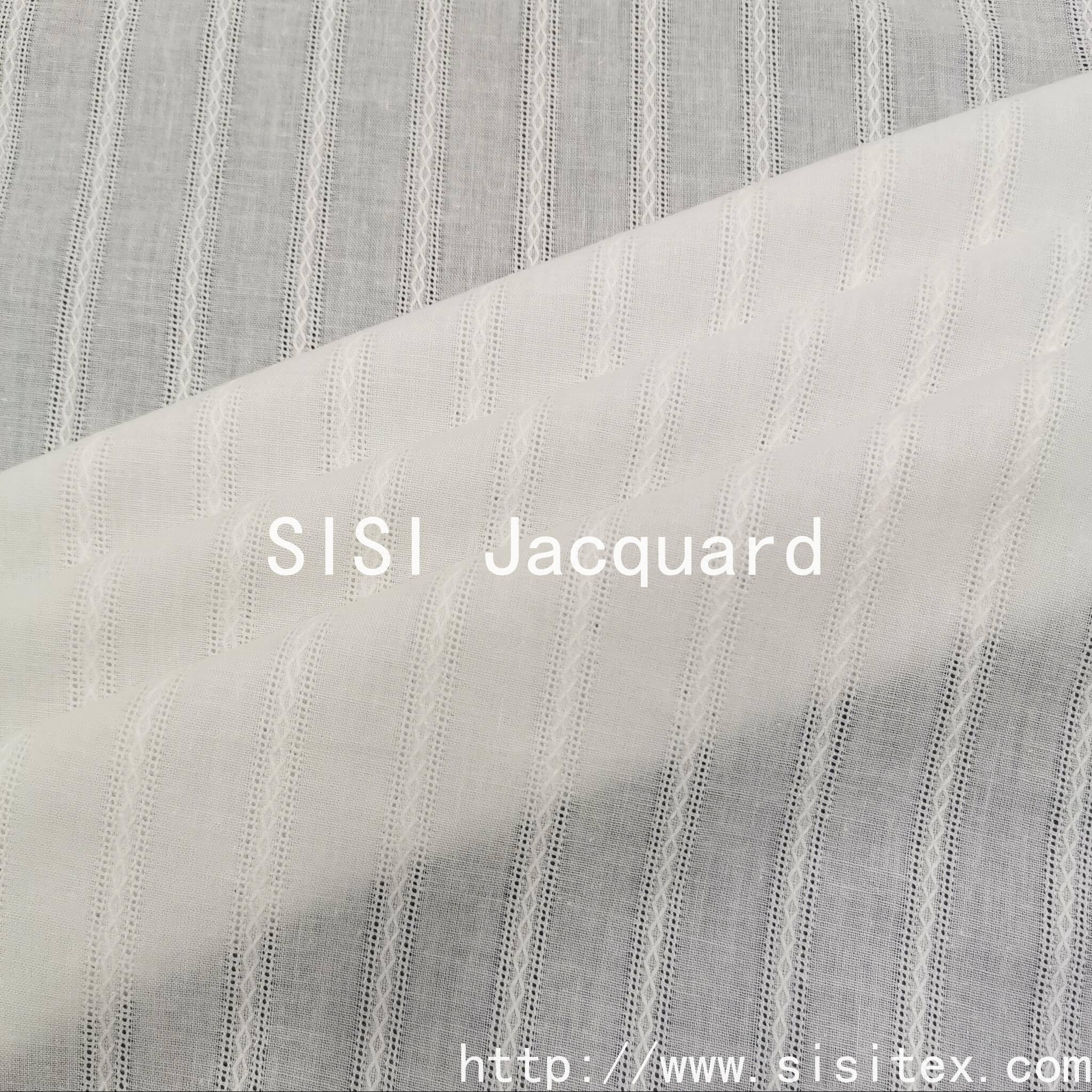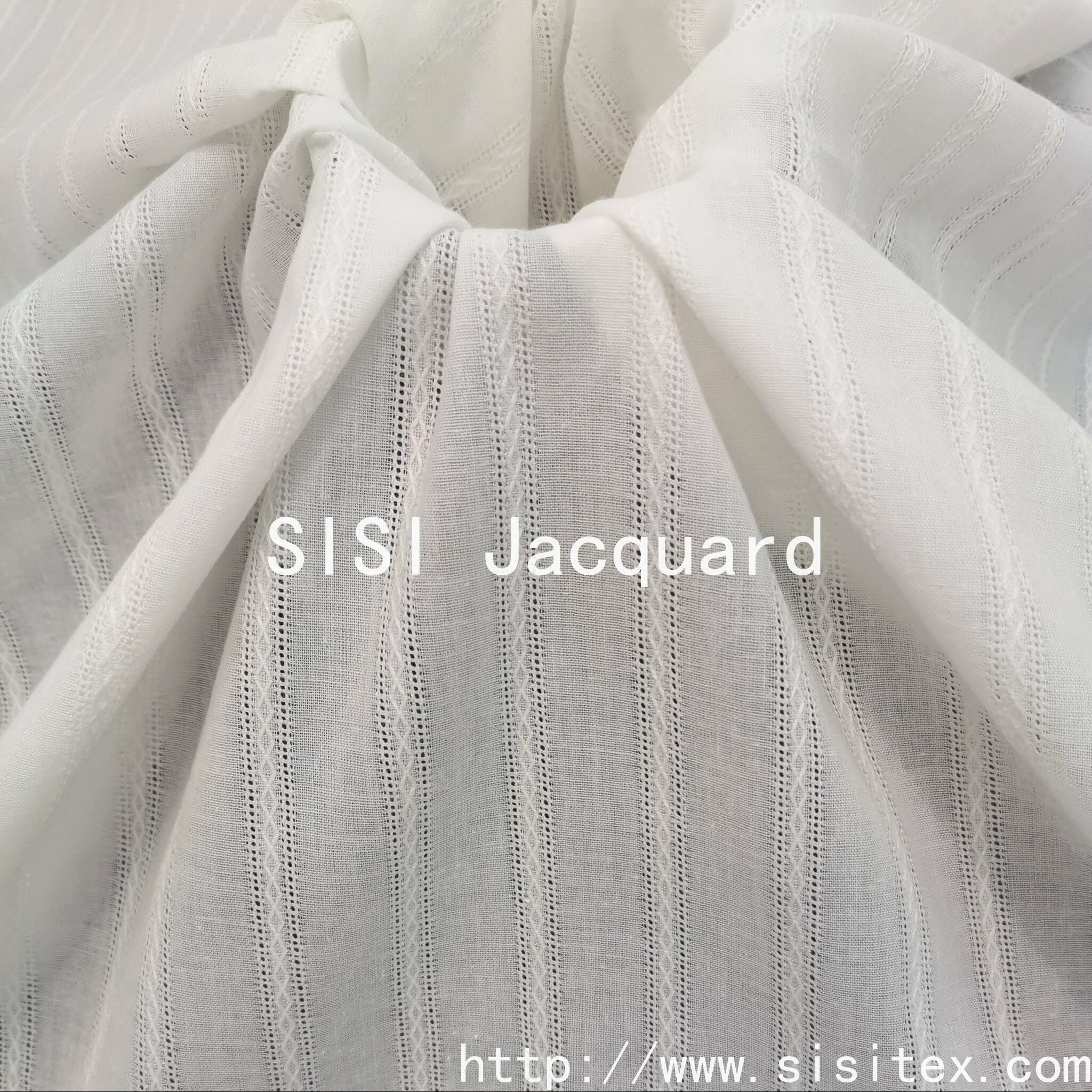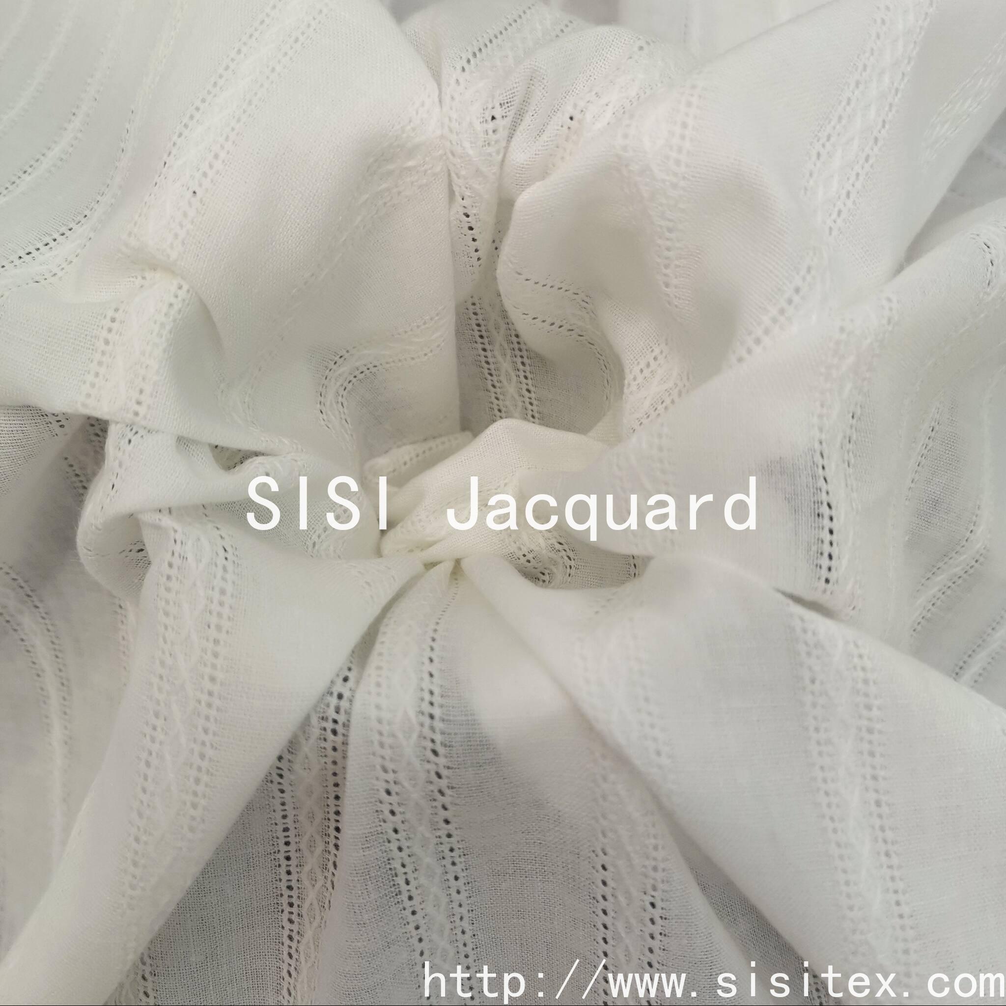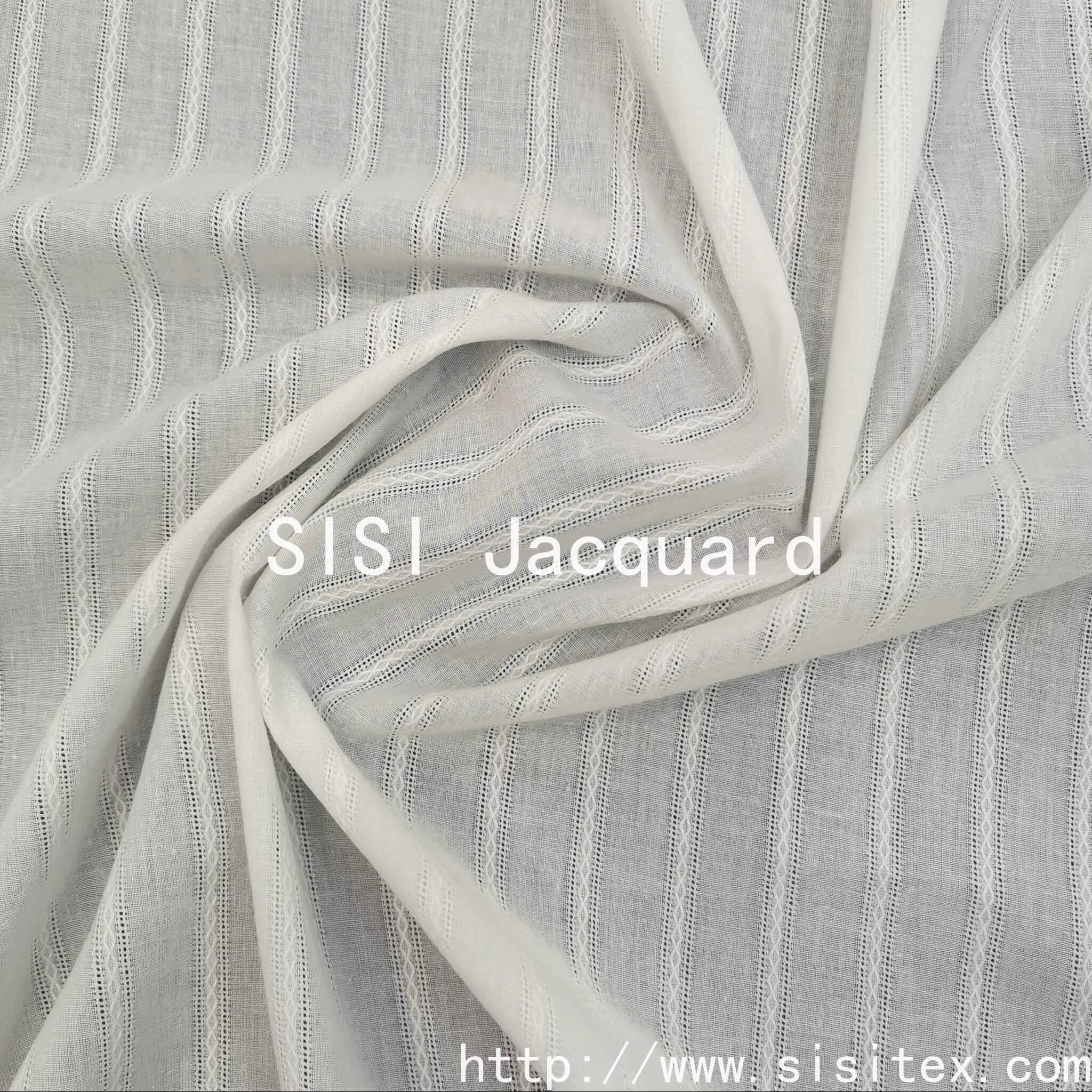 This product is a 100% cotton voile mesh twisted stripe jacquard fabric SS18334. It is a unique fabric that combines the airiness and three-dimensionality. It is made by combining the retro voile mesh weaving technique with the three-dimensional jacquard technology, creating an artistic piece with a clear twisted rope texture on the fabric surface and regular mesh patterns. This fabric can offer a pure, transparent and poetic aesthetic experience with its unique structural beauty and the natural comfort of 100% cotton.