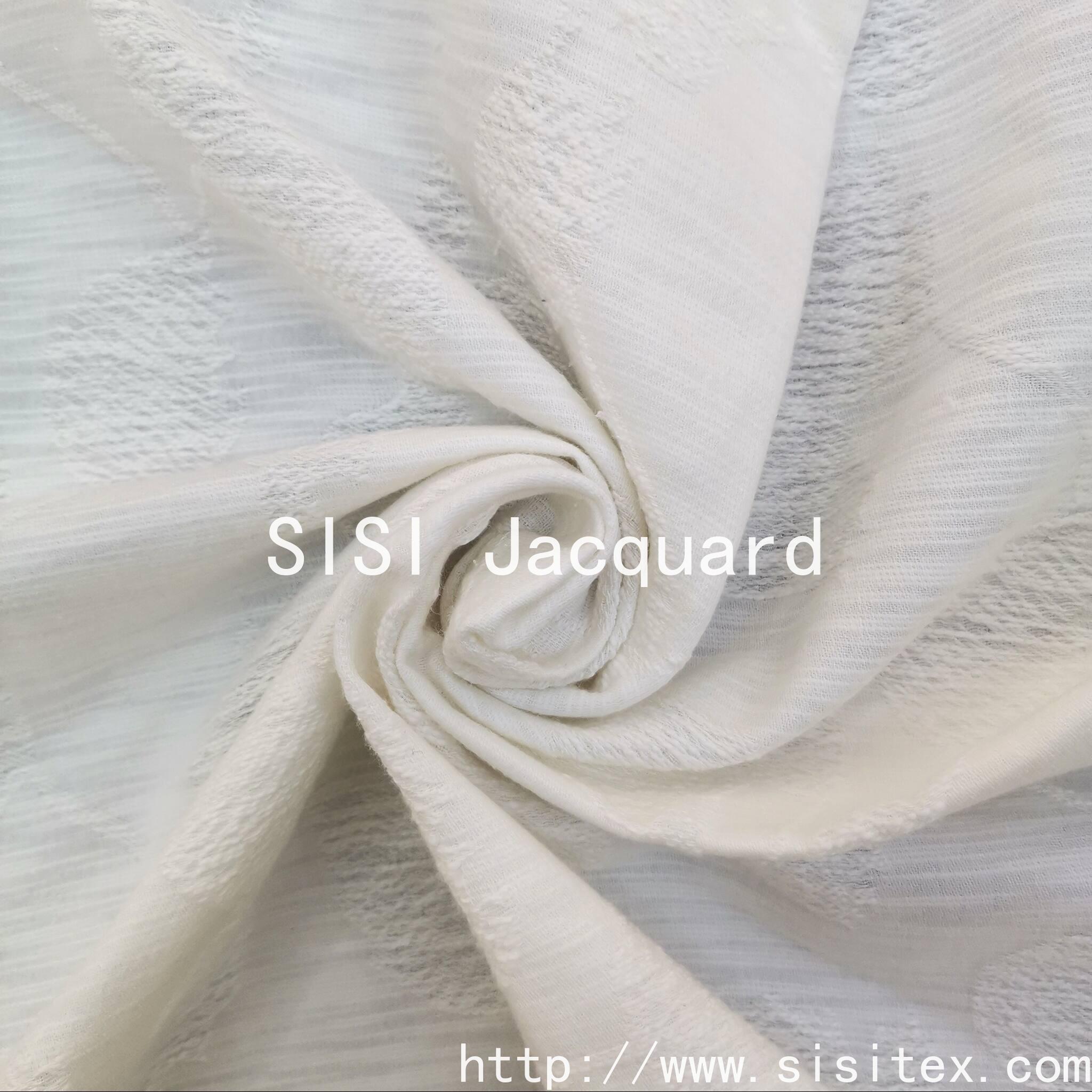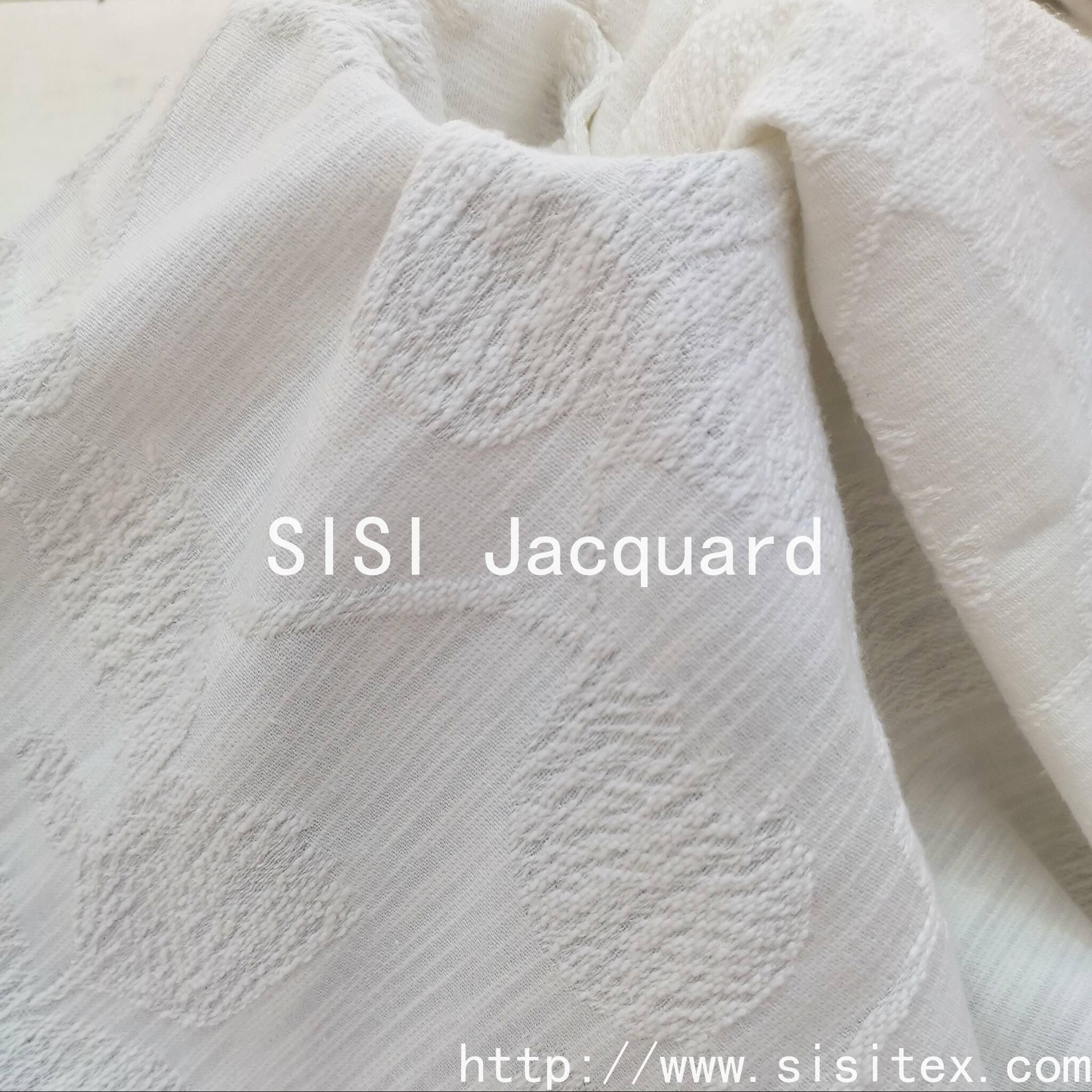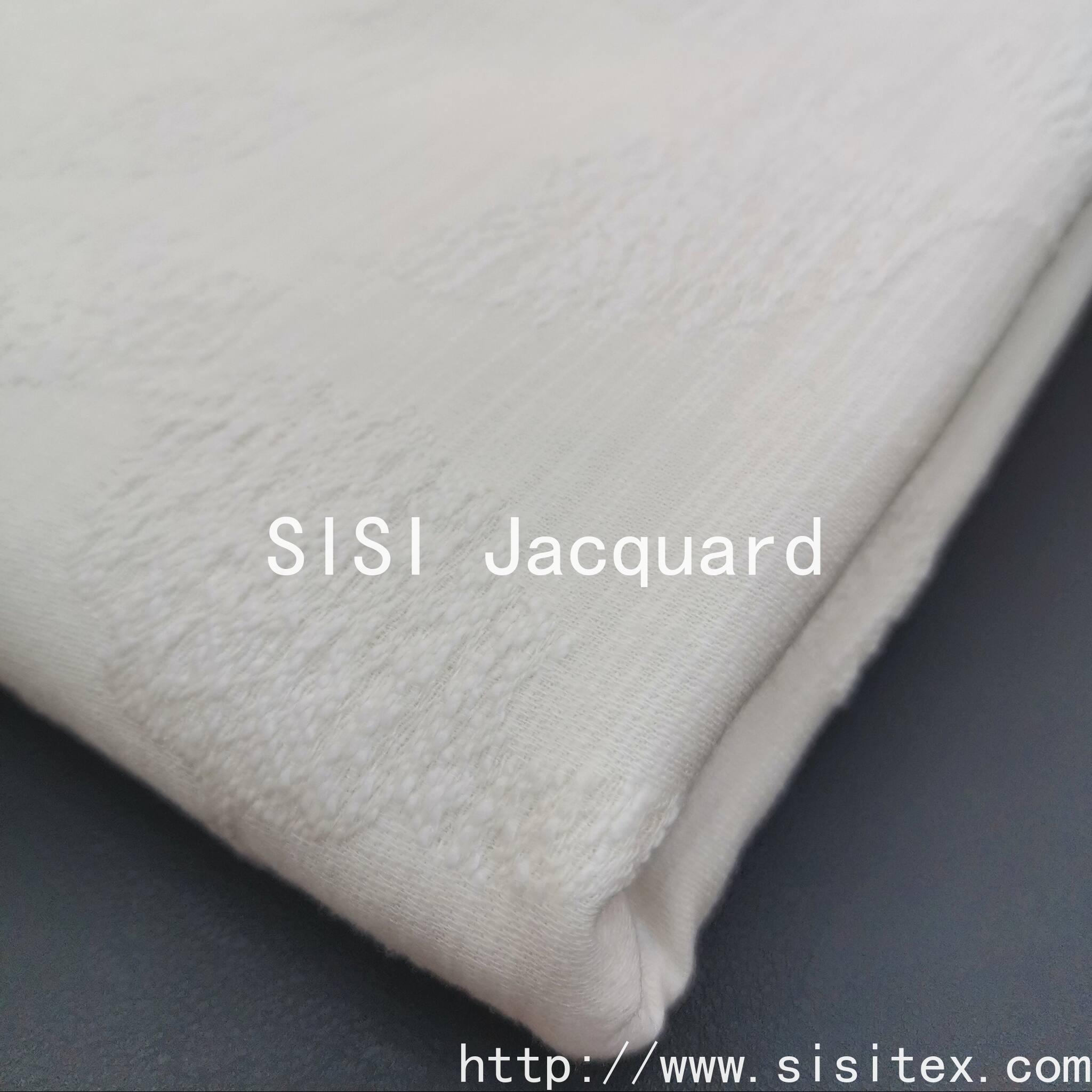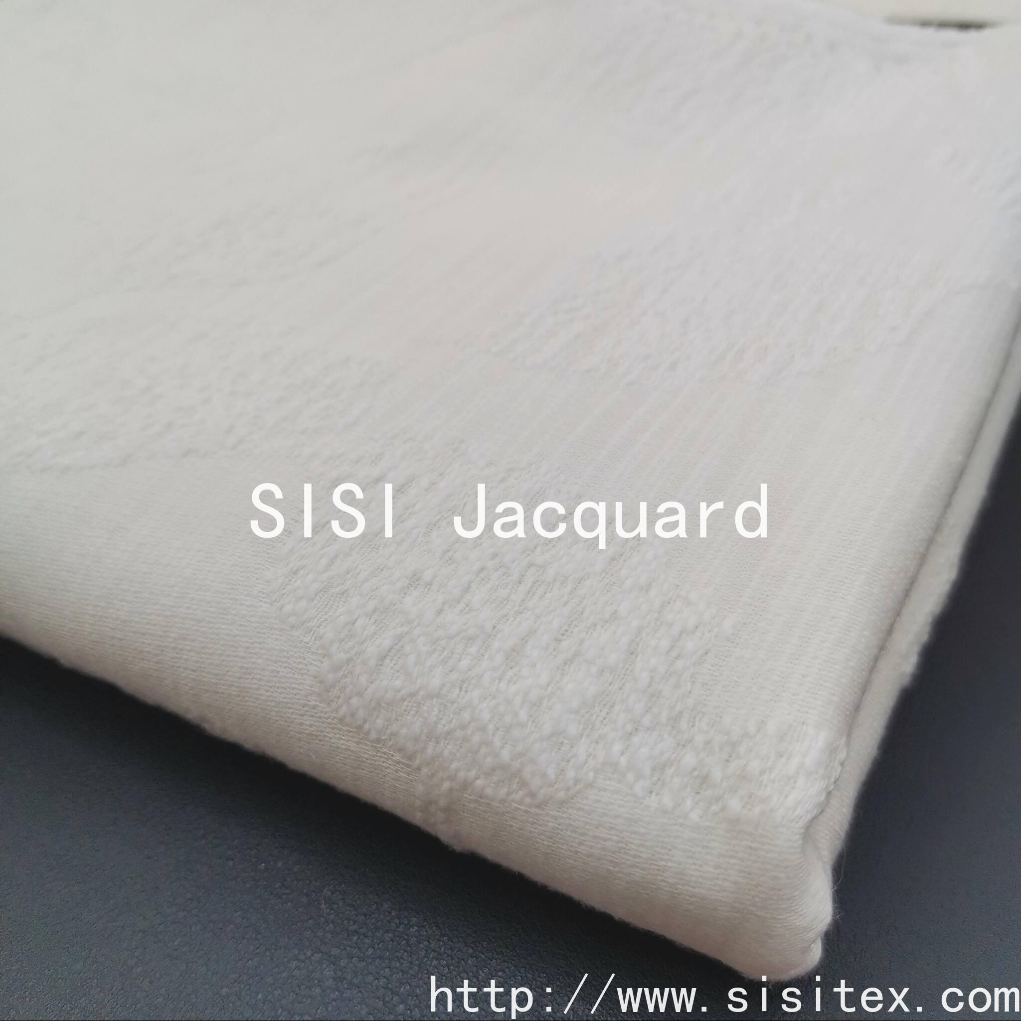 This product is a winter-spring relief jacquard fabric with the item number SS20127. It is made by blending 79% cotton, 15% rayon and 6% linen in a golden ratio. The fabric is thick and flexible, with a gentle and skin-friendly texture. It combines the breathability of cotton, the smooth luster of rayon and the unique texture of linen.