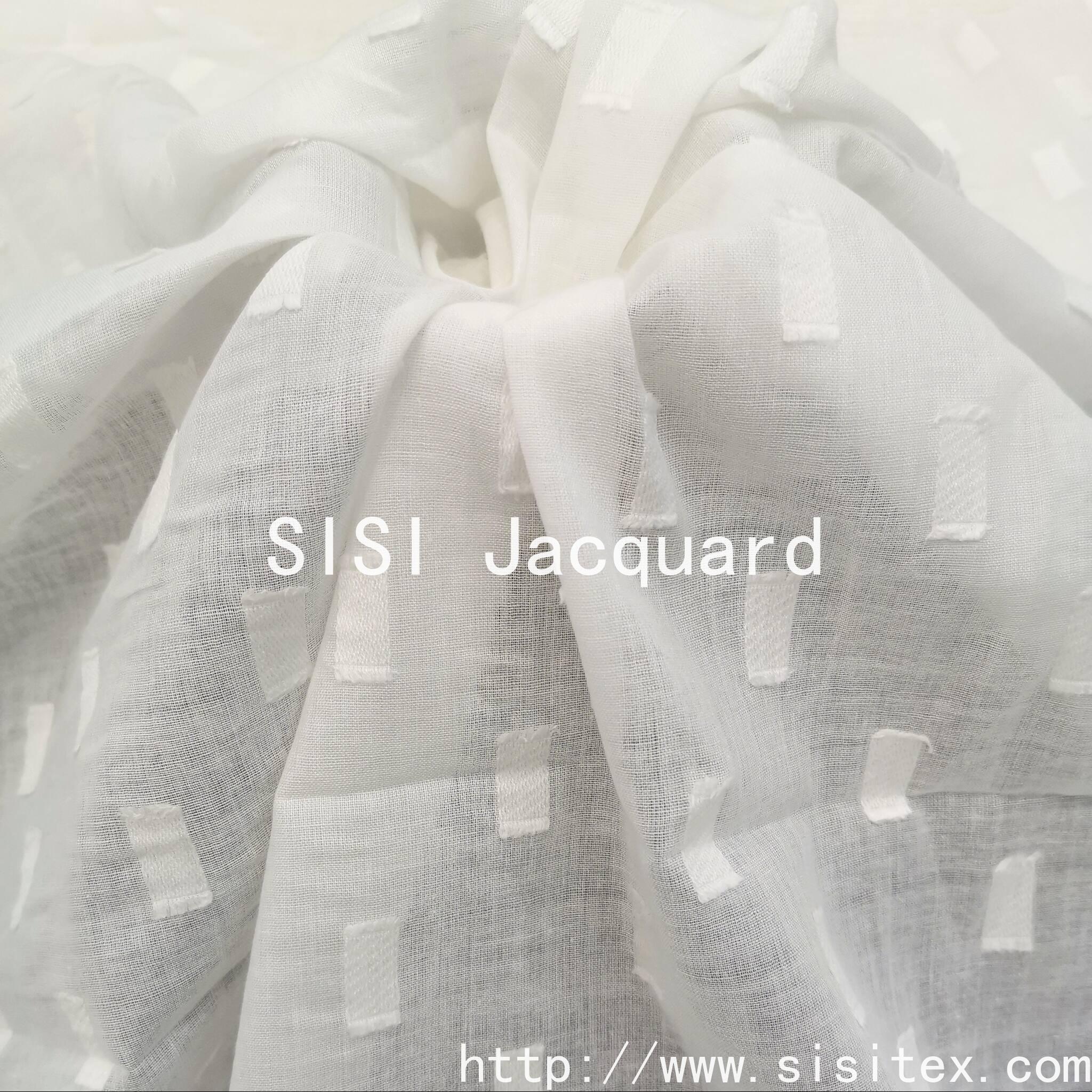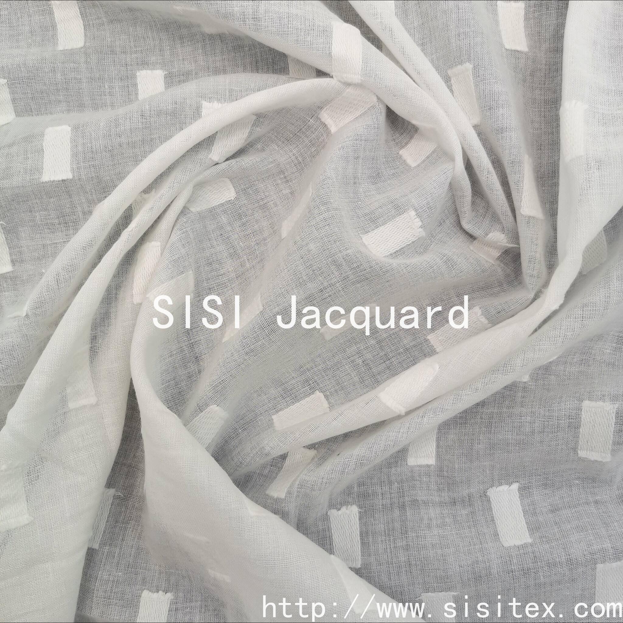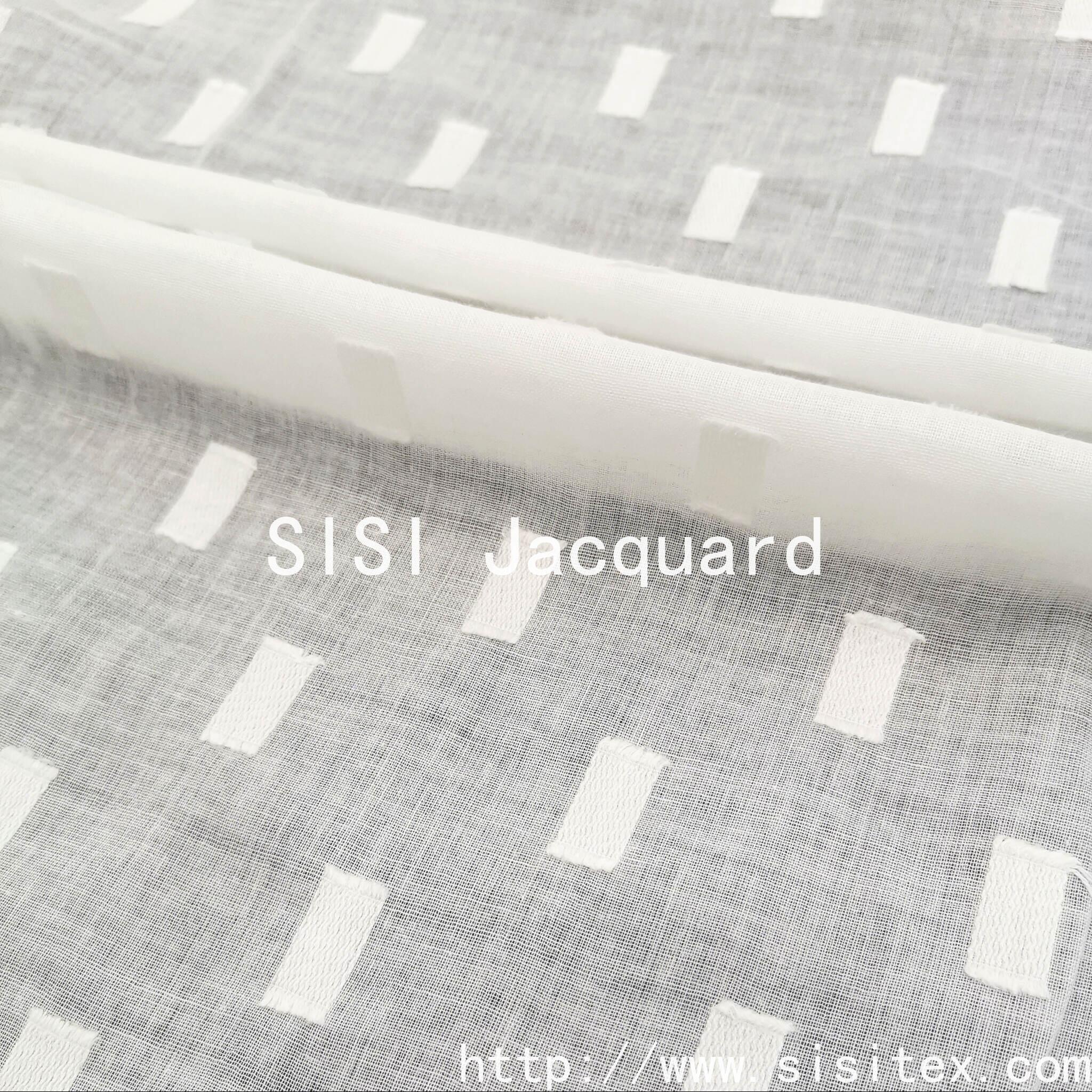 This product is made of 100% pure cotton fabric, SS18352, featuring a geometric jacquard and cut-out design. Through the jacquard and cut-out techniques, it creates exquisite geometric patterns, with a three-dimensional texture and an upscale visual appeal. The geometric patterns are presented through jacquard weaving, showing subtle variations, and embodying details in simplicity, resonating with modern aesthetics. The 100% cotton composition aligns with the sustainable fashion concept, aiming for a balance between natural comfort and environmental friendliness.