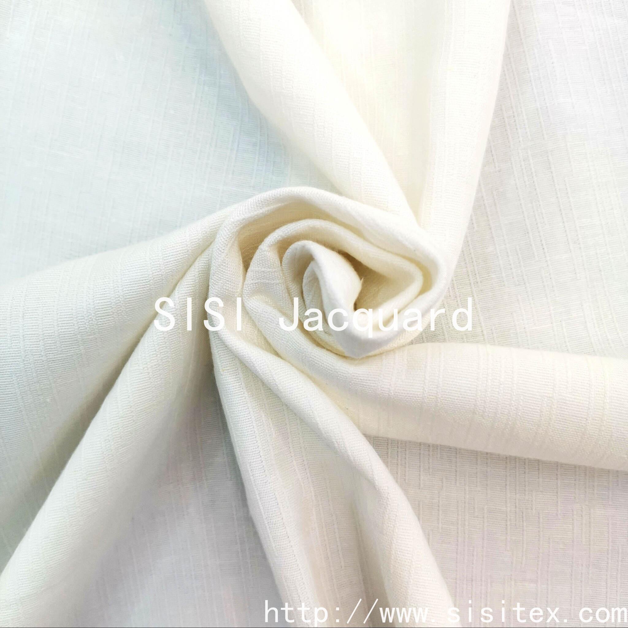 This woven blended double-layer jacquard fabric SS20151 features cotton as the base color, with the natural roughness of linen adding breathability, and the subtle luster of rayon outlining the smooth draping effect. Through the jacquard weaving process, different textures or patterns are created on both sides, achieving the "three-dimensionality" of the fabric design, which caters to consumers' pursuit of rich layering and ingenious design.