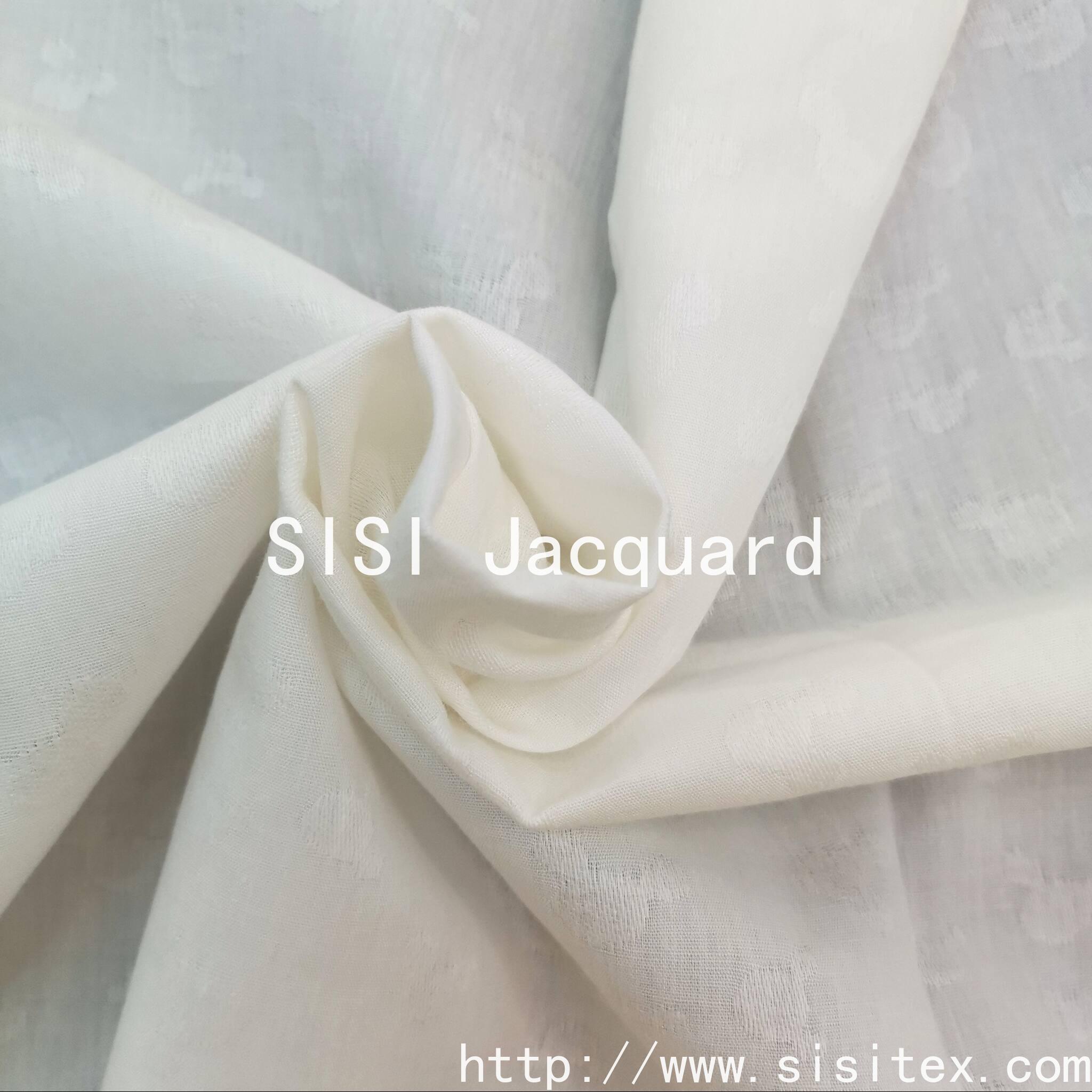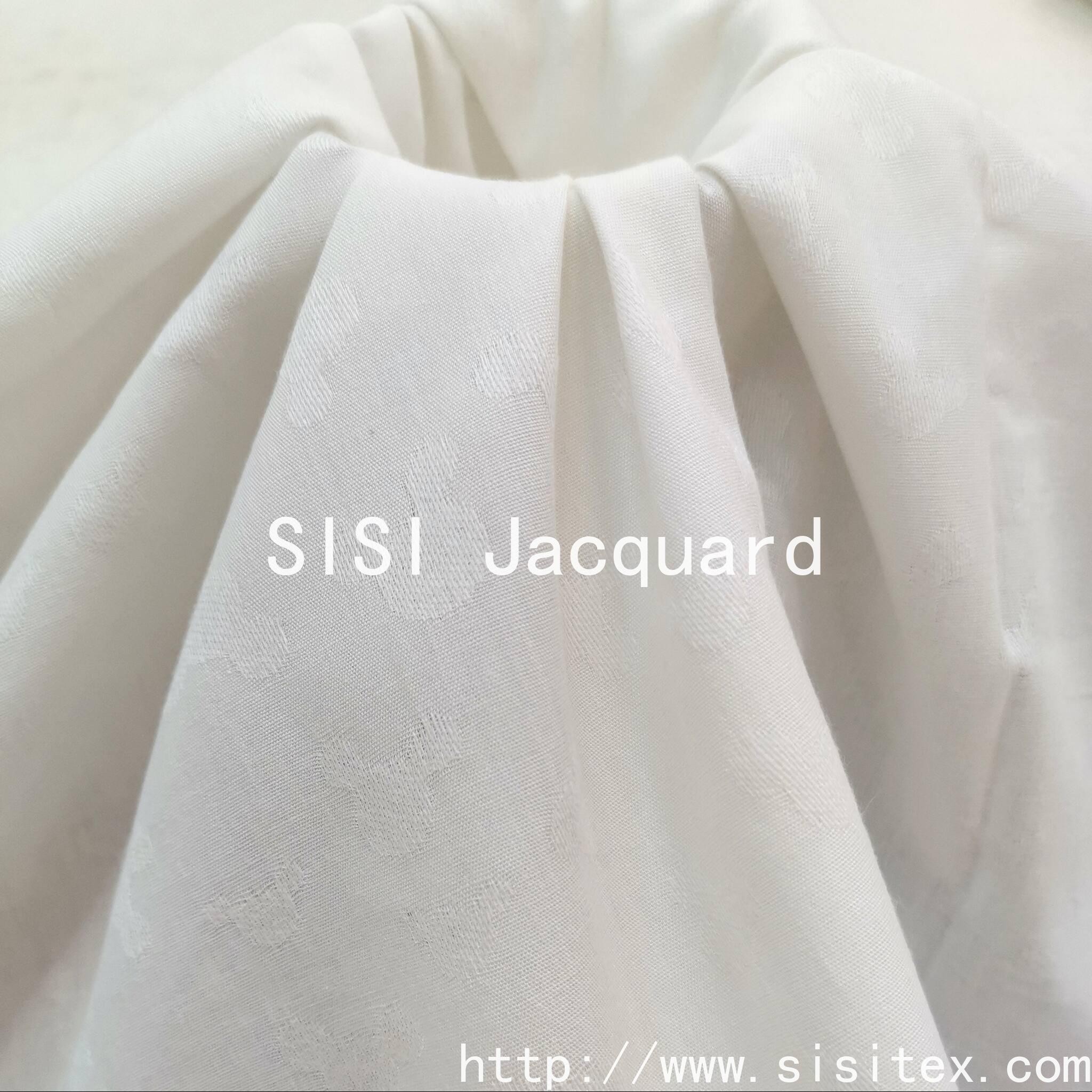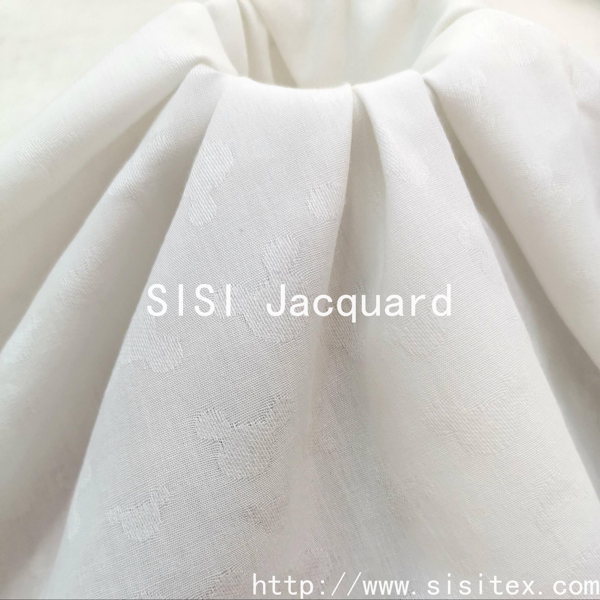 This product is a cotton-rayon jacquard fabric SS20165. It is made by a scientific blend of 80% high-quality cotton and 20% rayon, creating a high-quality fabric that combines the comfort of pure cotton with the drape of rayon. The exquisite jacquard pattern is faintly visible in the light, and without excessive decoration, it can showcase extraordinary taste in the subtle details. It balances the skin-friendly nature of natural fibers with the functionality of artificial fibers, replacing complex decorations with delicate textures, which meets the modern consumers' pursuit of high-quality basic styles and understated sophistication. It is an ideal choice for creating a "capsule wardrobe".