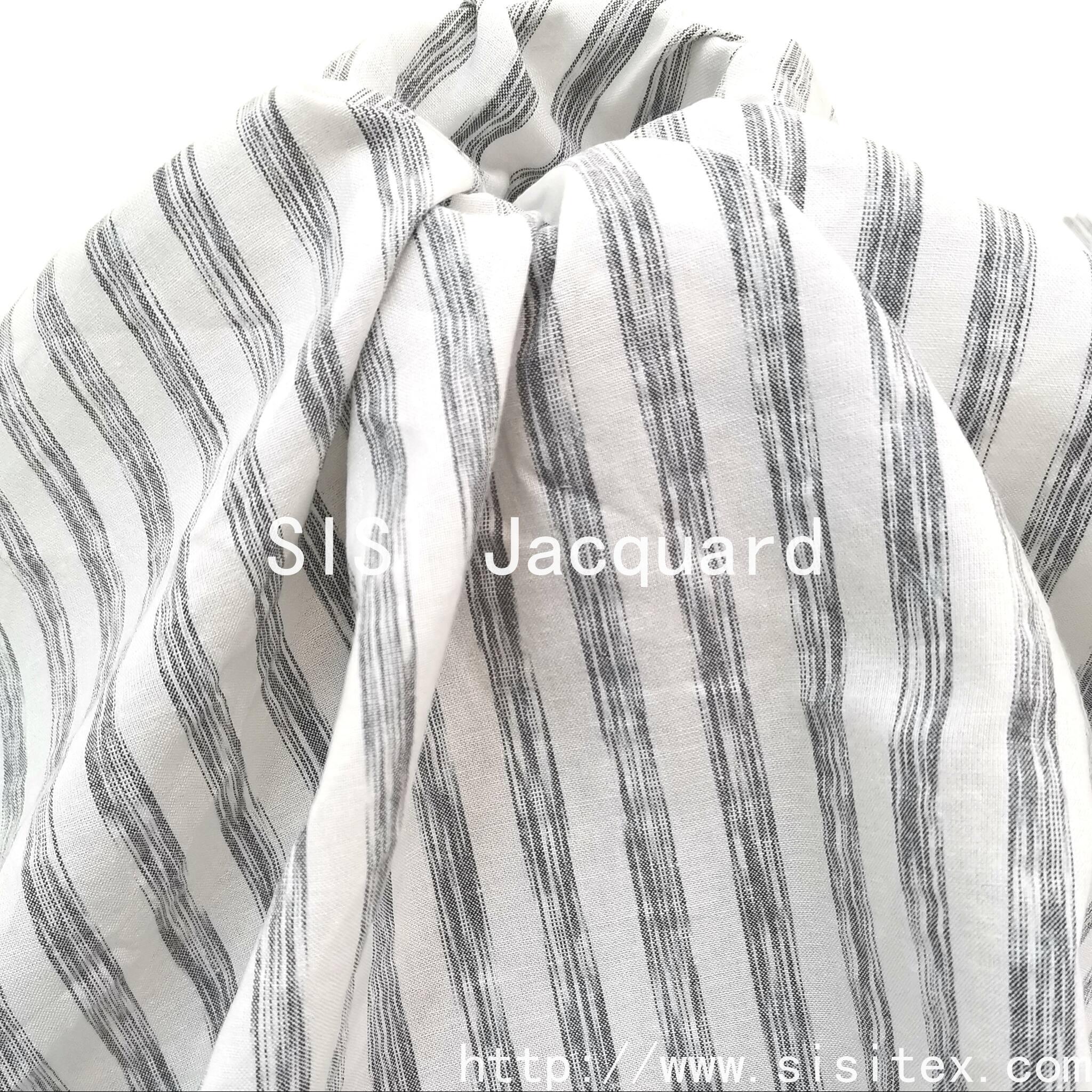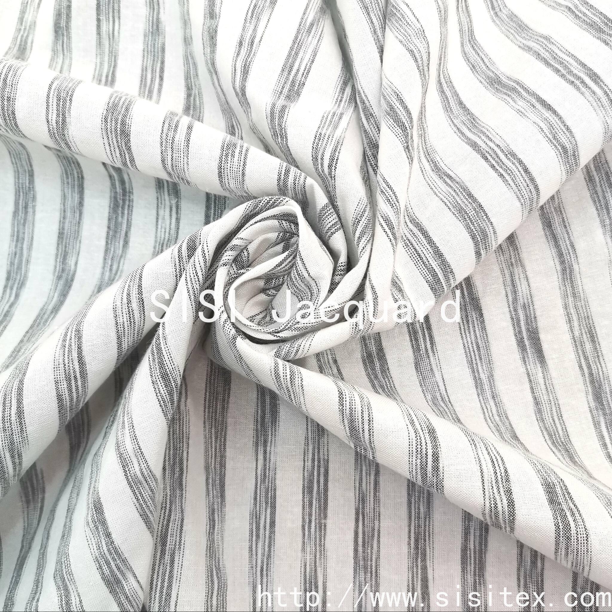 This product is a woven blended colored striped fabric SS20166. It is made of 55% natural cotton fibers, 20% synthetic cotton, and 25% polyester. It is naturally eco-friendly and non-irritating, providing a comfortable and breathable feel without causing excessive sweating. It is as soft as clouds when touching the skin, and maintains a comfortable texture even after long-term use. The color weaving process precisely controls the color and texture, with the striped elements being three-dimensional and full, providing rich visual layers. This makes the fabric have both a "retro classic feel" and a "soft and delicate detail feel", injecting a unique style into home or clothing design.