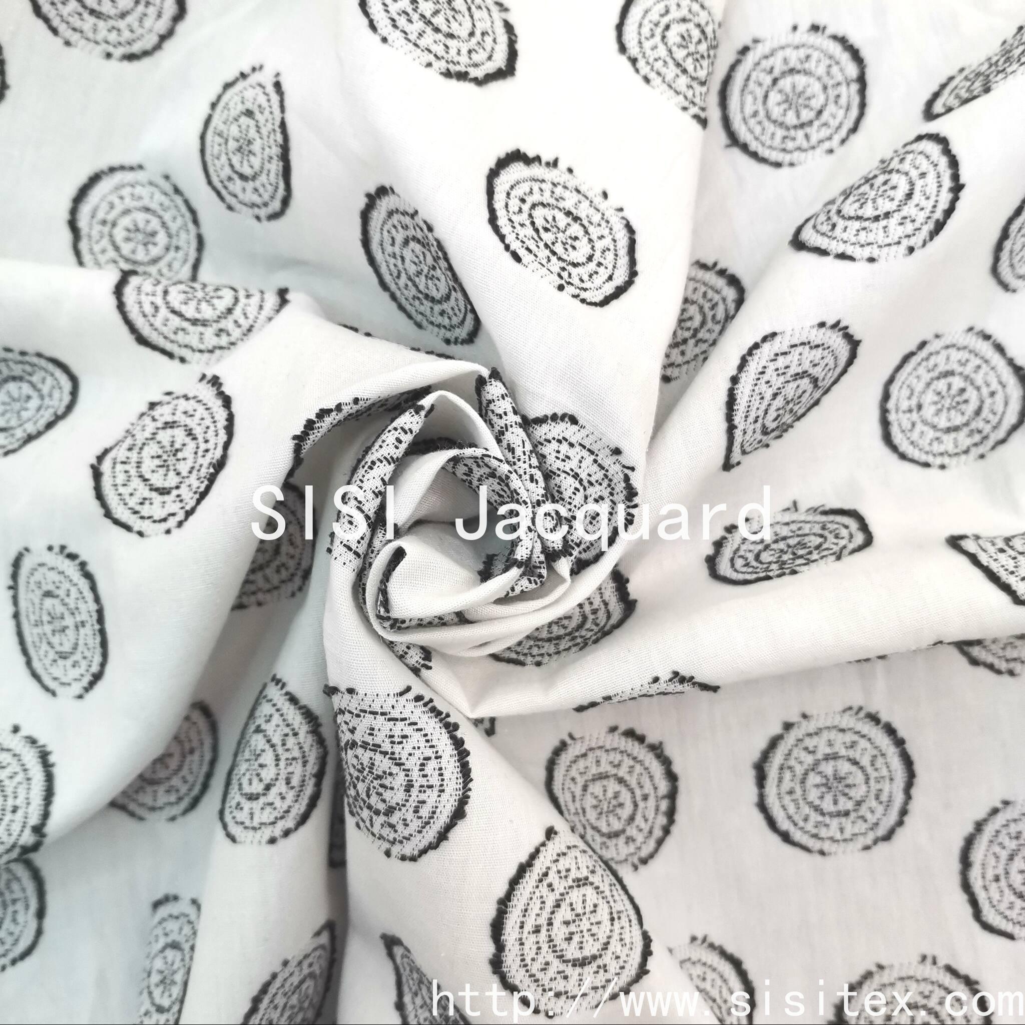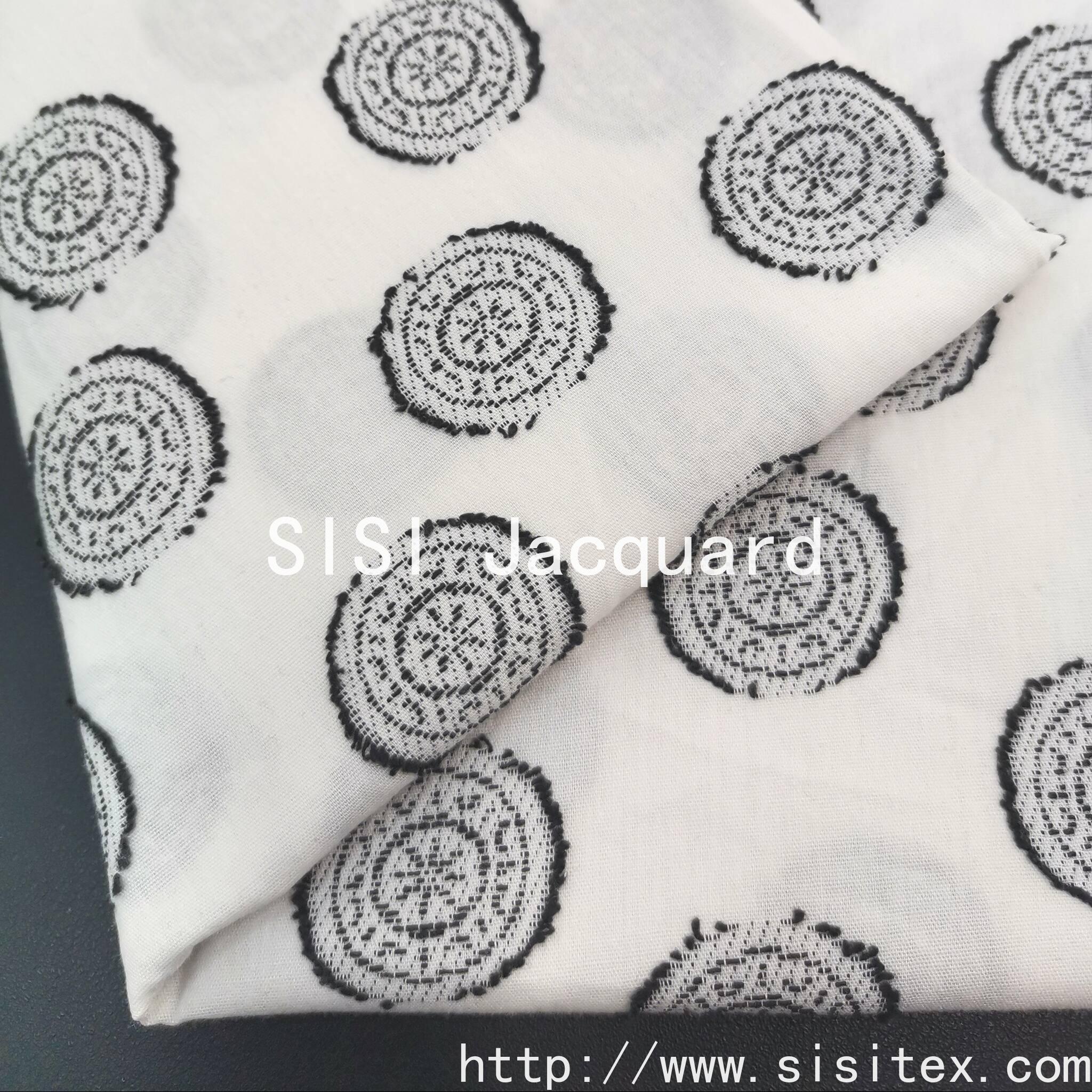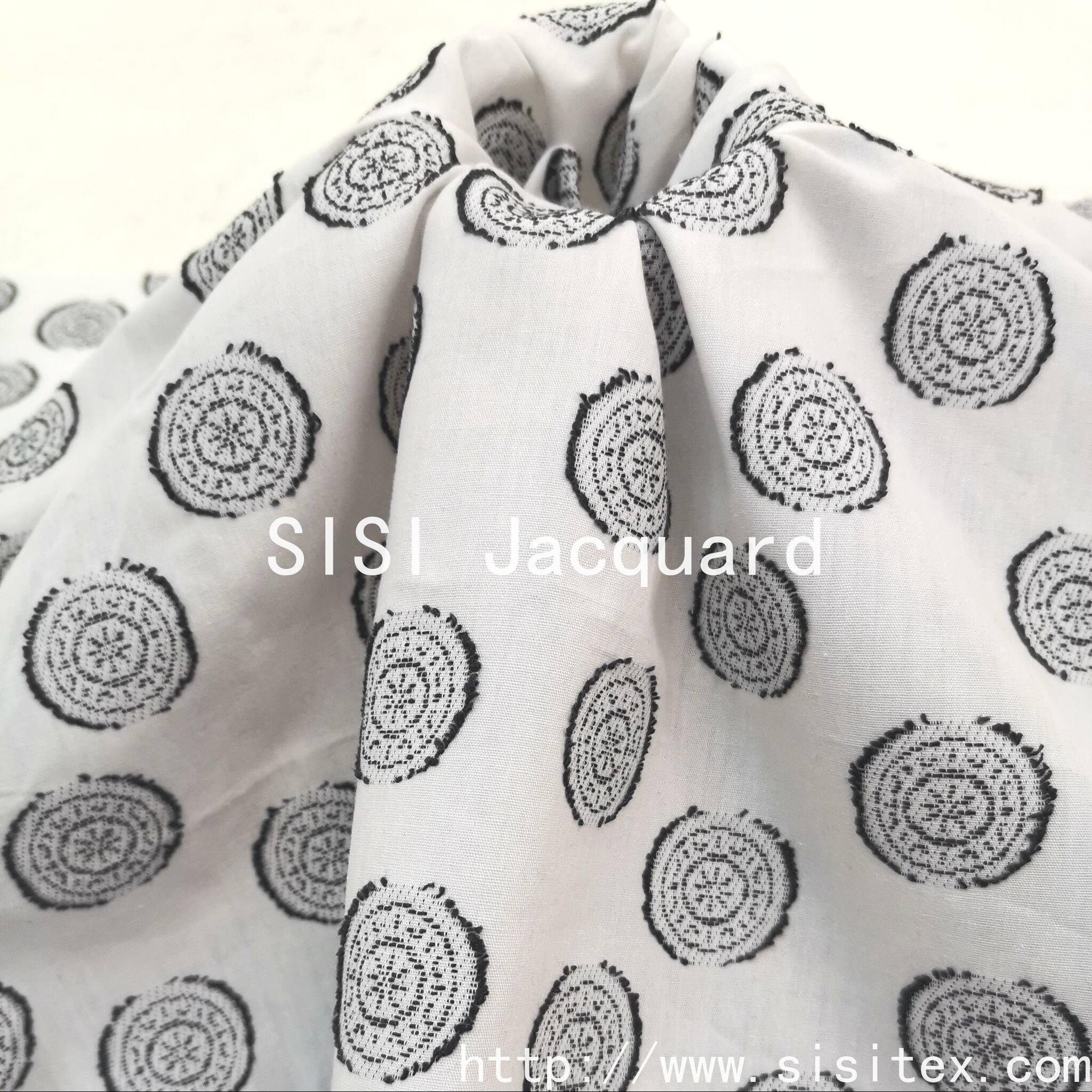 This cotton-polyester circular jacquard printed fabric features a detailed jacquard pattern that creates a three-dimensional circular design with clear contours and a unique texture. It is woven using the jacquard technique, with soft and rich colors, multiple layers, and a combination of the comfort of cotton and the toughness of polyester, resulting in a high-quality fabric that combines beauty and practicality. Whether used to create a unique bohemian-style dress or as a highlight element in home decor, it can infuse modern design sense and handcrafted warmth into the work with its unique texture and pattern. Shaoxing Si Si Textile Co., Ltd. uses professional weaving experience to create the details and quality of every inch of the fabric, making it an ideal choice for designers and craft enthusiasts.