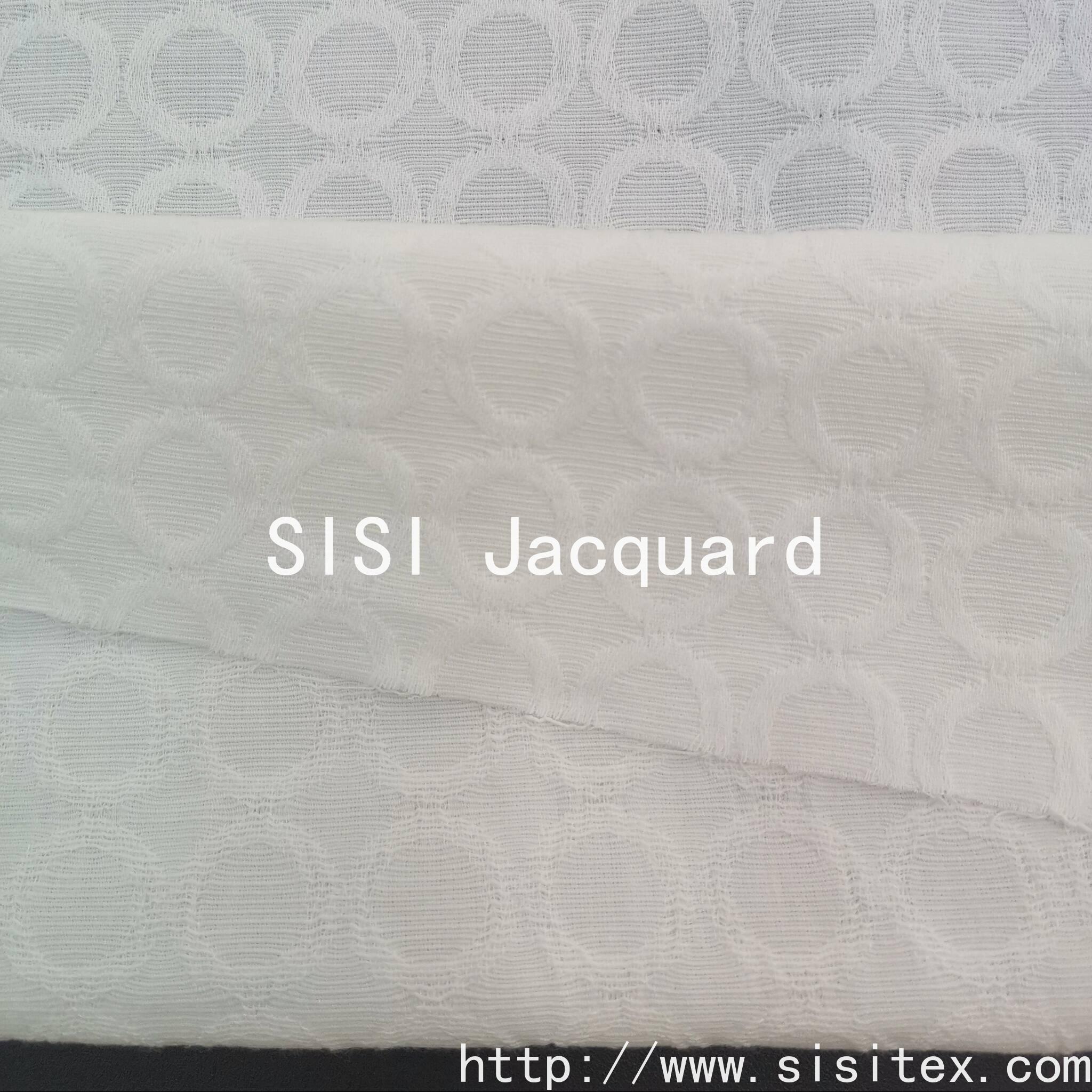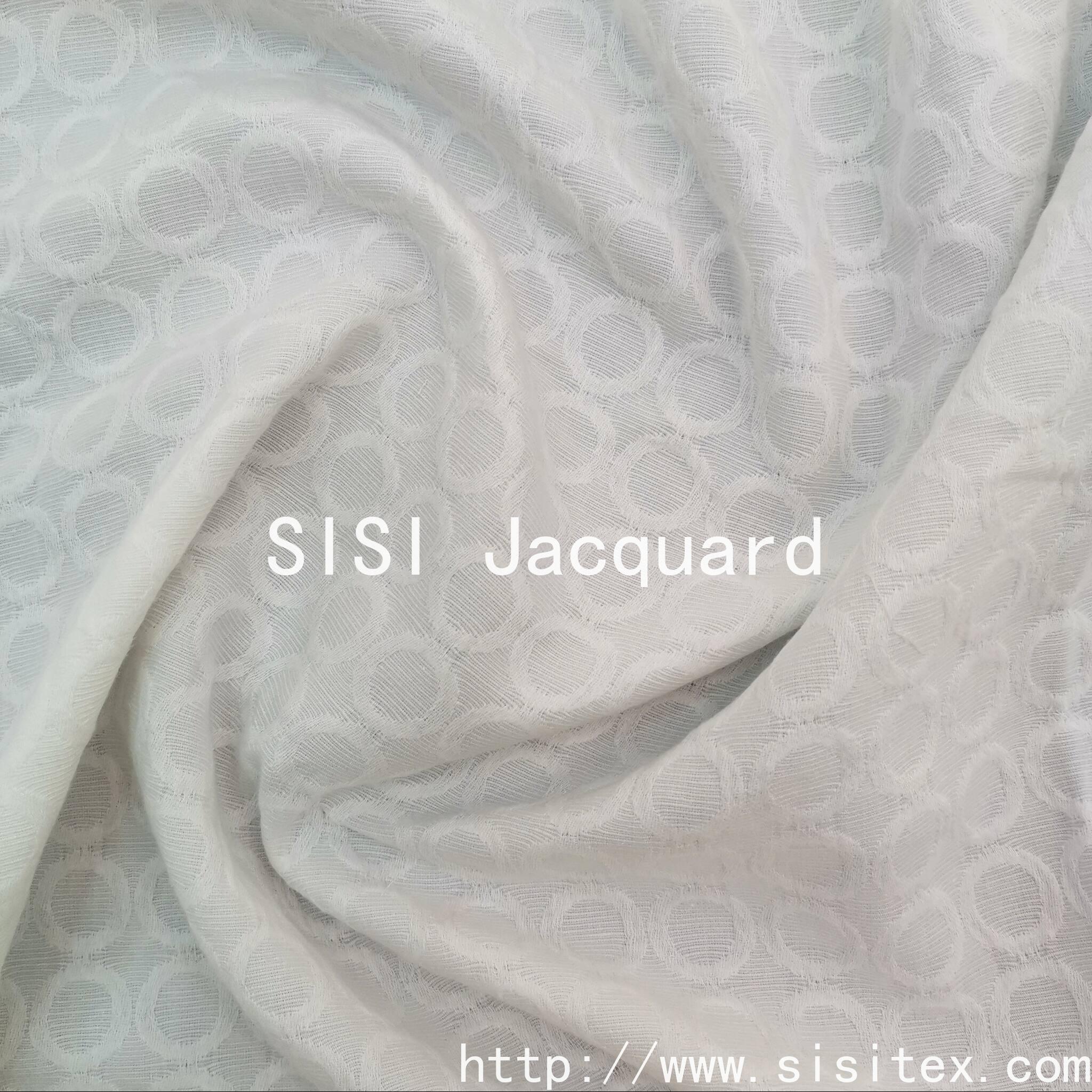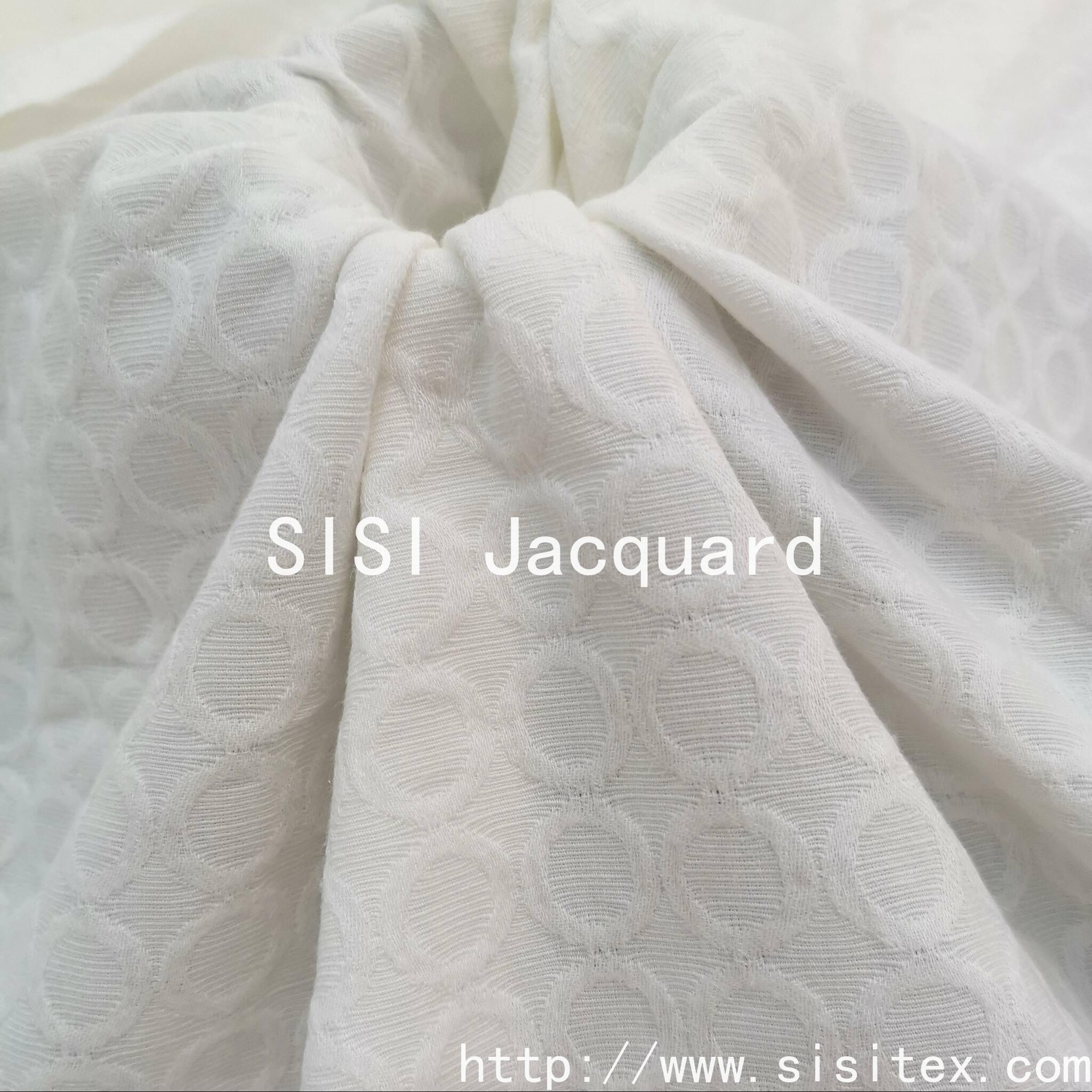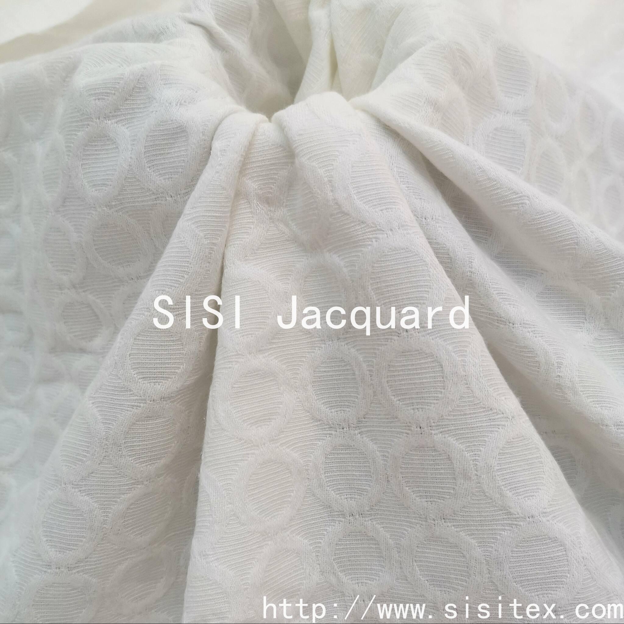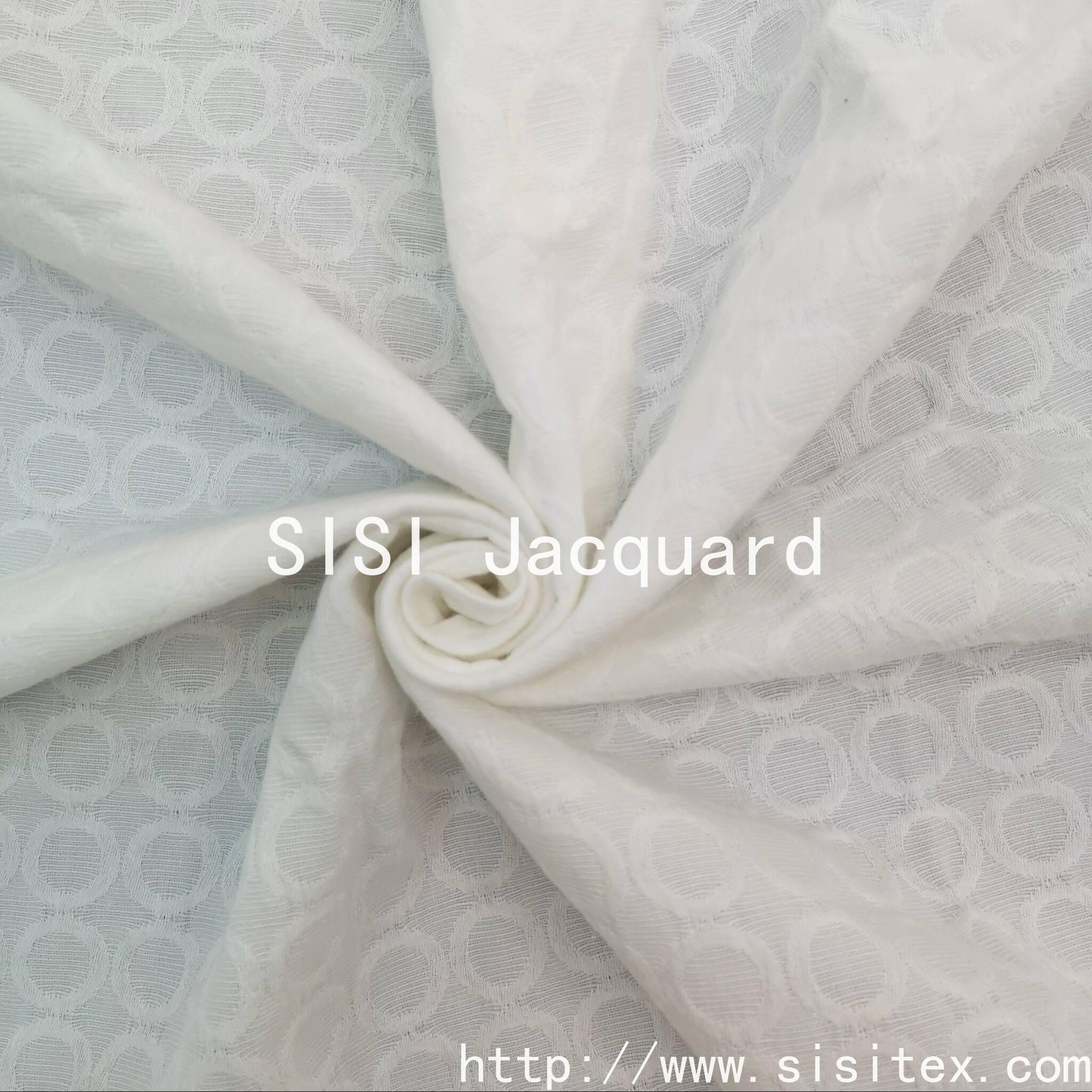 This all-cotton circular jacquard fabric is made from 100% high-quality cotton. It is woven with exquisite jacquard techniques to create a three-dimensional circular pattern. It has a soft and delicate touch, is breathable and skin-friendly, providing a comfortable experience throughout the day.