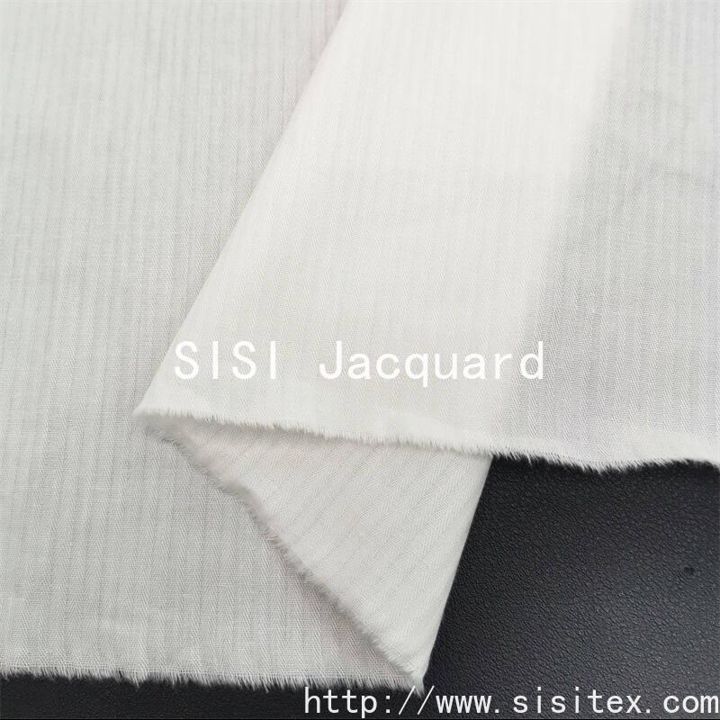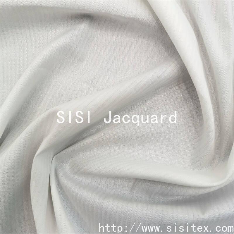 This all-cotton fishbone jacquard fabric is woven from high-quality long-staple cotton, with clear texture and rich texture. The classic fish bone pattern is presented through exquisite jacquard craftsmanship, highlighting the ingenious design in a low-key manner. The fabric has a soft and breathable touch, making it suitable for creating clothing or home items that combine comfort and fashion. Whether it's creating office commuting wear or adding an artistic atmosphere to your home, it can be a quality choice.