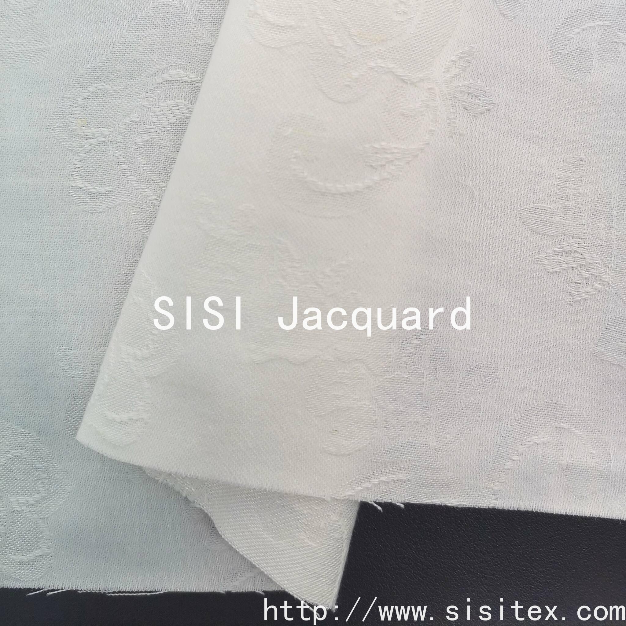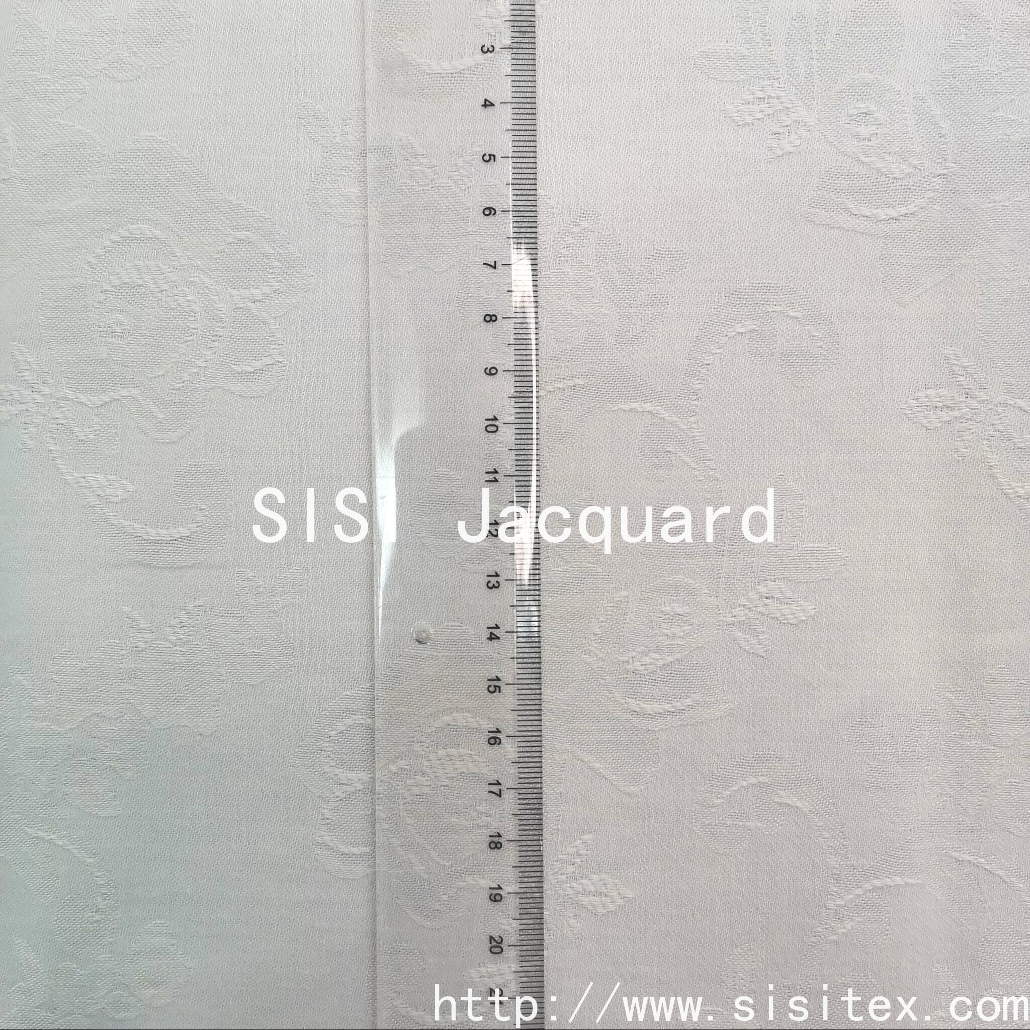 This "Sisu" cotton-spun-mesh retro and artistic floral jacquard fabric is made by blending 32% cotton, 48% viscose and 20% hemp in a perfect 3:2:1 ratio. It ingeniously combines the advantages of various natural fibers. Through meticulous jacquard weaving, it creates classic and detailed floral patterns, with elegant and retro designs, full of artistic and literary charm. The weight is 202g/m², with a thick and sturdy feel, good drape, and excellent breathability. The exquisite patterns on the white base fabric are clear and three-dimensional, elegant and refined. Whether used to make retro-style dresses, shirts, or for soft furnishings such as curtains and cushions, it can inject unique natural and literary qualities and high-quality feel into the works. It is the preferred fabric for artisans and brands that pursue stylized design, love retro and natural elements.